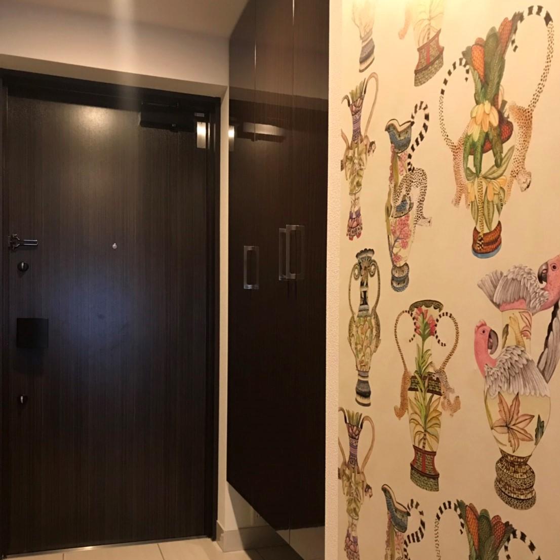 新築のマンションの為、図面だけでお打ち合せとなりました。 しかし、空間デザインとなると、床の色や、家具の大きさや色、壁紙の色、柄、照明の色、形などが必要になる為、完成するまでの間、綿密に仕様決定を進めていきました。お打合せの大半はショールームでしたので、イメージにより近づけていけたと思います。 施工中は、お客様のご配慮で駐車場をご用意頂き、順調に工事が進みました。 完成後、素敵にスタイルアップした廊下やお部屋にとても喜んで頂けて、本当に嬉しく思いました。