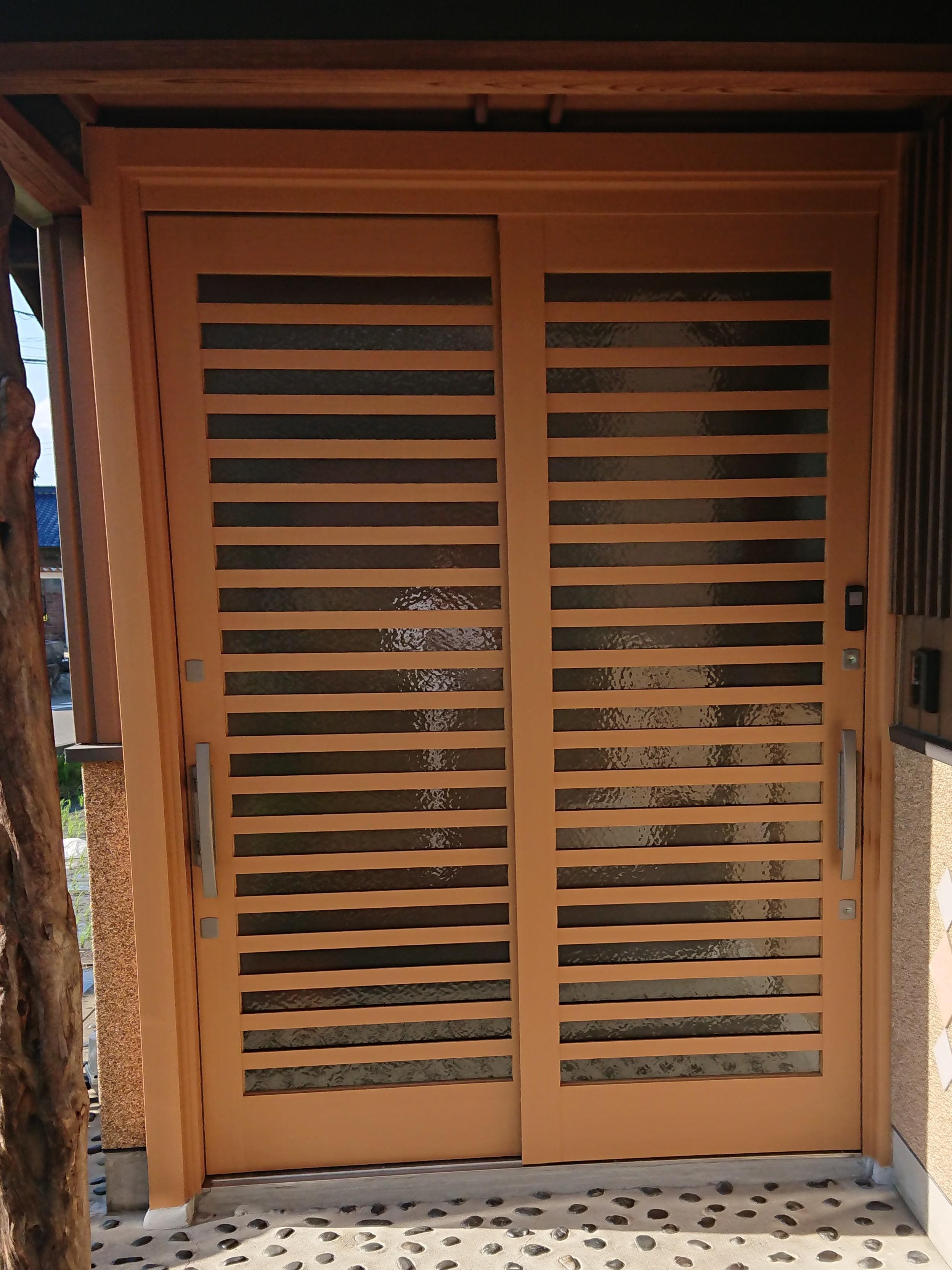 ・玄関が見違える様に変わりスキマ風は無くなり、高級感と落ち着きが出た事で、毎日の開閉が楽しいです。特に「簡易タッチキーシステム」は一度使ったらやめられません。雨の日や両手に物を持った状態での動作が格段にラクになり、毎日の事だけに、こんな便利なものならもっと早く交換すべきでした。勝手口もドアを閉めたまま自然の風を採り入れる事が出来、ニオイのこもりがちだったキッチンの空気が清々しくなりました。又、すべて閉めた時は樹脂製サッシとペアガラスの効果で冬の寒さが軽減、カギのシリンダーも2ヶ所になり防犯性能アップで安心です。外の蛍光灯をLED灯に替えて、とても明るくなりました。後日トイレのリフォームもお願いしたところ、空間全体が明るく、子供も安心してトイレに行けるようになり、とても喜んでおります。