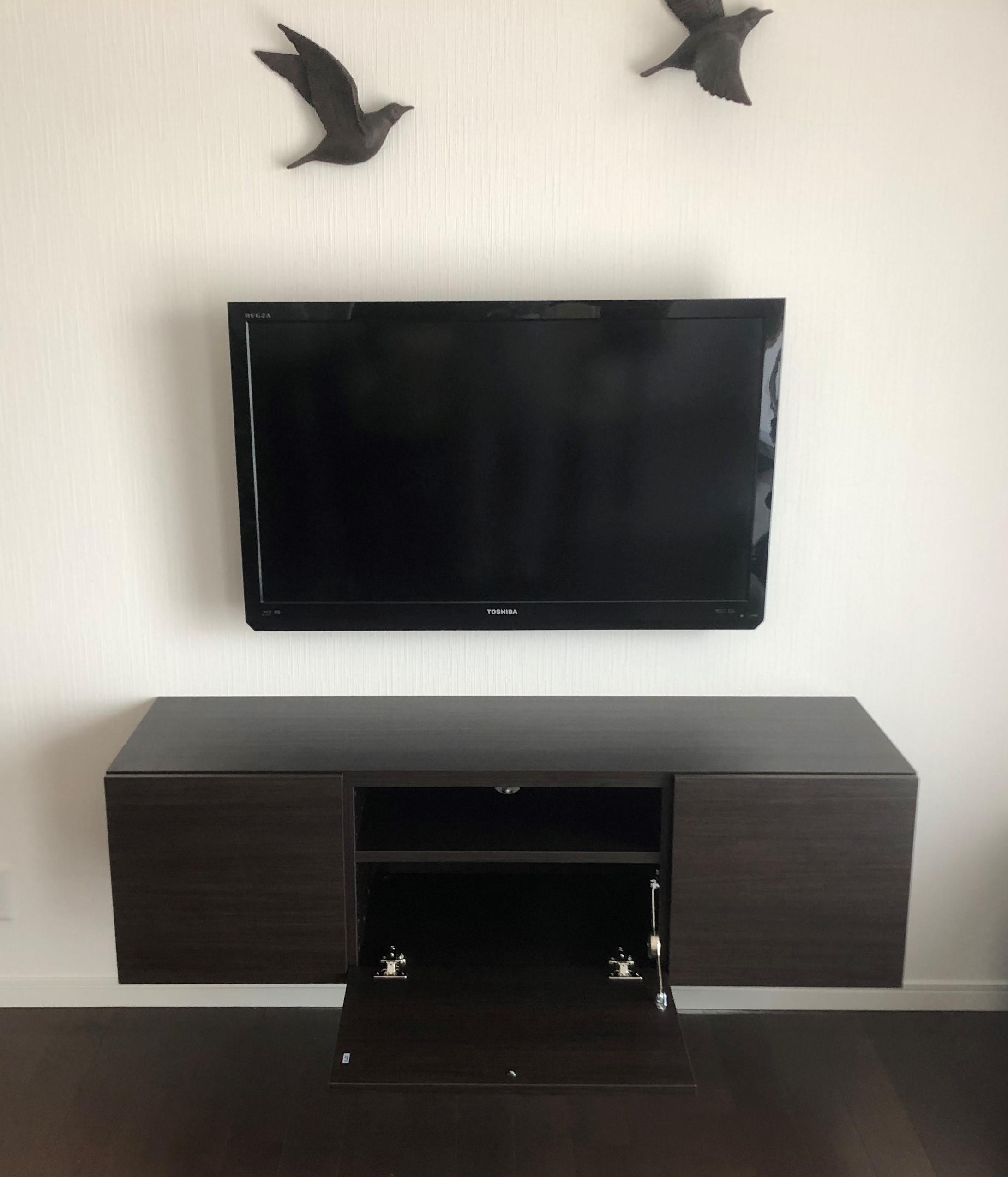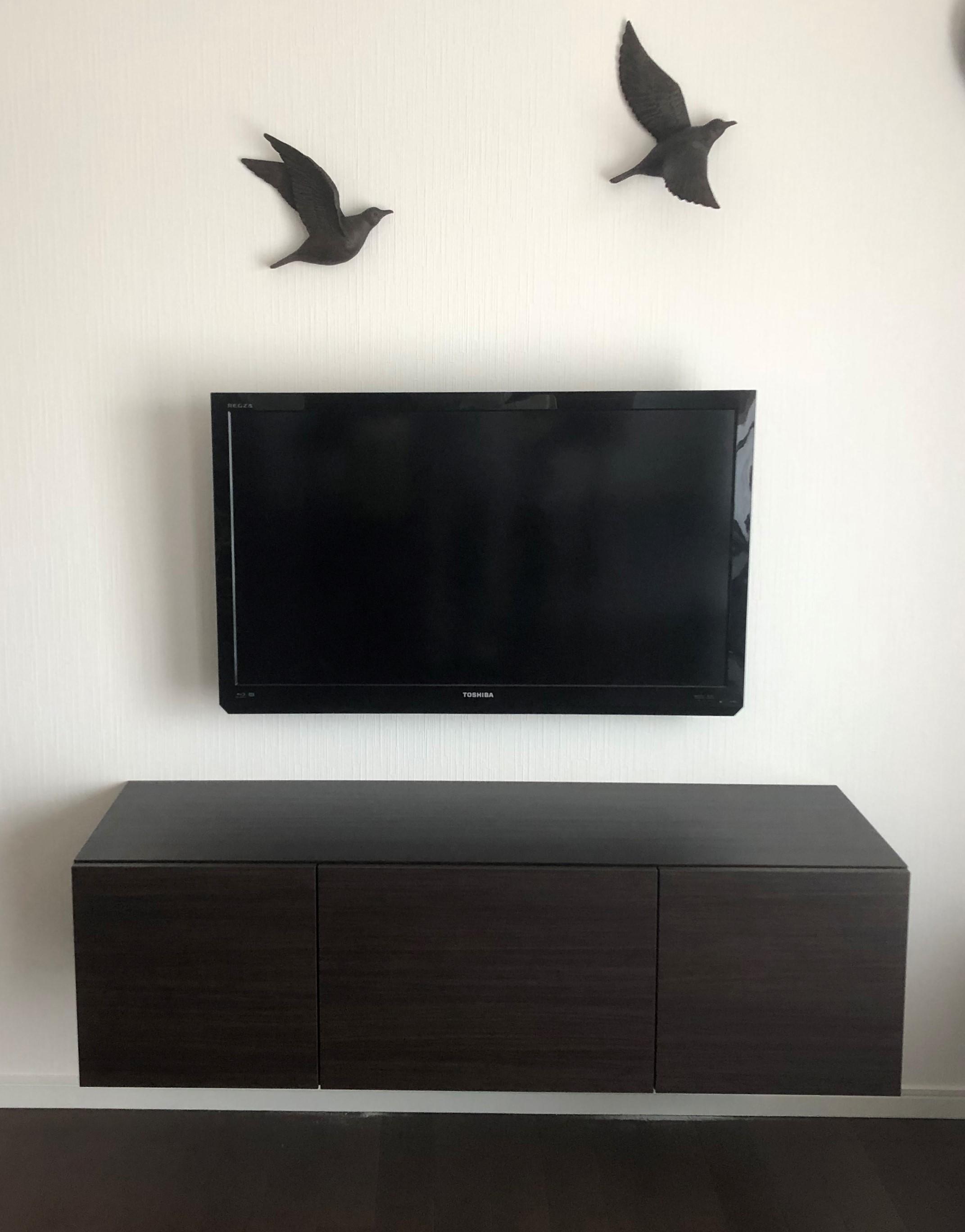 TVを壁掛けにし、AV機器の収納等のキャビネット新設したいとのご相談を頂きました。ショールームでLIXILのヴィータスを気に入って頂いておりましたので、キャビネットの組み合わせや納まり、TVの壁掛け位置等、細かくお打合せを重ねていきました。また配線が見えないように、キャビナット内にコンセントを納めるようなレイアウトに致しました。お客様にご満足頂けてとても嬉しく思います。