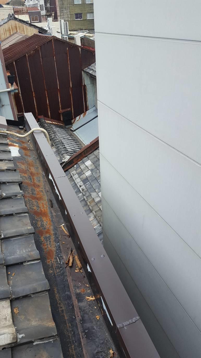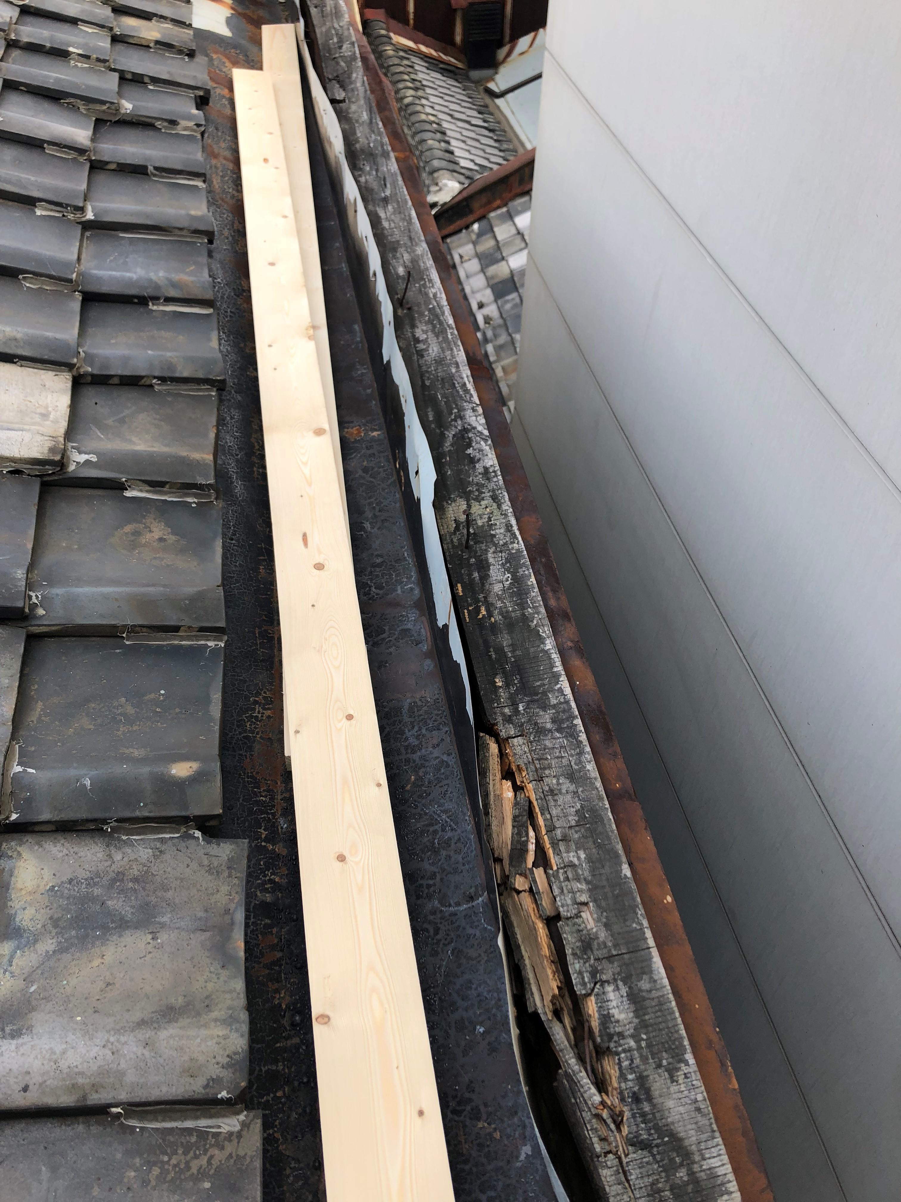 台風で屋根の笠木が破損した為、修繕のご相談を頂きました。防水処置の為、笠木の下地を交換し、その上から板金でカバーしました。