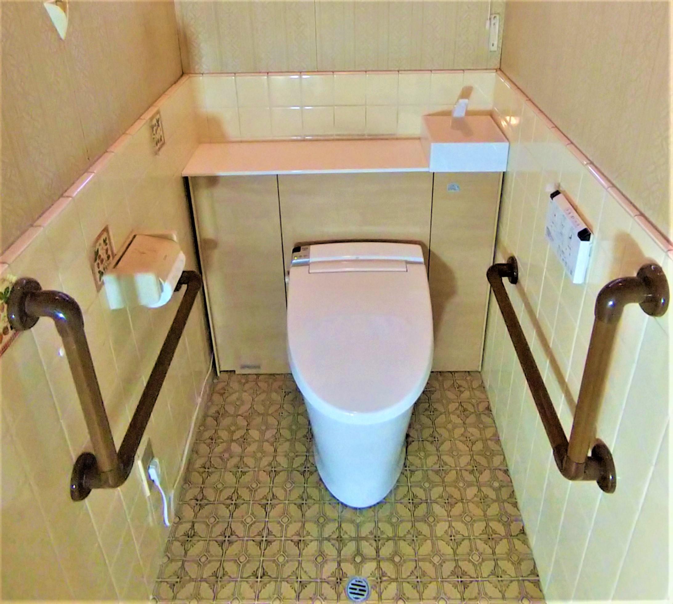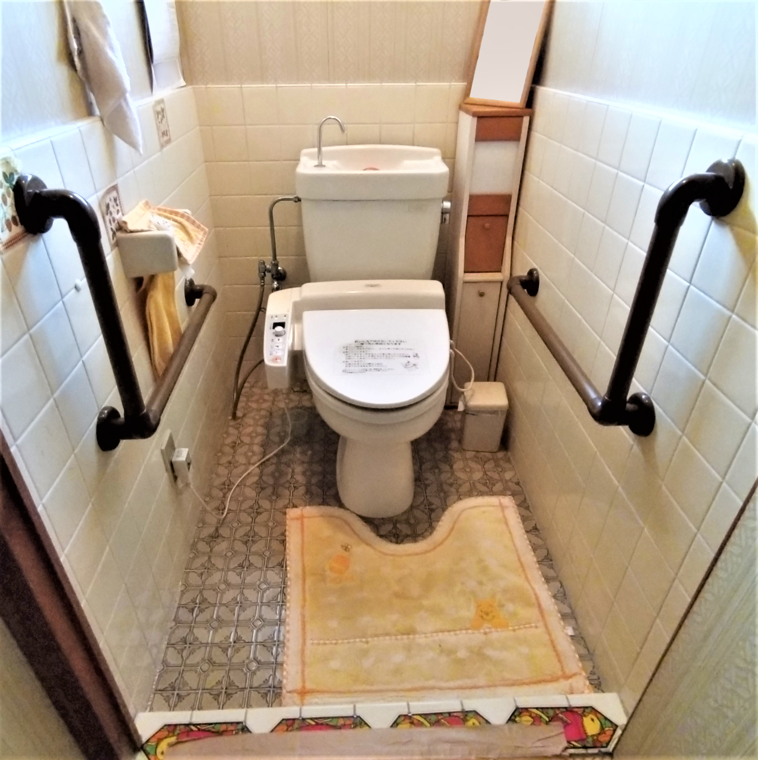 トイレ本体の老朽化により交換したいとのご相談を頂きました。手洗い付きで、タンク部分がキャビネットに内蔵されているリフォレを希望されました。リフォレでしたら、給水管やお掃除道具も隠れ、見た目もすっきりスタイリッシュな空間に。出入口のタイル部分が破損していた為、下枠の交換もしました。