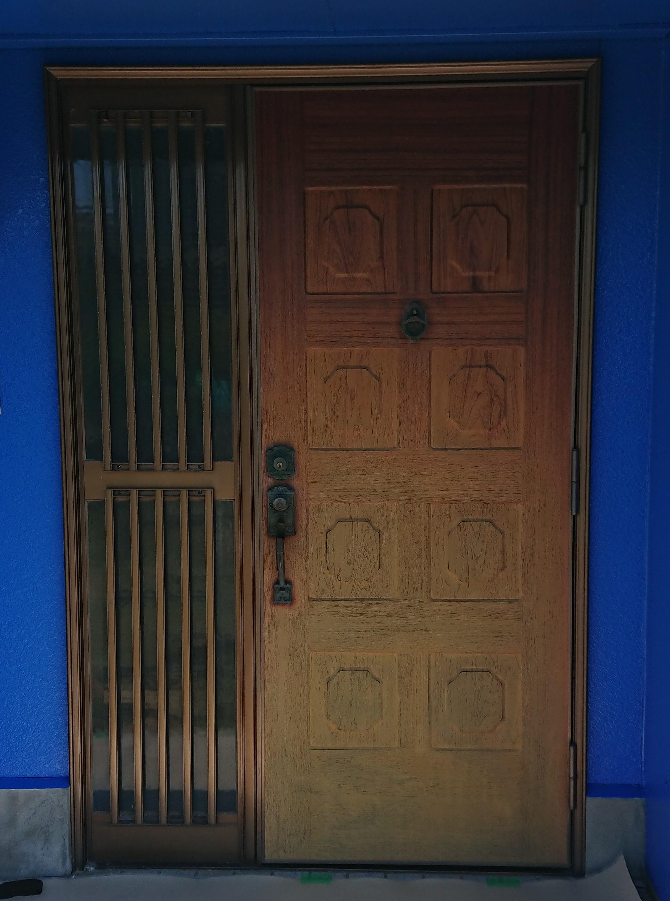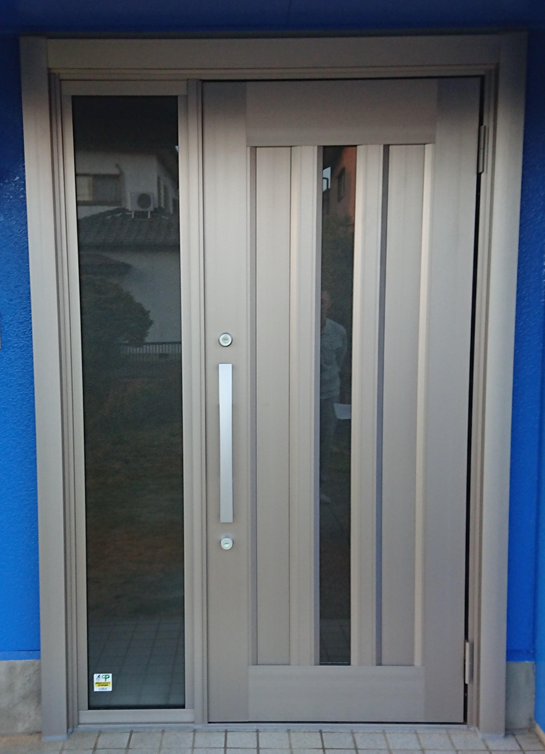 玄関が老朽化し鍵がかかりにくい為、交換のご相談をいただきました。アルミ色で、扉の横にガラス袖がある片袖タイプがご希望でしたので、こちらのリシェントに決定いたしました。施工は1日です。