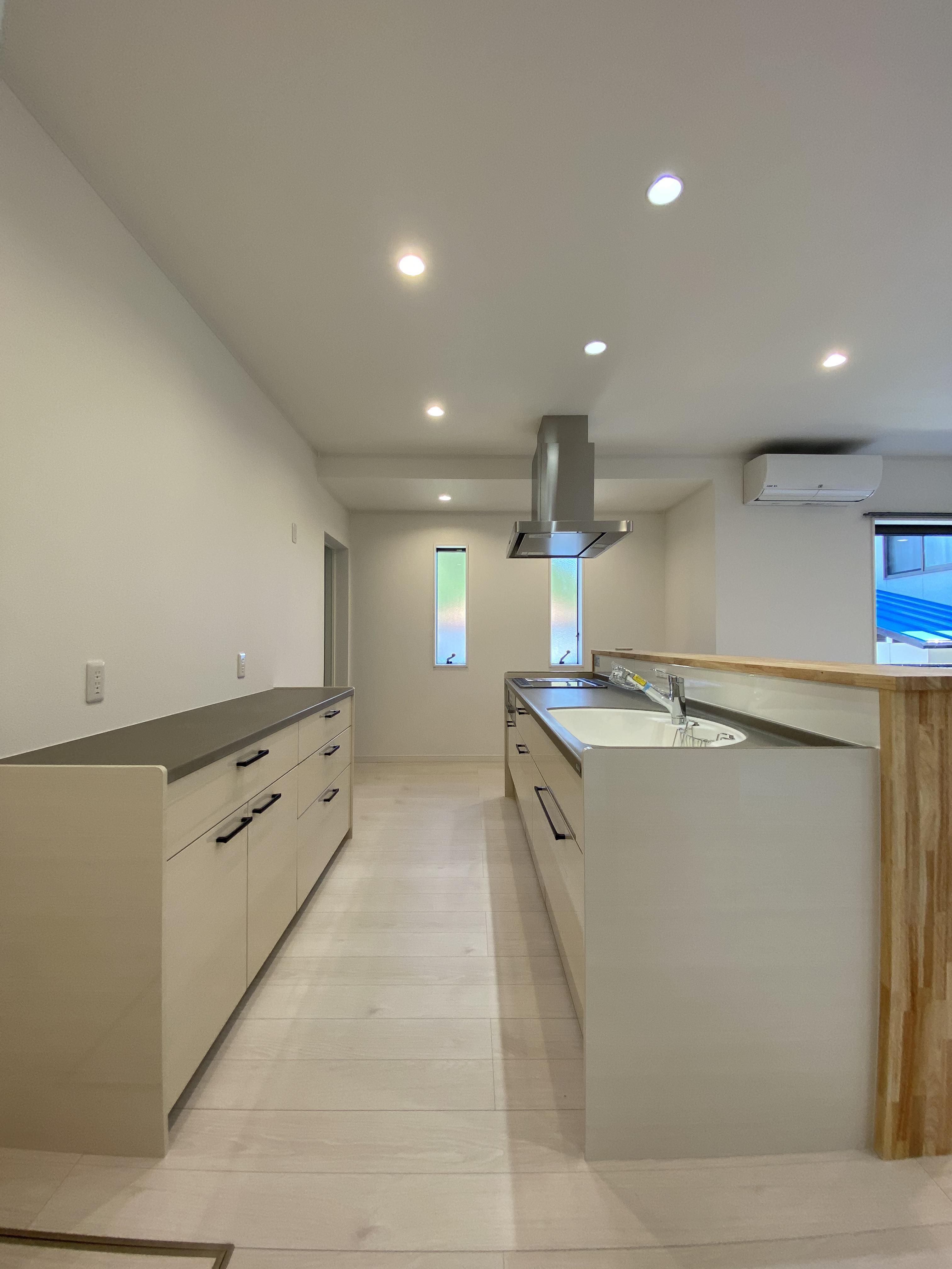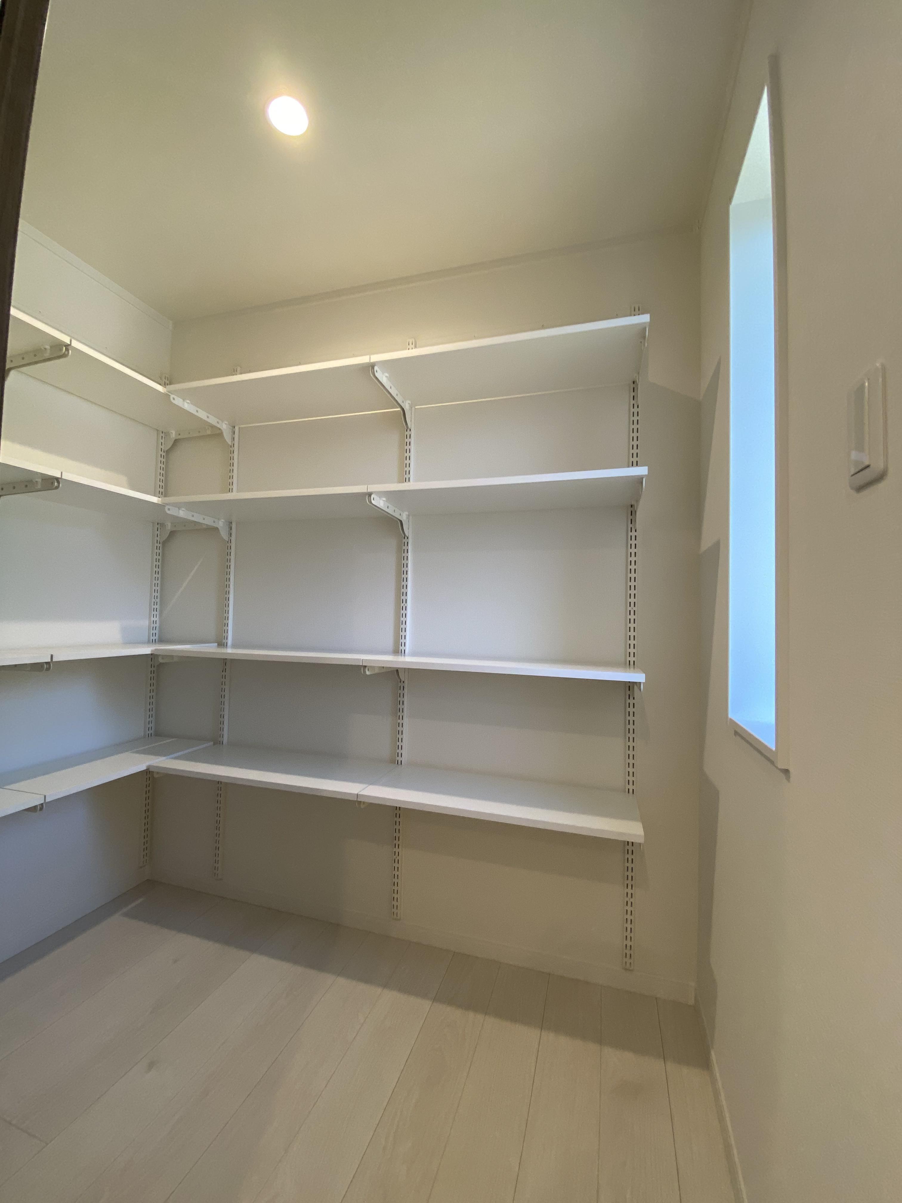 可動棚を設置した為、用途に合わせて高さを調節できます。お米や大きめの調理器具等もらくらく収納。キッチン周りが常にスッキリして快適です。
