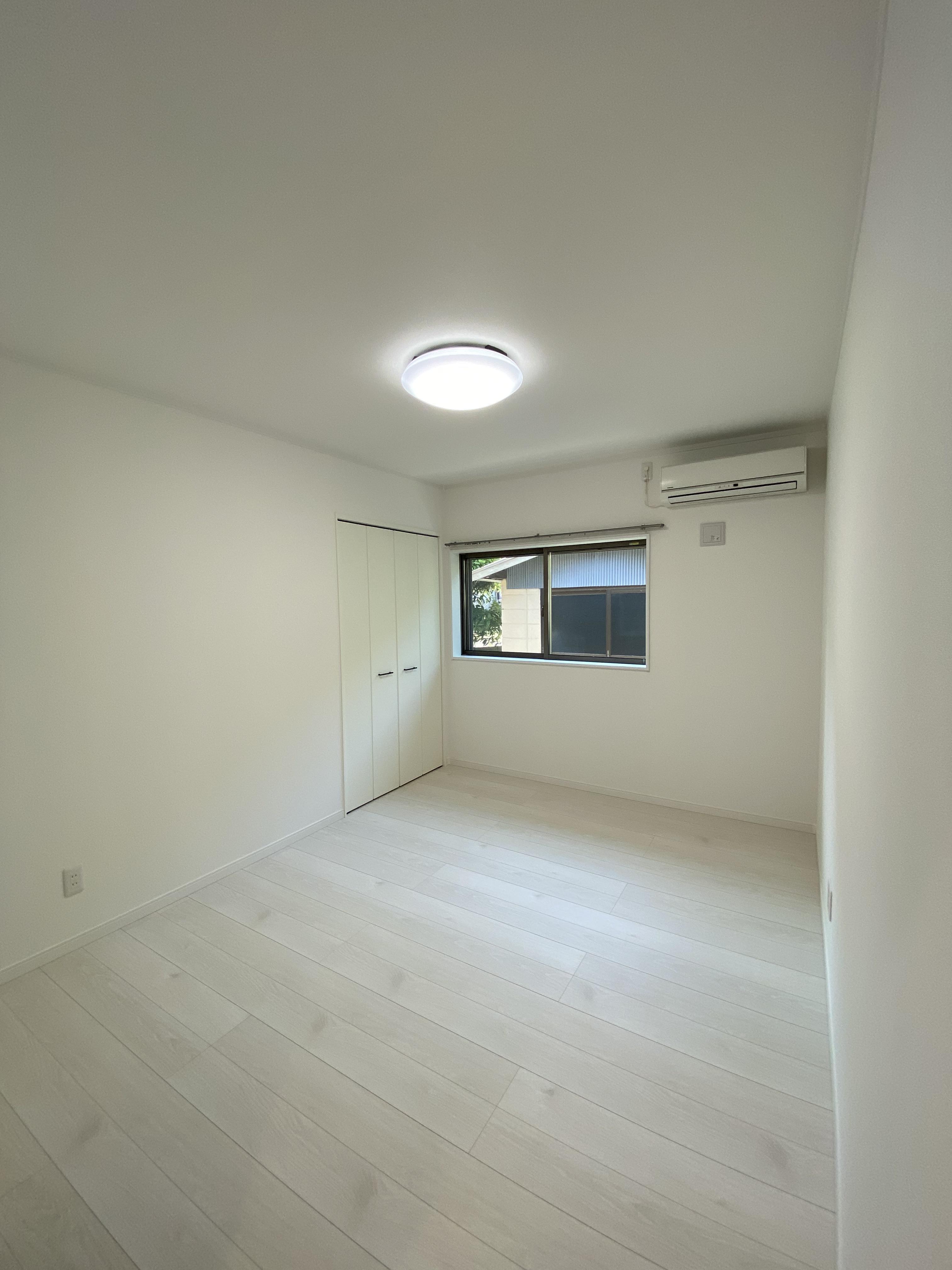 和室だった部屋は、白を基調とした落ち着いた洋室へ変身。各部屋に収納をつくり、寝室の隣りにWCを。照明・エアコンも設置したので、お引っ越し後、すぐに生活していただけます。