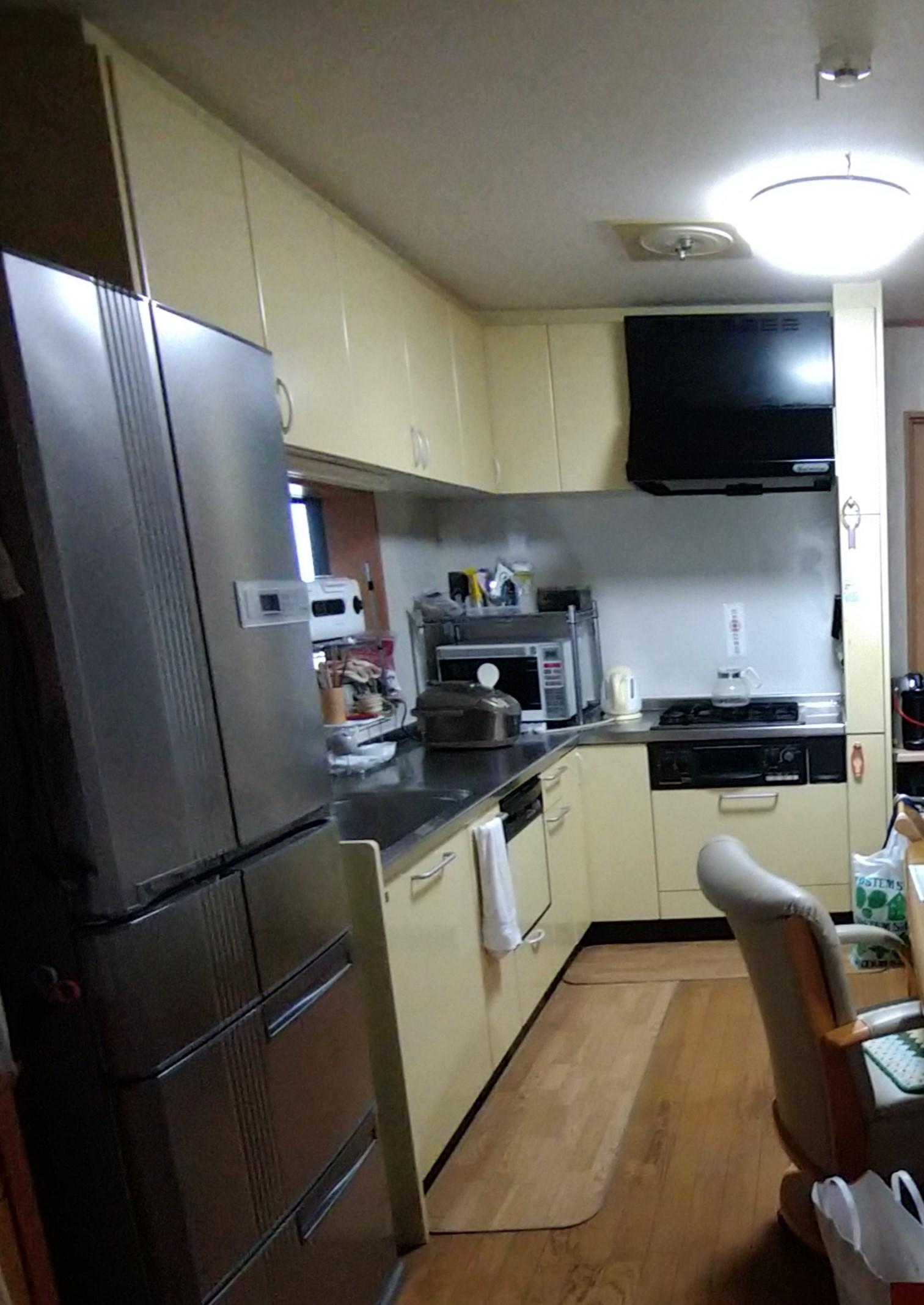 中古住宅購入をきっかけに交換・改修のご相談をいただきました。キッチン「リシェルSI」は、セラミックトップを選択できること、ラクパット収納があり、リシェルSIにしかない扉色があることが採用の決め手でした。また、洗面は本体、壁クロス、床のクッションフロアの交換、外壁塗装、ベランダは手摺りの塗装、バルコニーは床の防水処理を行いました。