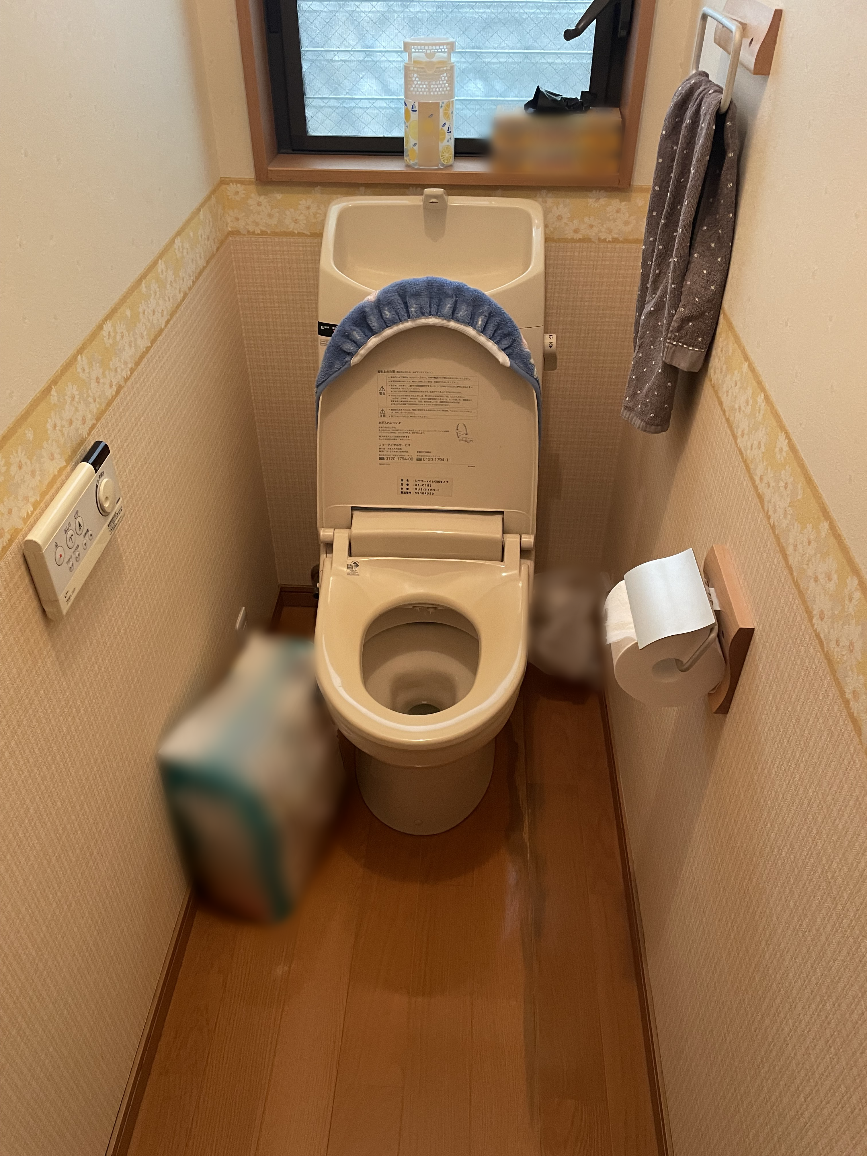 1階トイレの水漏れの為、便器交換・トイレ手洗いや手すりの設置のご相談をいただきました。この機会に2階トイレ便器交換工事のご依頼もいただき、壁紙はリフォーム用防カビ抗菌仕様への交換をご提案させていただきました。