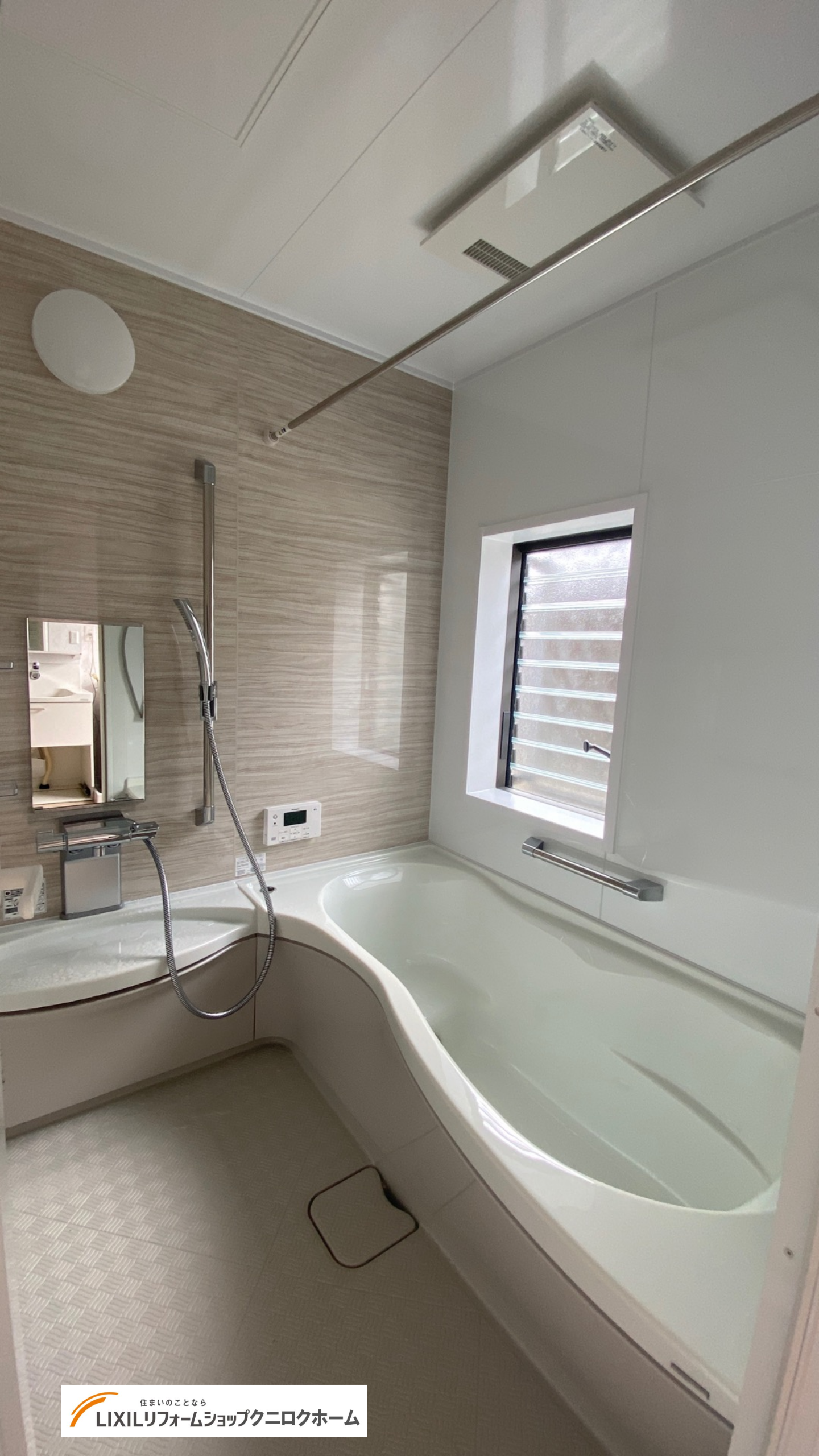 浴室は、経年劣化の為ユニットバスの交換をさせていただきました。入浴時寒さを感じるとのことでしたので、2枚のガラスで構成されている複層ガラスへ交換、さらにサッシを半分のサイズかつルーバータイプへ交換することで、防犯面を考慮しつつ換気がしやすいようご提案させていただきました。