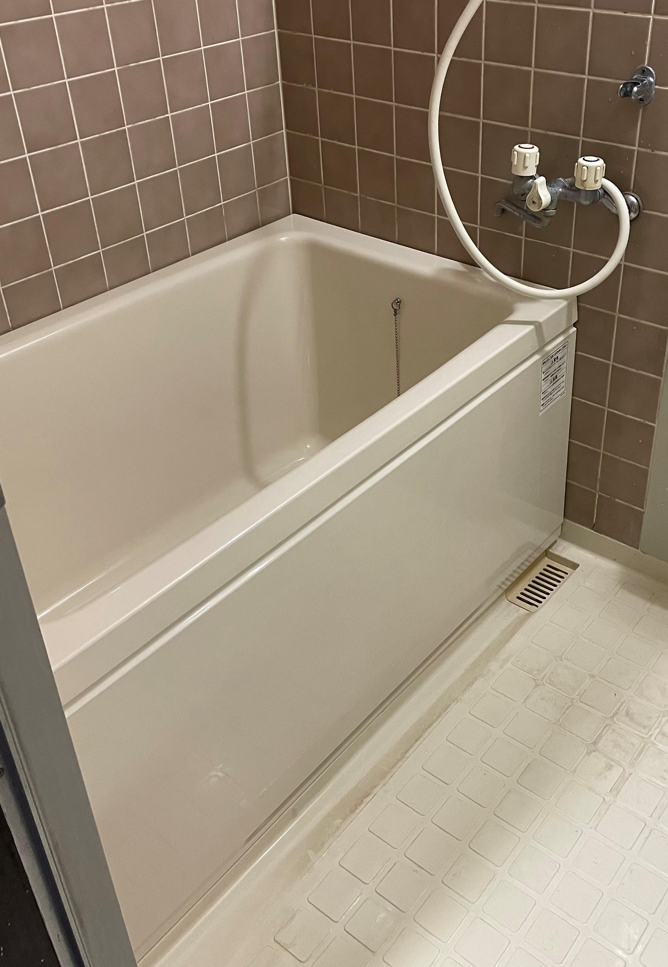 マンションの浴槽の底が割れたので、至急交換してほしいとのご依頼をいただきました。既設の浴槽は旧INAX製(現:LIXIL)で、後継品をお調べさせていただきましたところ、材質はFRPでサイズも同じ浴槽がありました。施工後、浴槽が排水口を干渉することなくピッタリと納まりました。緊急性の高い工事でしたので、1日も早い施工が出来るよう努めました。お施主様に大変ご満足いただけたことをとても嬉しく思います。