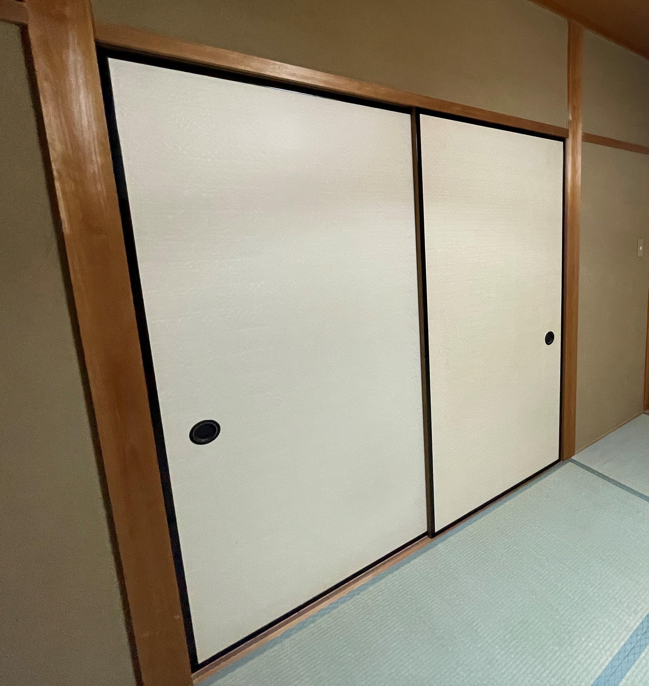 引き戸で分けているお部屋を壁で間仕切りしたいとのご相談をいただきました。既設引き戸は撤去を行い、壁を立てて、クロスを張りました。