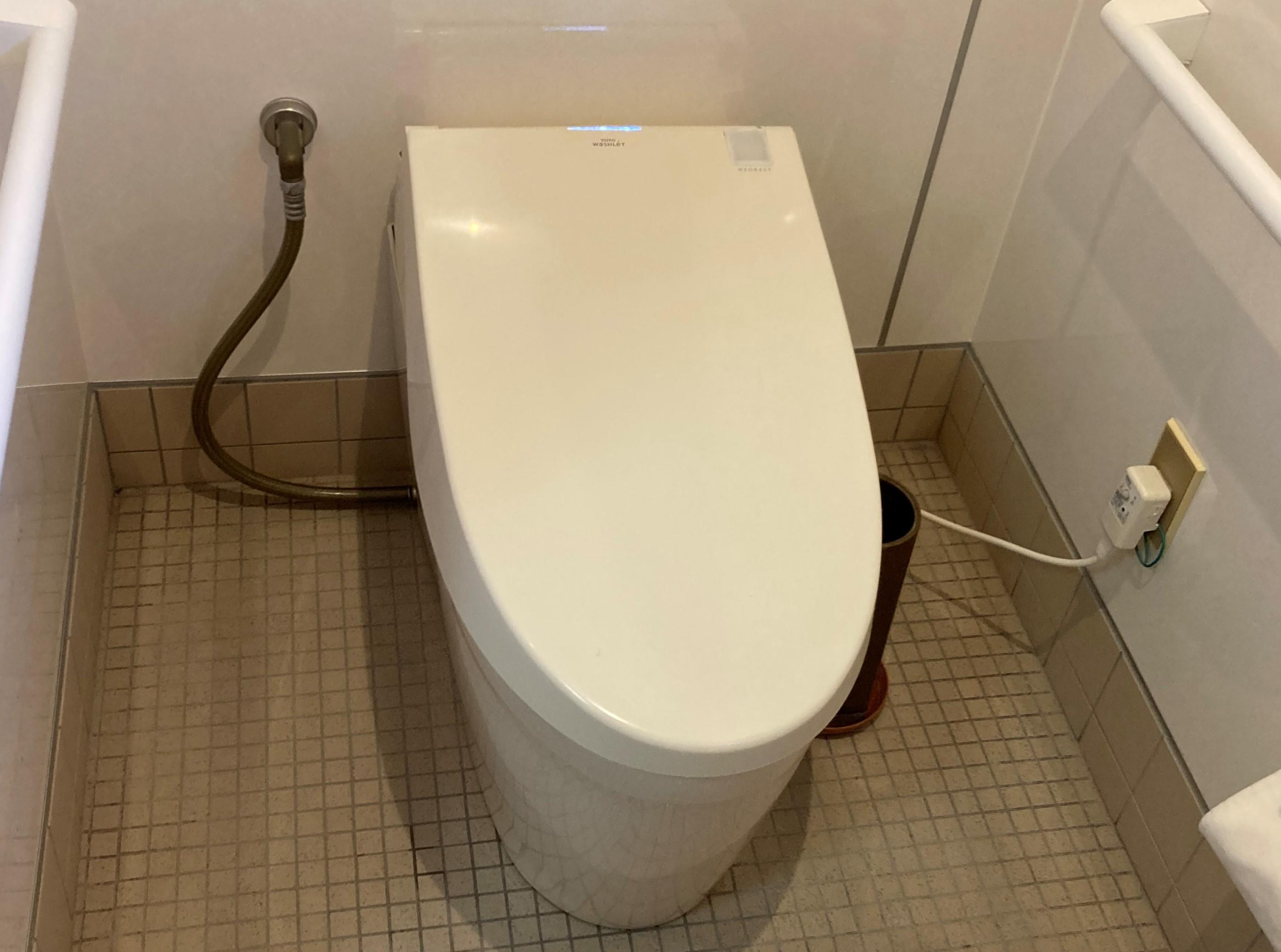 洗浄機能部が故障し水漏れをおこしていた為、新しいトイレに交換したいとのご相談をいただきました。既設のトイレがタンクレスの為、交換後もタンクレスで洗浄機能部の乾燥なしのタイプを希望されてみました。そこでトイレ本体は、タンクレスで乾燥機能がなく汚れがたまりやすい便器のフチ裏をなくしたフチレスタイプを、床はタイル張りの為、内装工事は行わないご提案をさせていただきました。丸みのあるフォルムの為、トイレ空間はやわらかい優しい雰囲気になります。また、便器の表面の凹凸がなく、汚れを落しやすいので清掃性の高い仕上がりになっています。