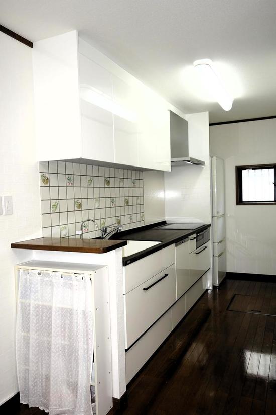思い切ってお願いして良かったと思います。カッコイイキッチンにしたかったから、カウンターをブラックにして良かったし、元々のタイルを残したのもよかったと思います。カップボードは違うメーカー同士の組み合わせとは思えないほど、きれいに収まって満足しました。