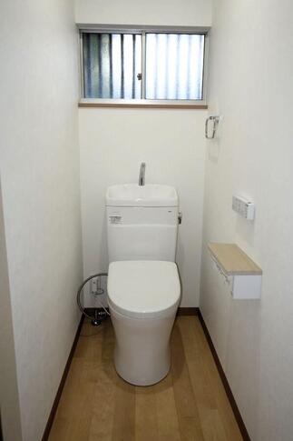 トイレ→タイル造りだった内装を脱衣室と同じカバザクラのフロアーとクロスで仕上げました。
