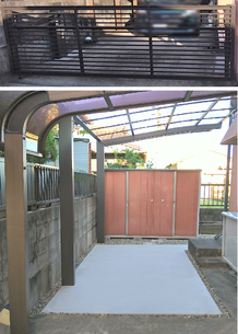 跳ね上げ門扉交換・カーポート増設・土間コンクリート延長舗装工事