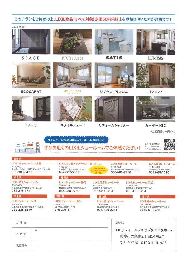 キャンペーン期間中、このチラシを対象のLIXILショールームへ持参し