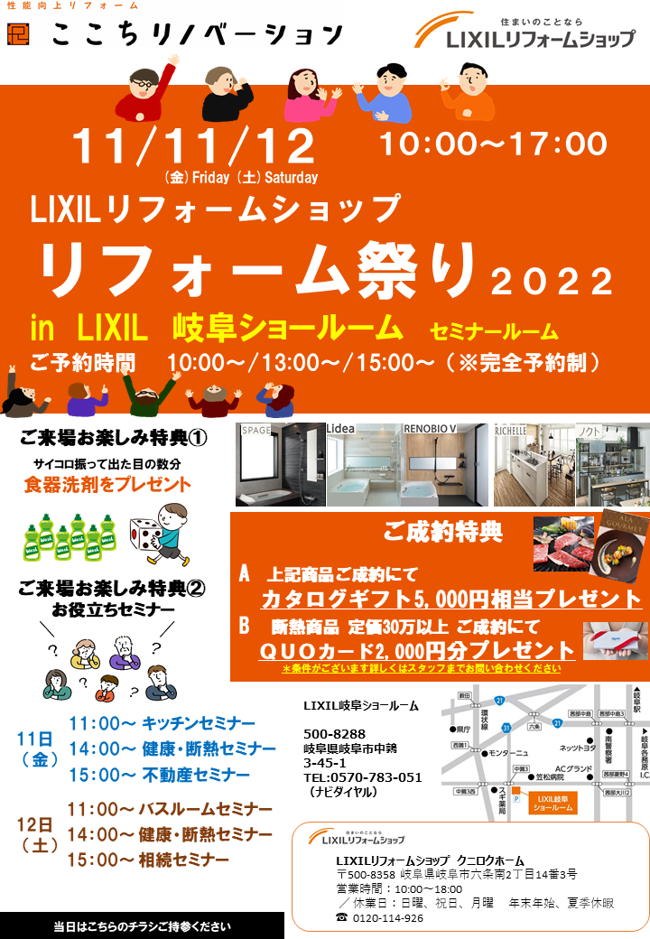 開催場所:LIXILショールーム岐阜 〒〒500-8288 岐阜県岐阜市中鶉3-45-1