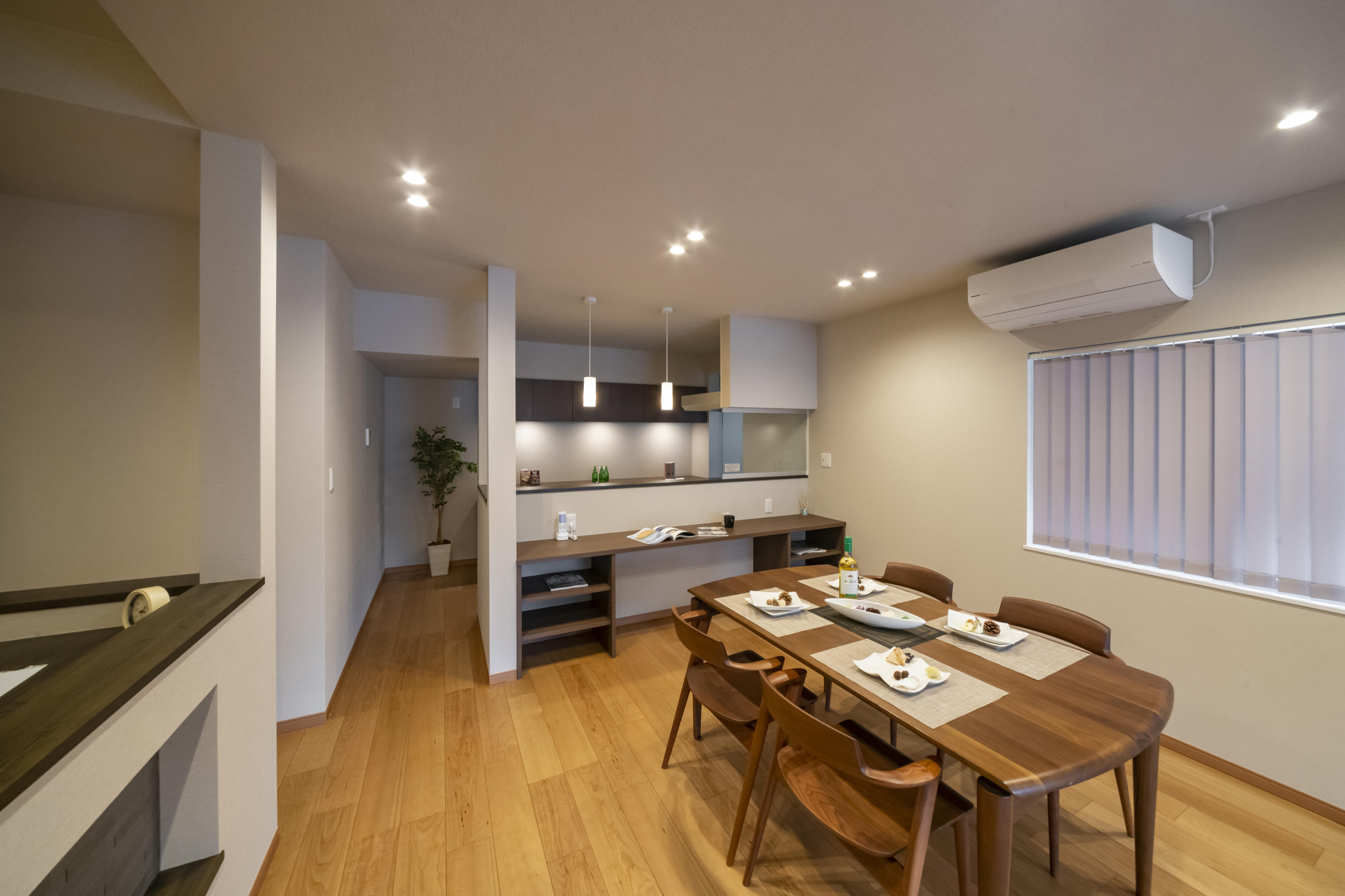 子育て真っ最中のご家屋のお家は1階だけで生活が出来るお家です。 リビングにはリビング学習が出来るスペースも。