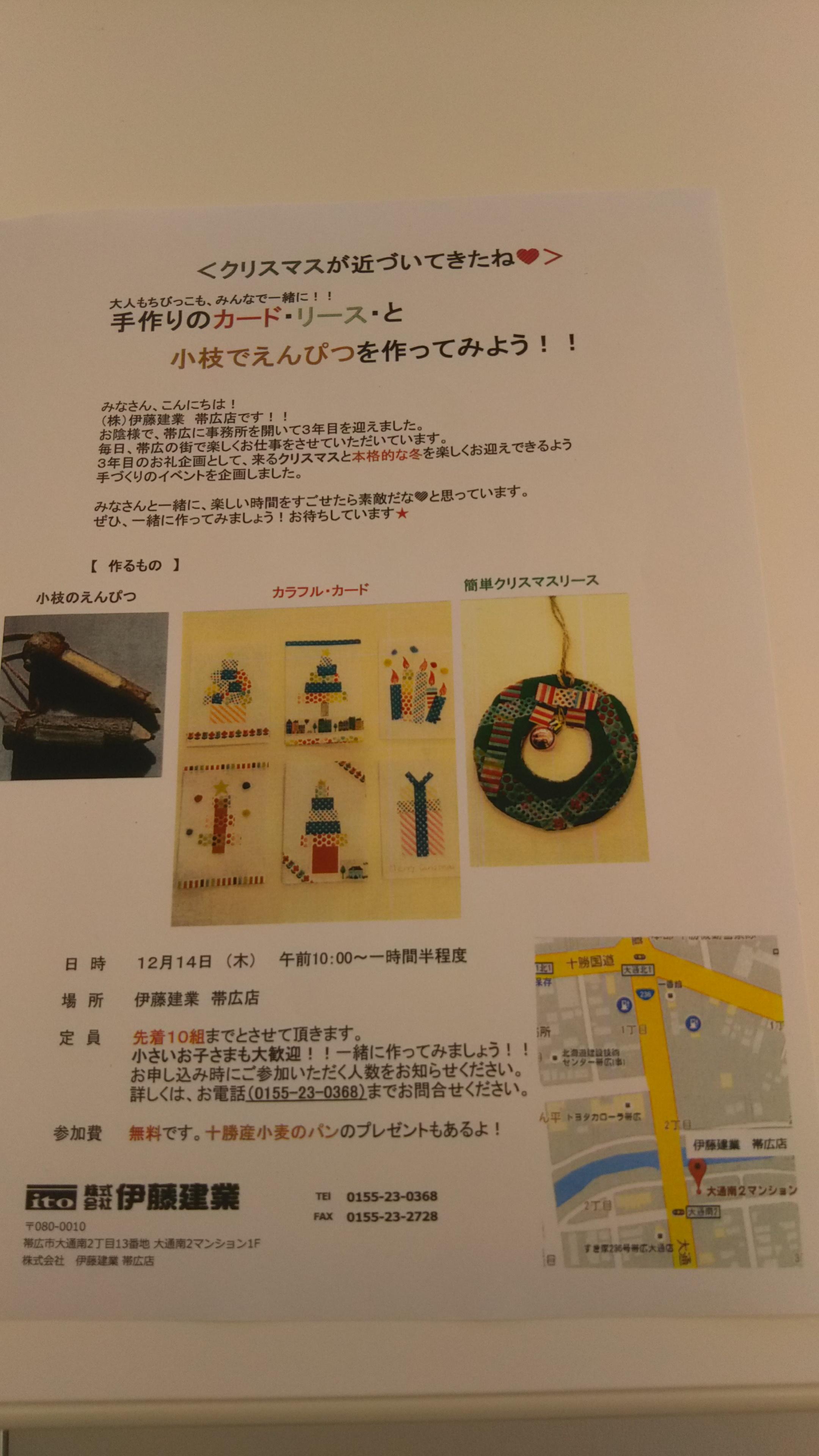 お礼企画と致しまして、手作りのクリスマスカード・リース・えんぴつなどを