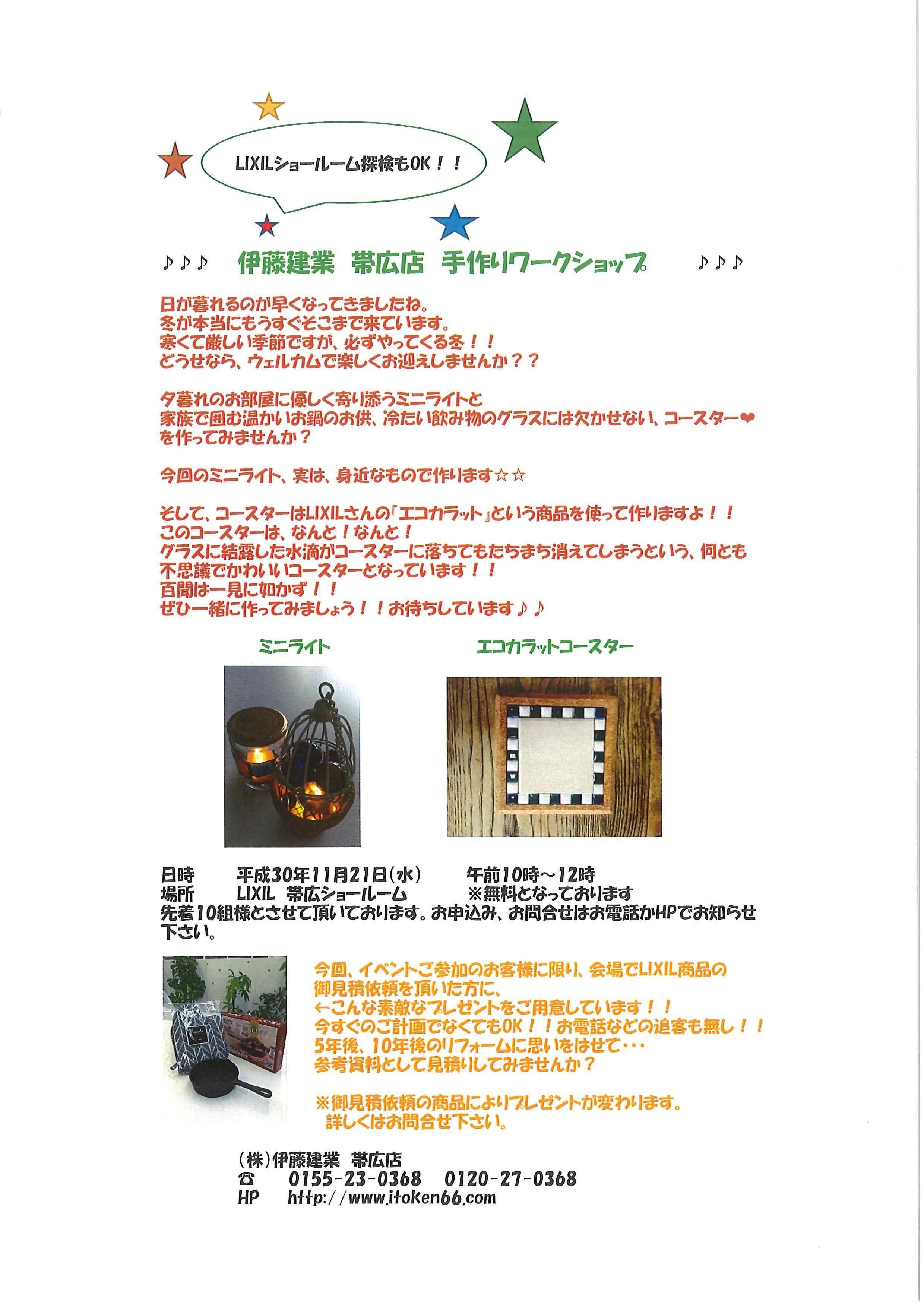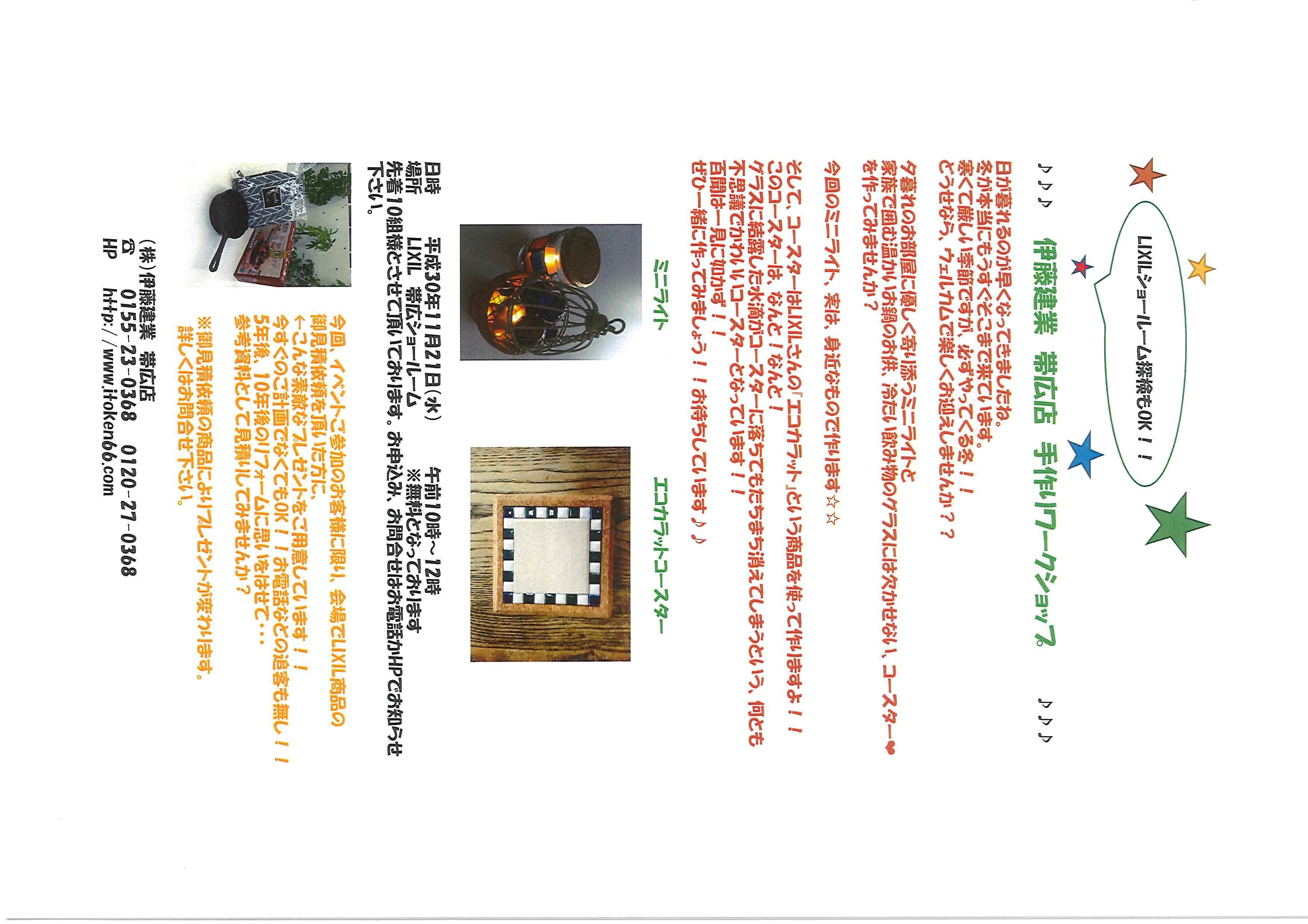 ㈱伊藤建業帯広店で手作りイベントを開催致します。