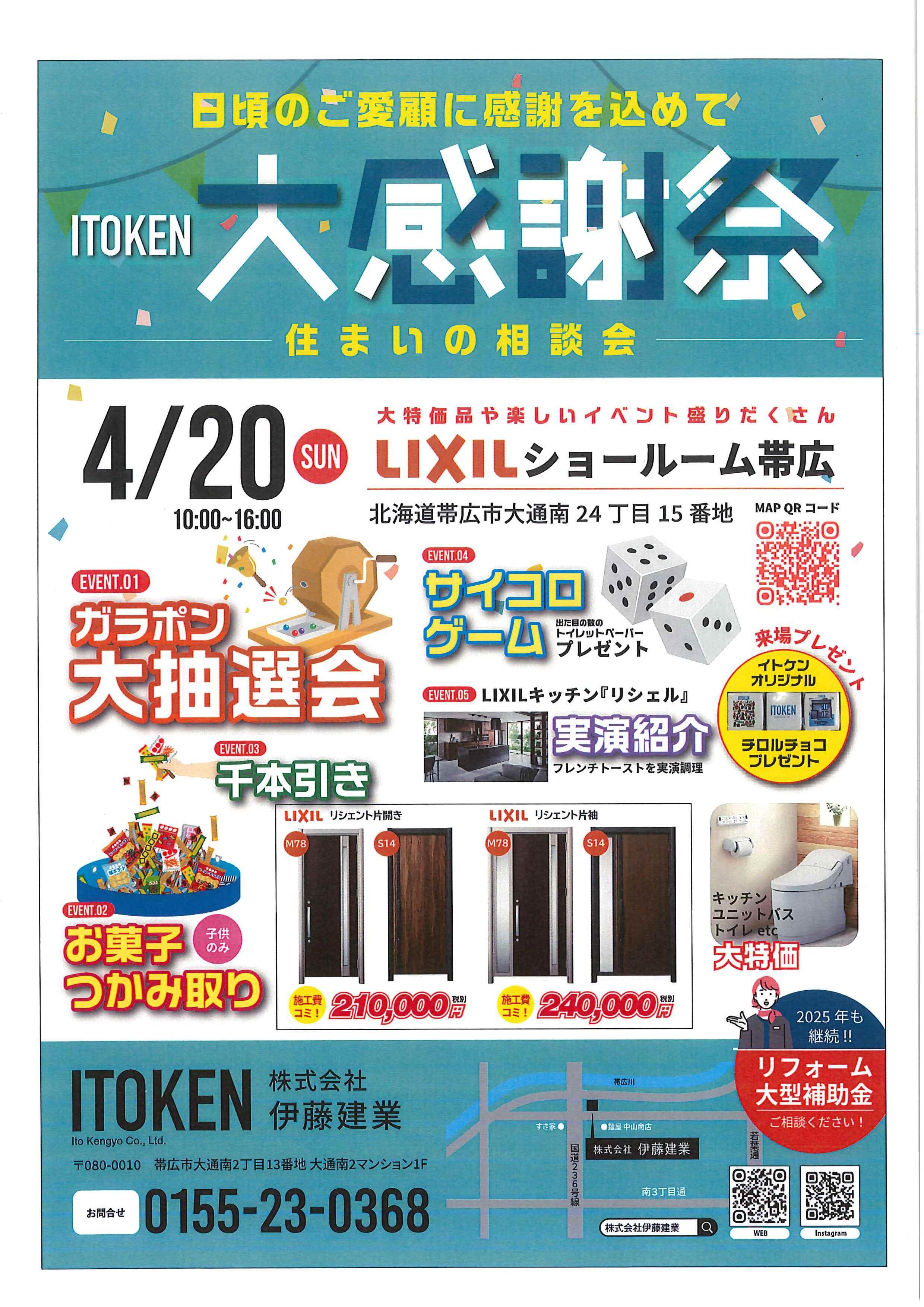一覧へ戻る伊藤建業帯広店イベントのお知らせです。