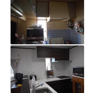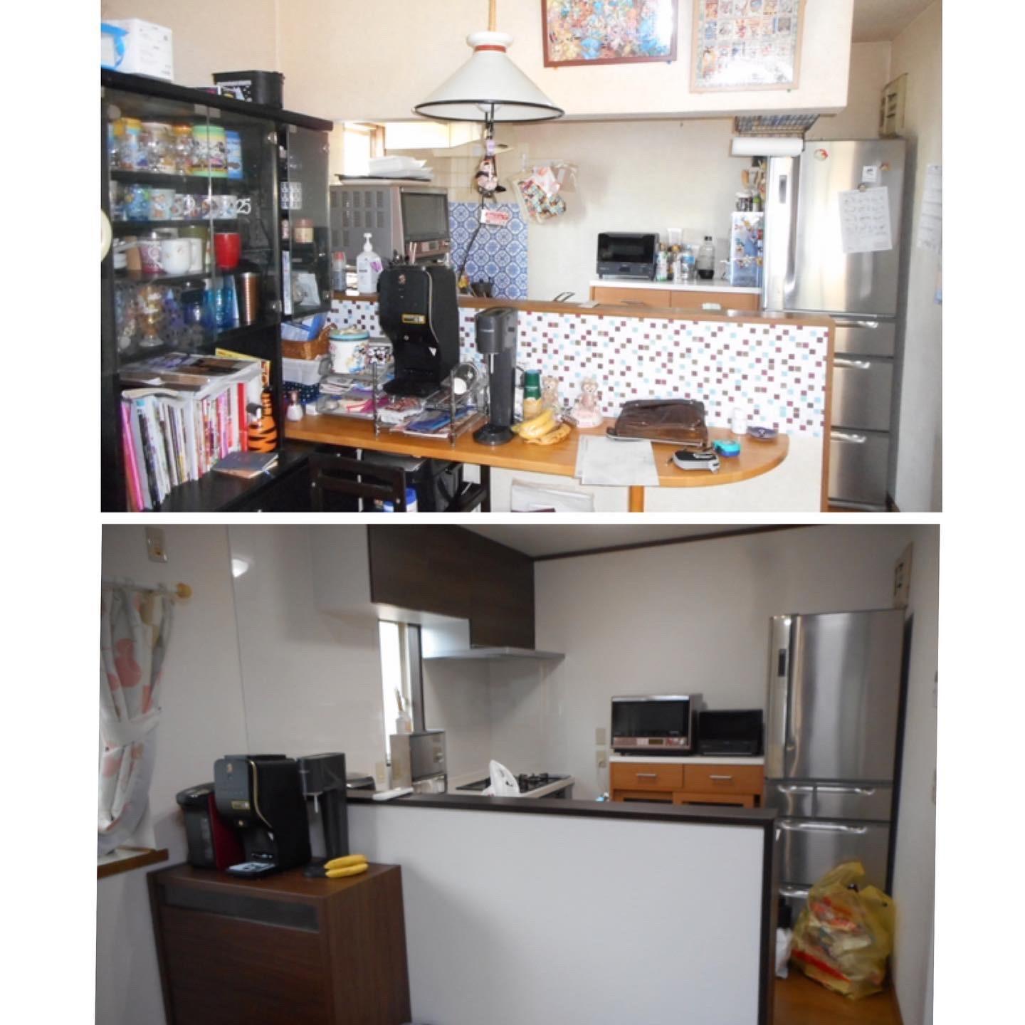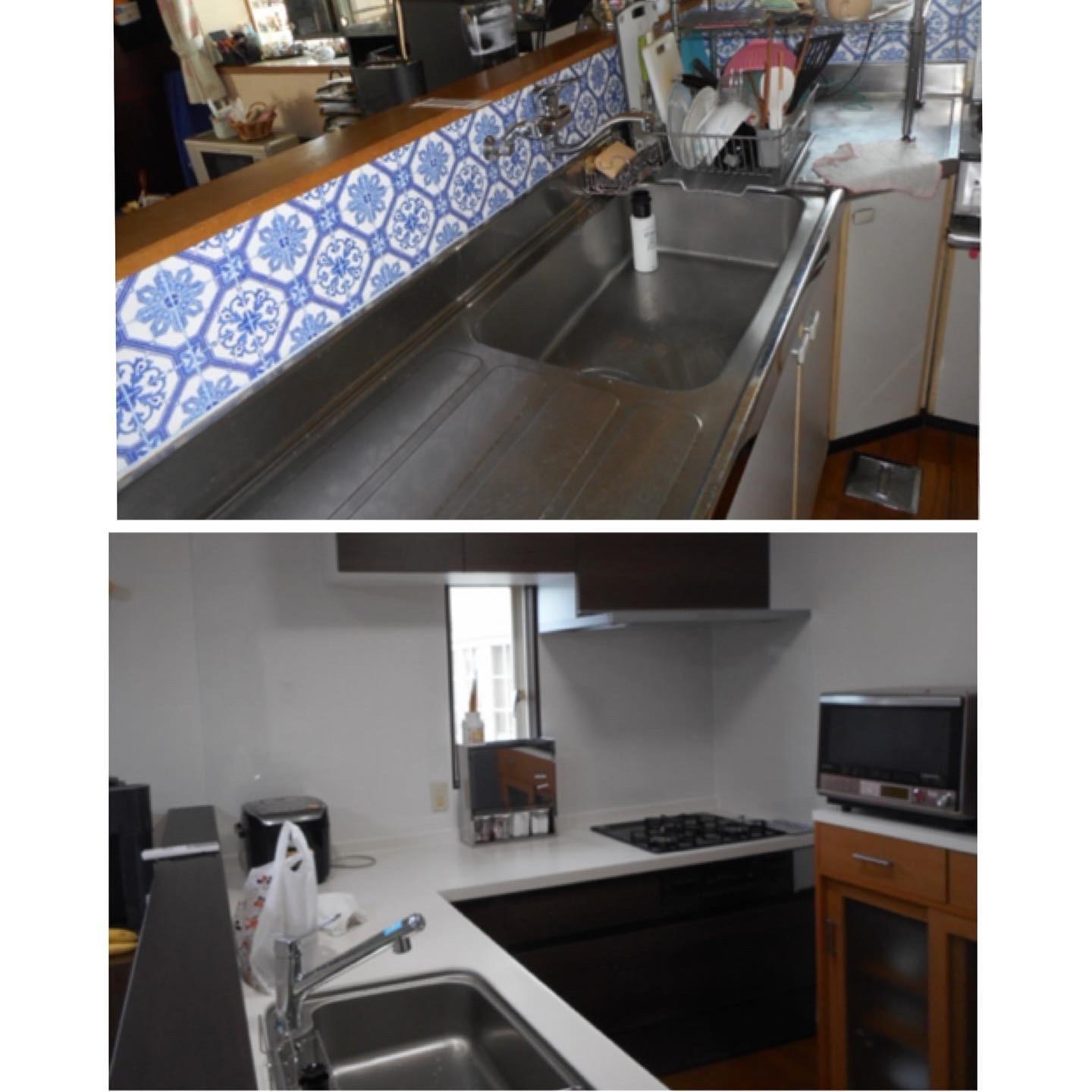 キッチン交換に伴い、吊戸棚を撤去しキッチンの位置を少しリビング側に移動させ広くしました。