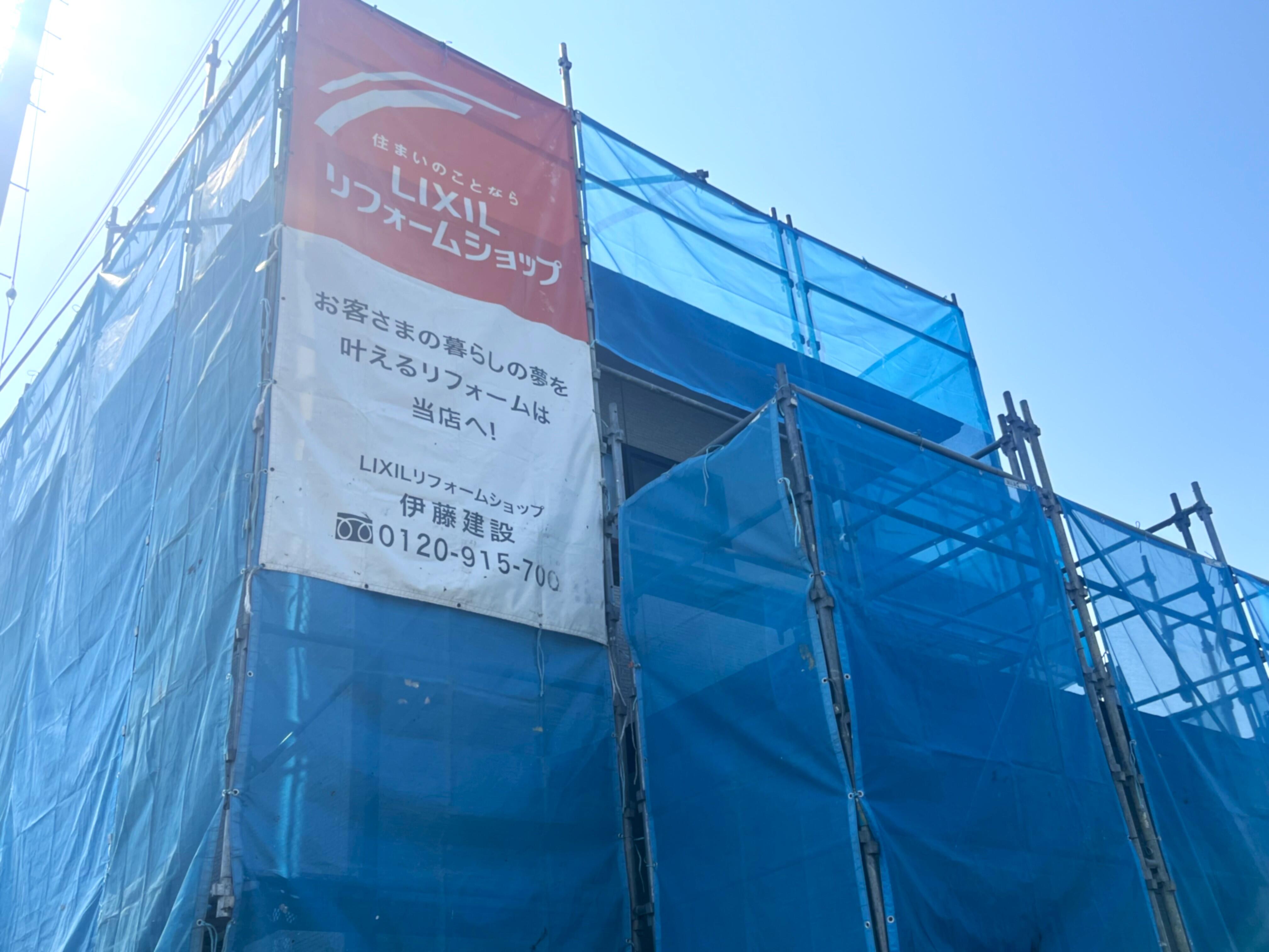 本日の岩沼市は、じっとしていると少し汗ばんでしまうような、夏の息吹が感じられるお天気です。快晴の中、築20年のお宅の屋根の改修工事がスタートしています。