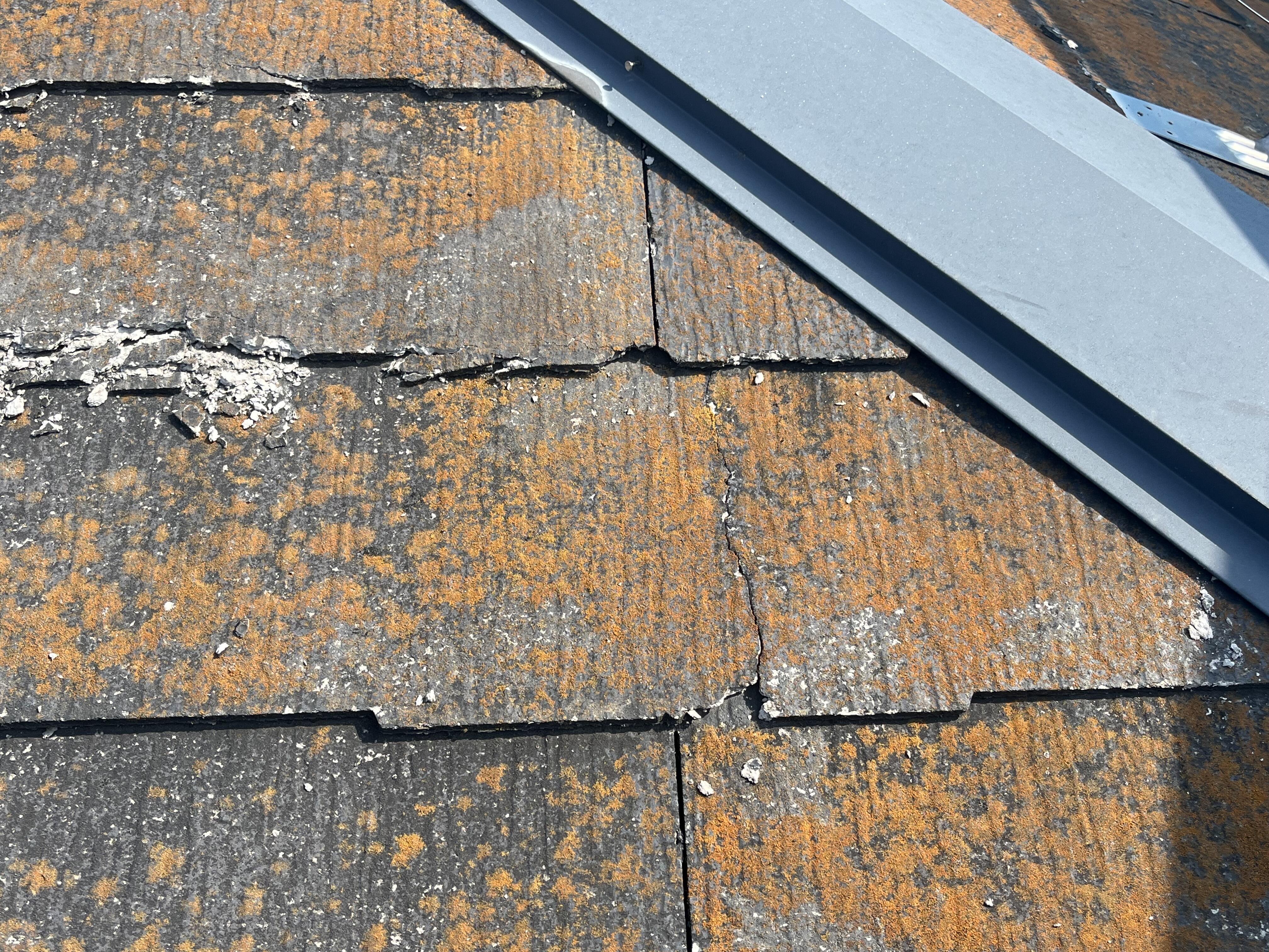 既存の屋根は化粧スレート材だったのですが、20年経過して変色や欠け、ひび割れが発生しています。![]()