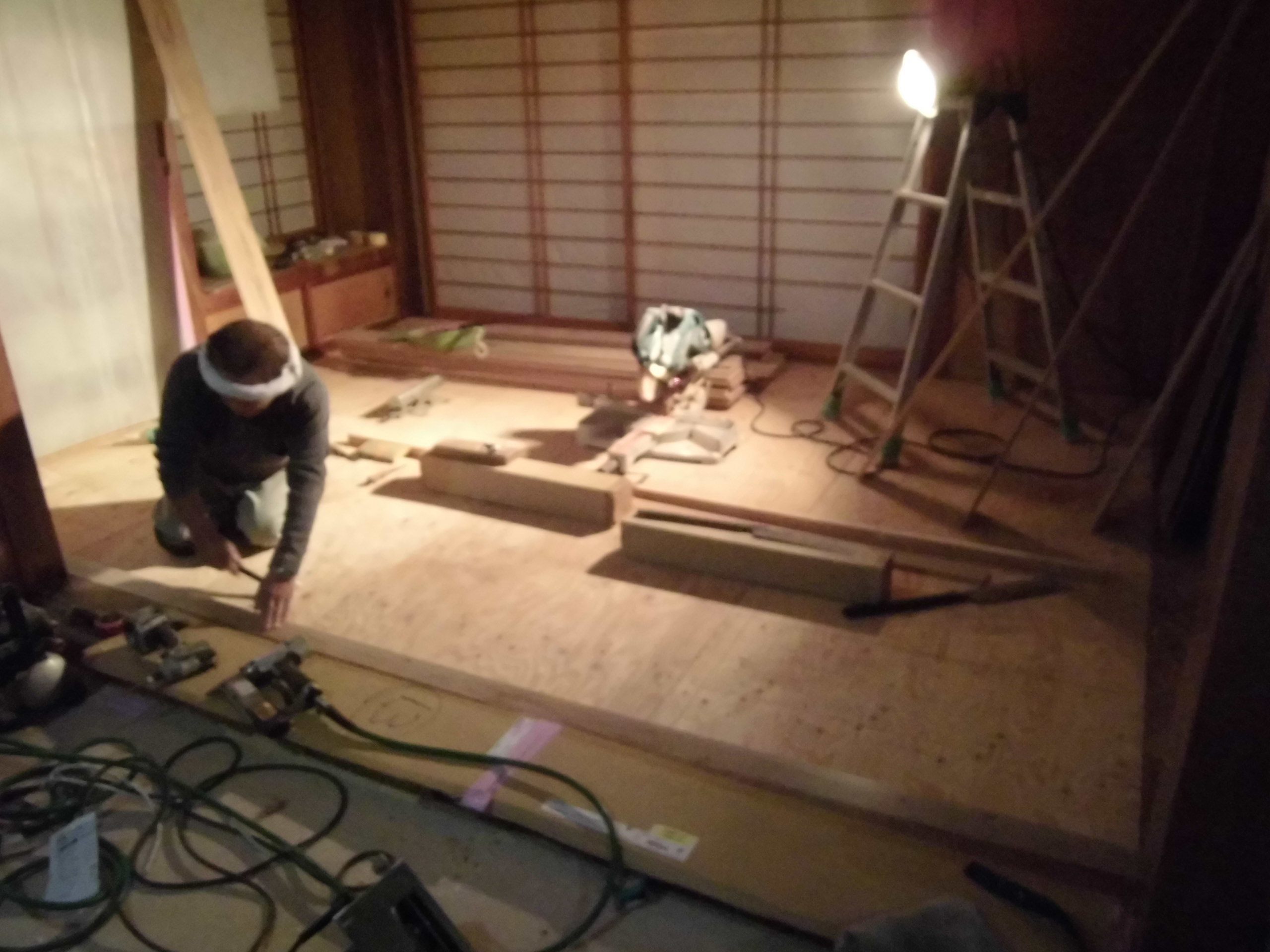 内装の工事が進行してゆきます。床組補強、断熱工事、フロア新設。