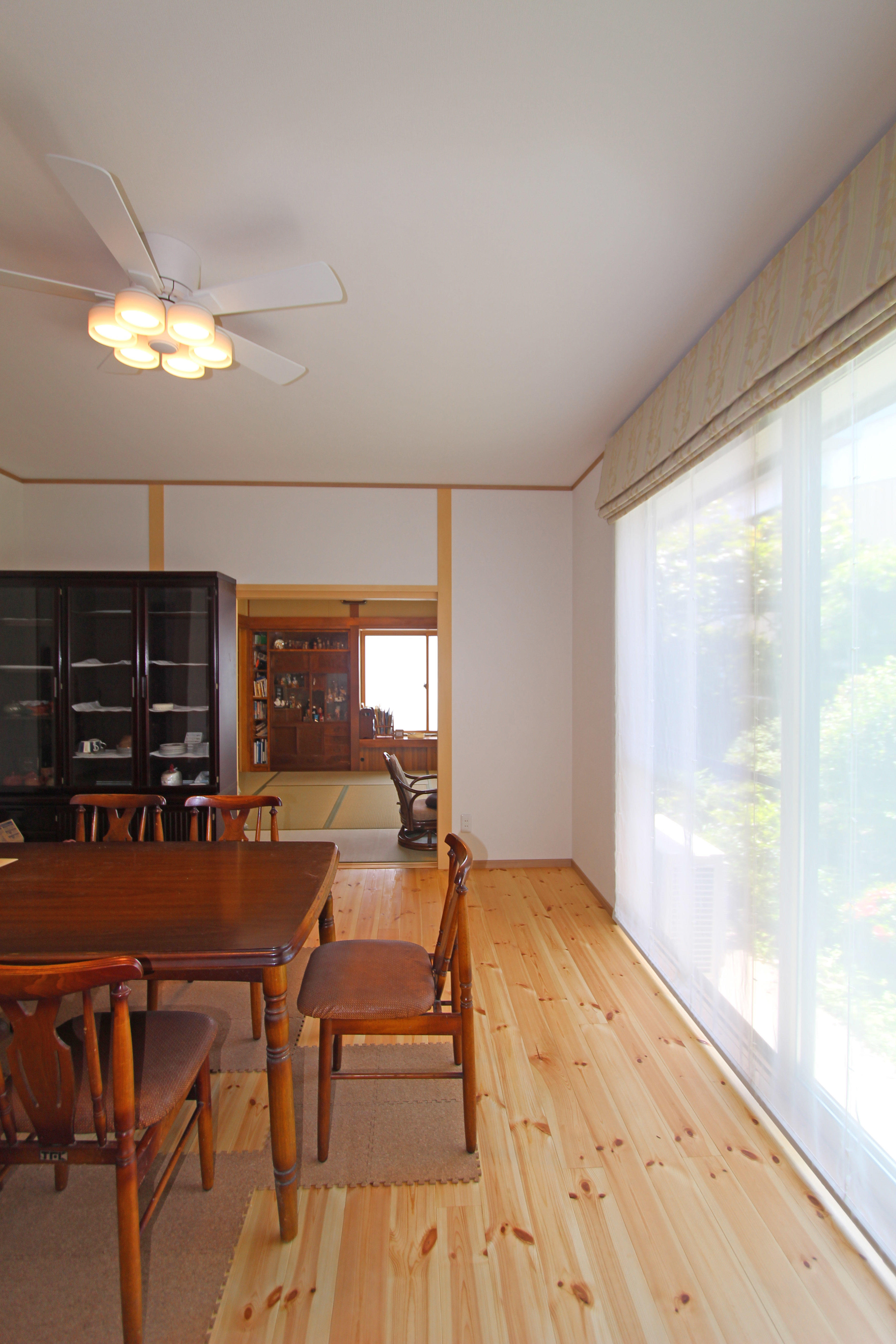リビング、和室、水廻り空間の間取変更を行い、玄関の交換と内窓の取付を行いました。耐震性、断熱性も向上させました。