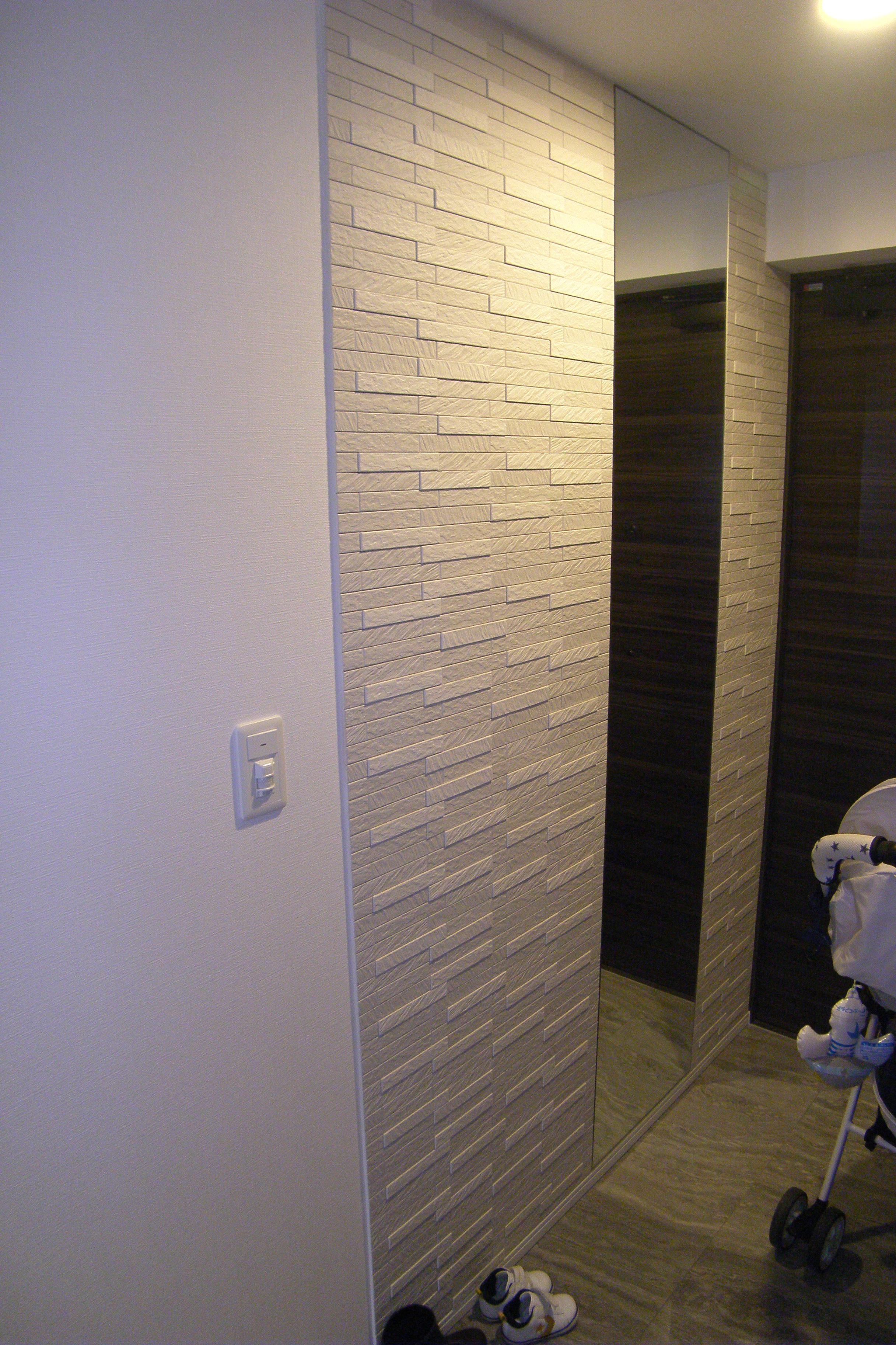 完成引渡し直後の新築マンション。入居前に玄関とLDにエコカラットを貼りました。意匠性も機能性も高まりました。