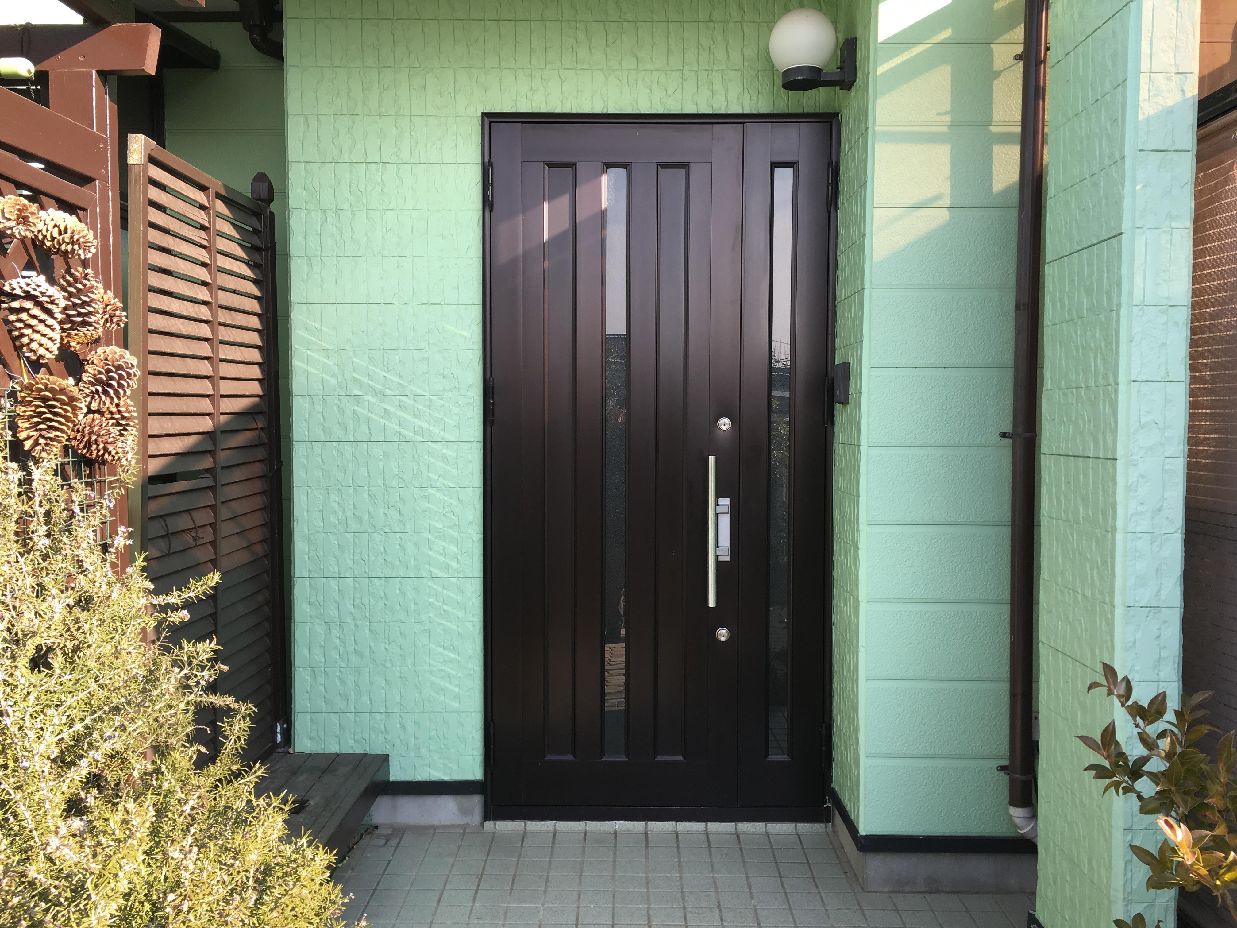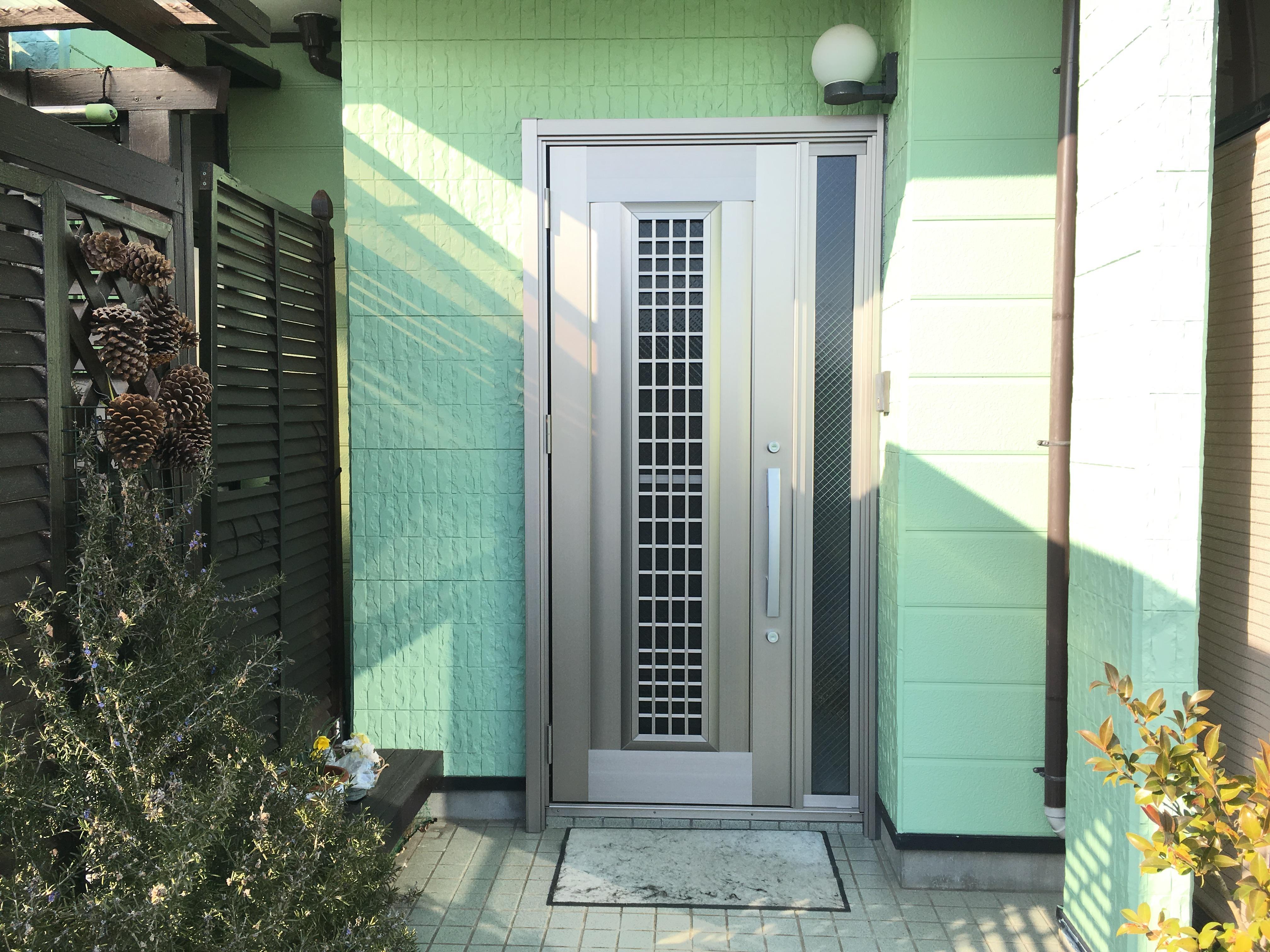 玄関が暗くて風通しが悪かった為、彩風機能付きの明るいドアに変えました。
