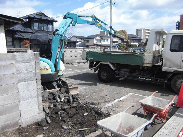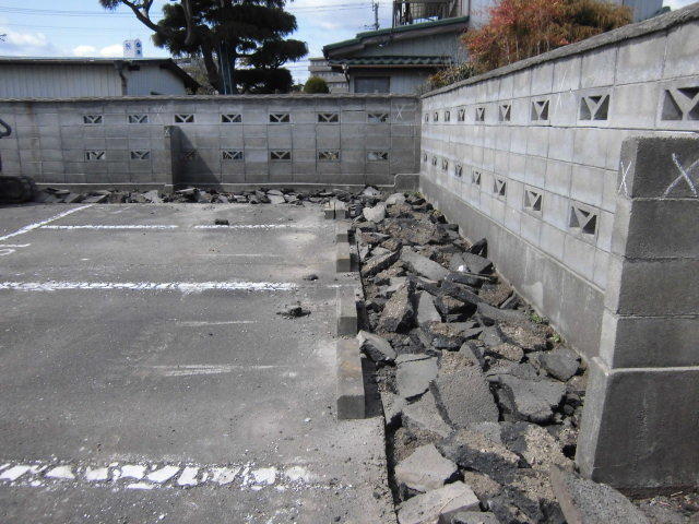 擁壁・舗装を新設するにあたり、老朽化した部分を解体しました。