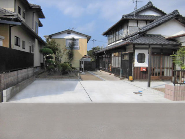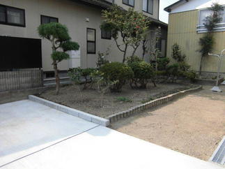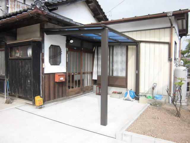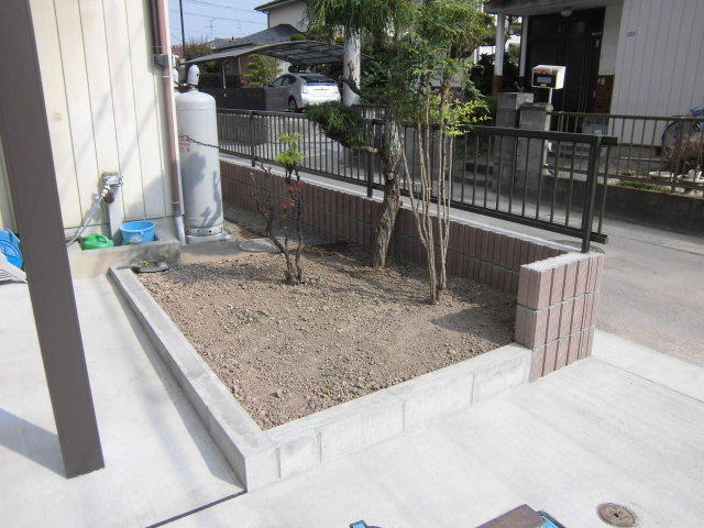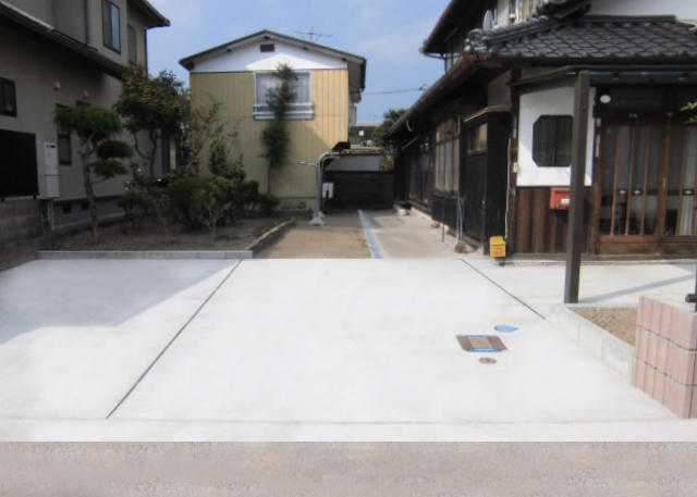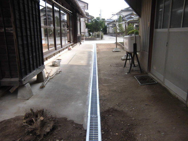 全面道路の幅や間口の幅、車を停めるに少し苦労していました。合わせて玄関テラス、水はけをよくするため暗渠(あんきょ)側溝を設置しました。