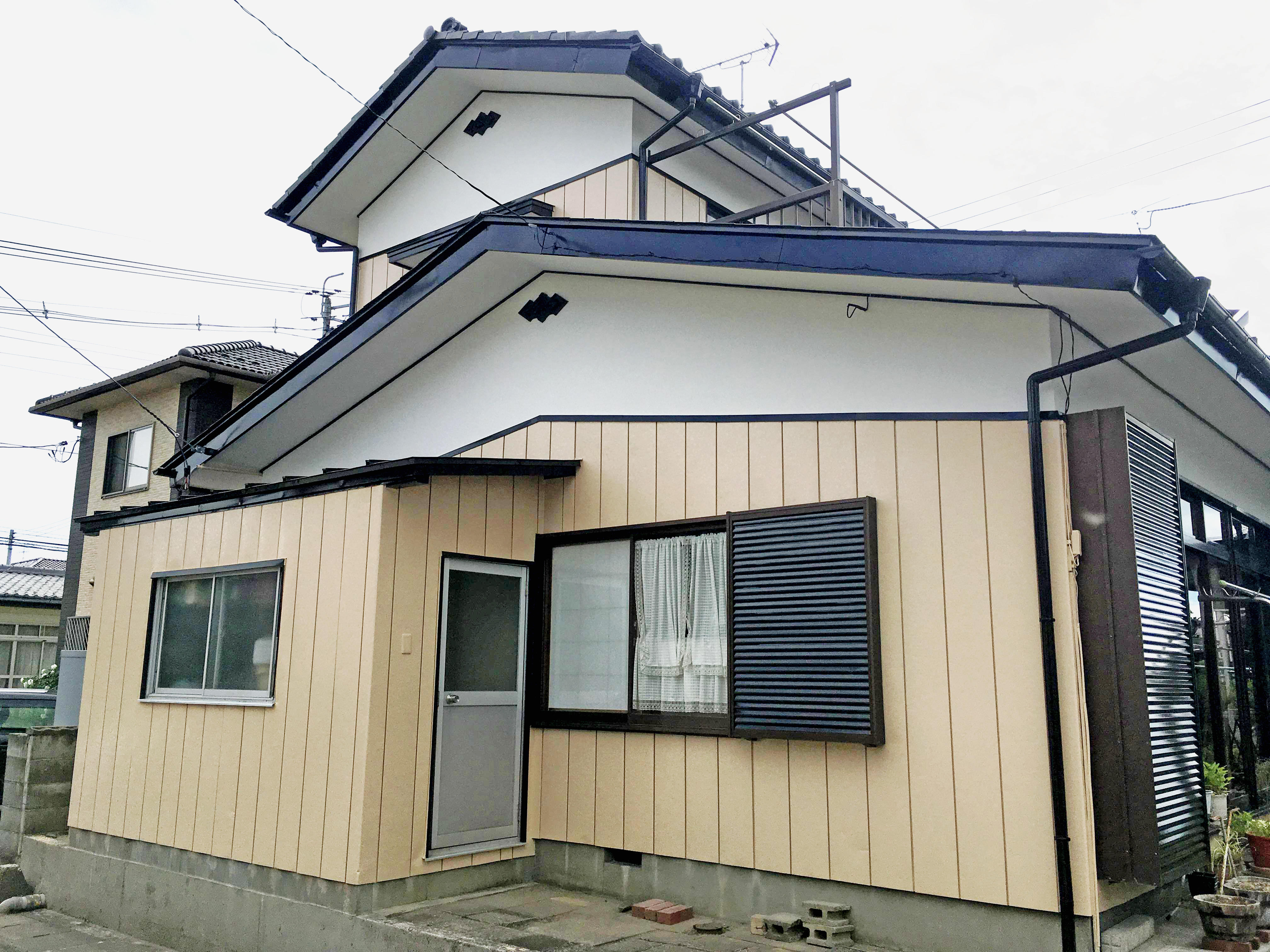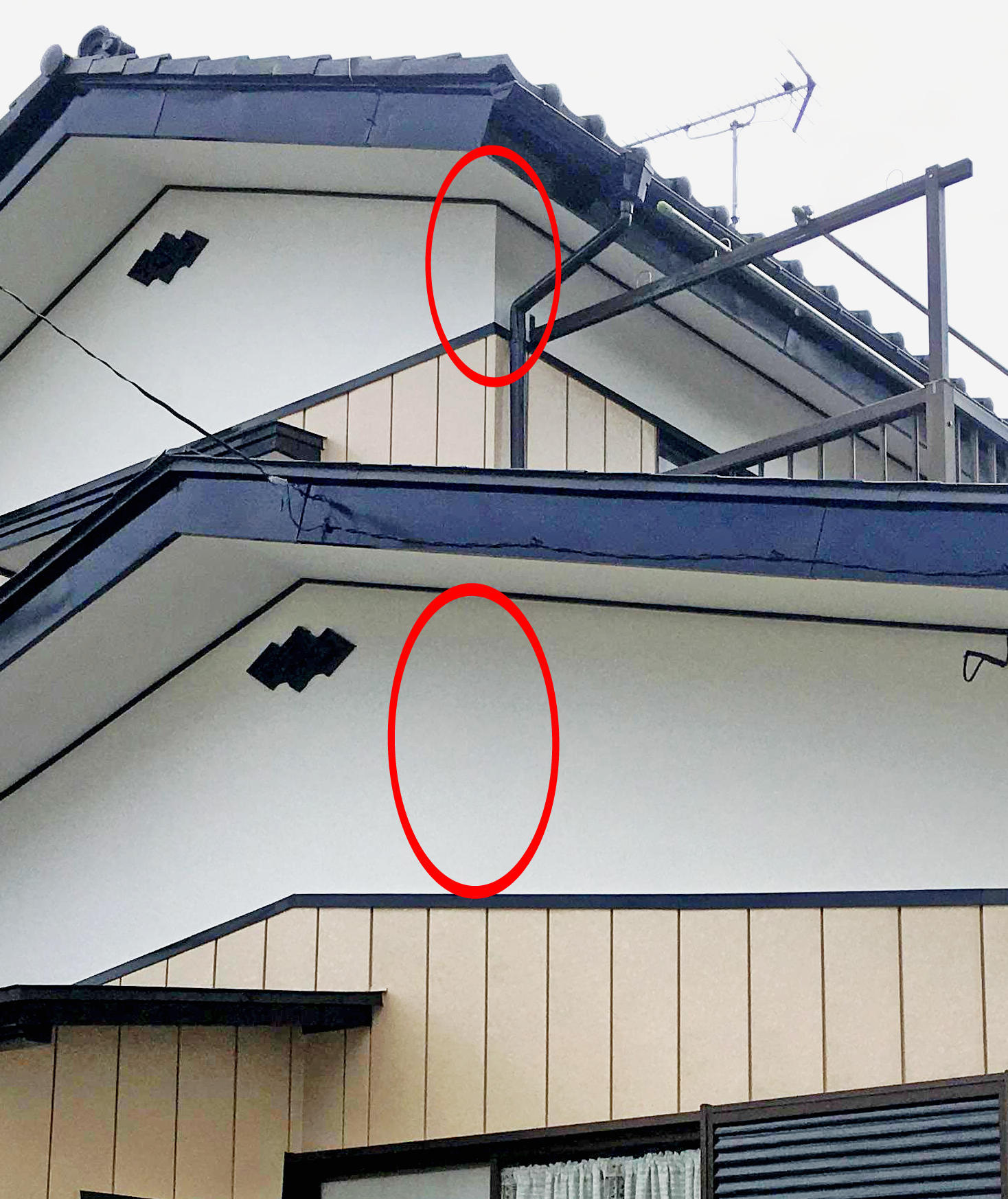 外壁上部の塗壁のひび割れや欠けを修復し、新たに塗装しました。