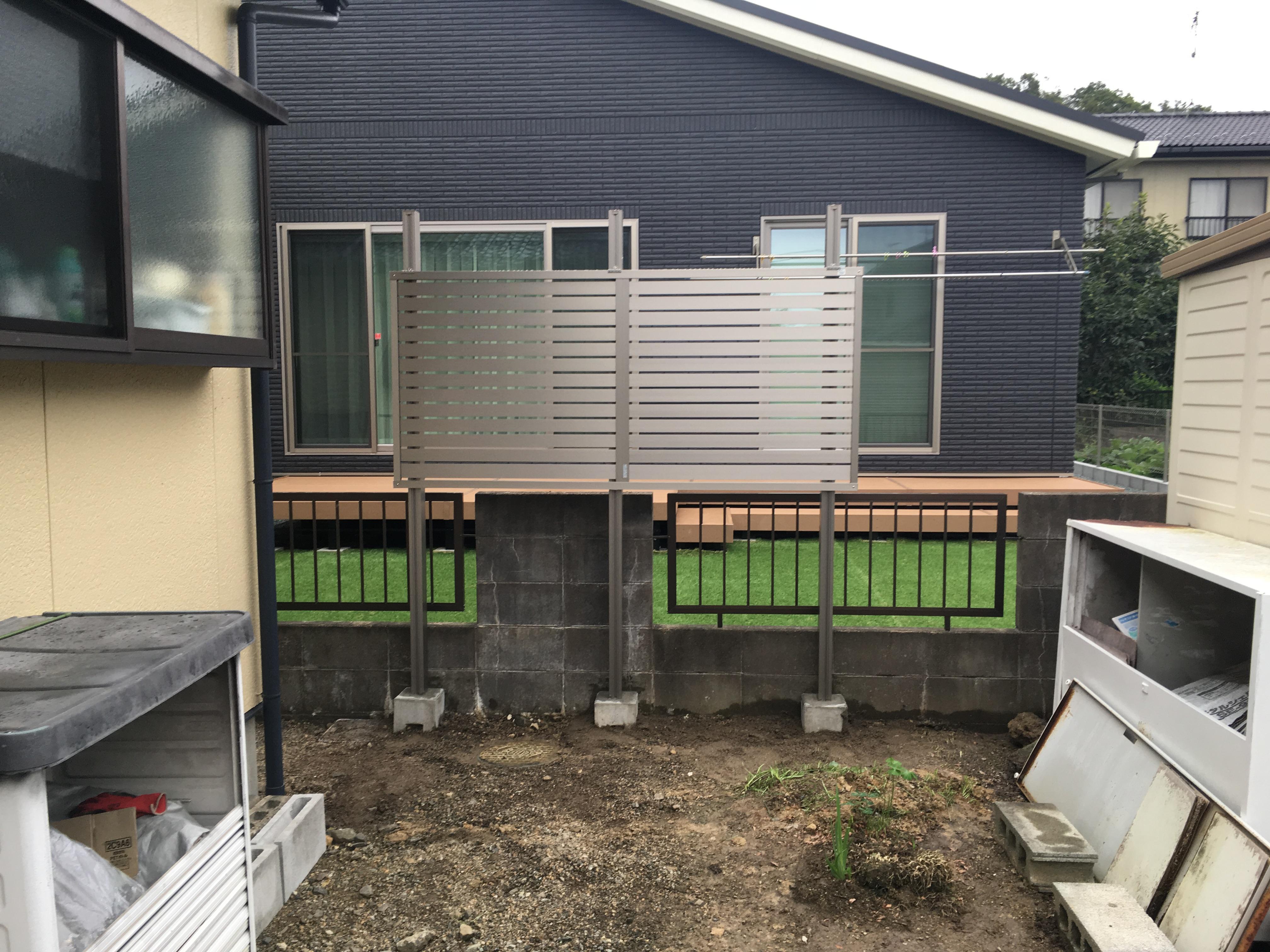 お隣の方との目線が気になるのでプライバシー保護の為、目隠しフェンスを1枚設置しました。