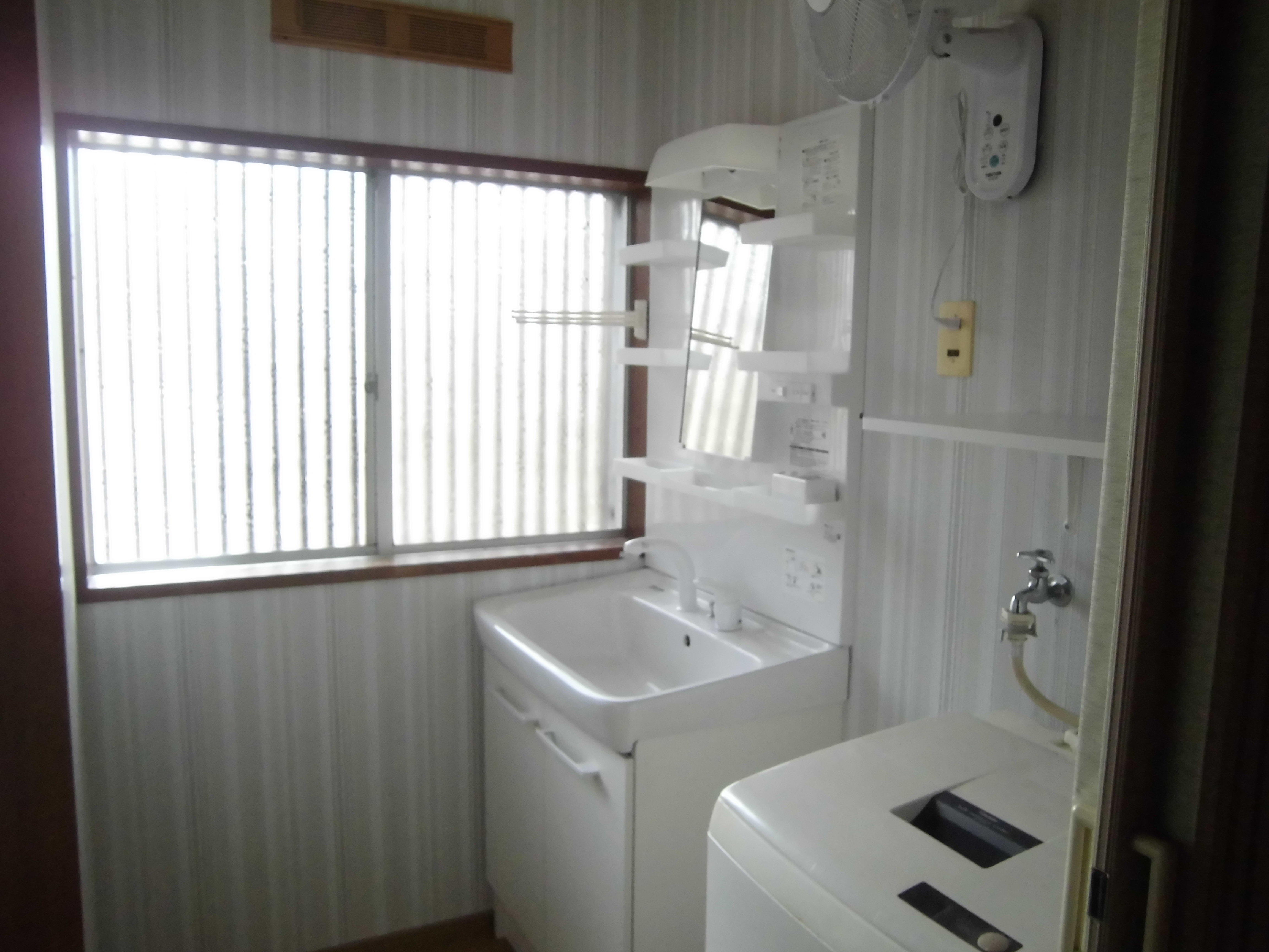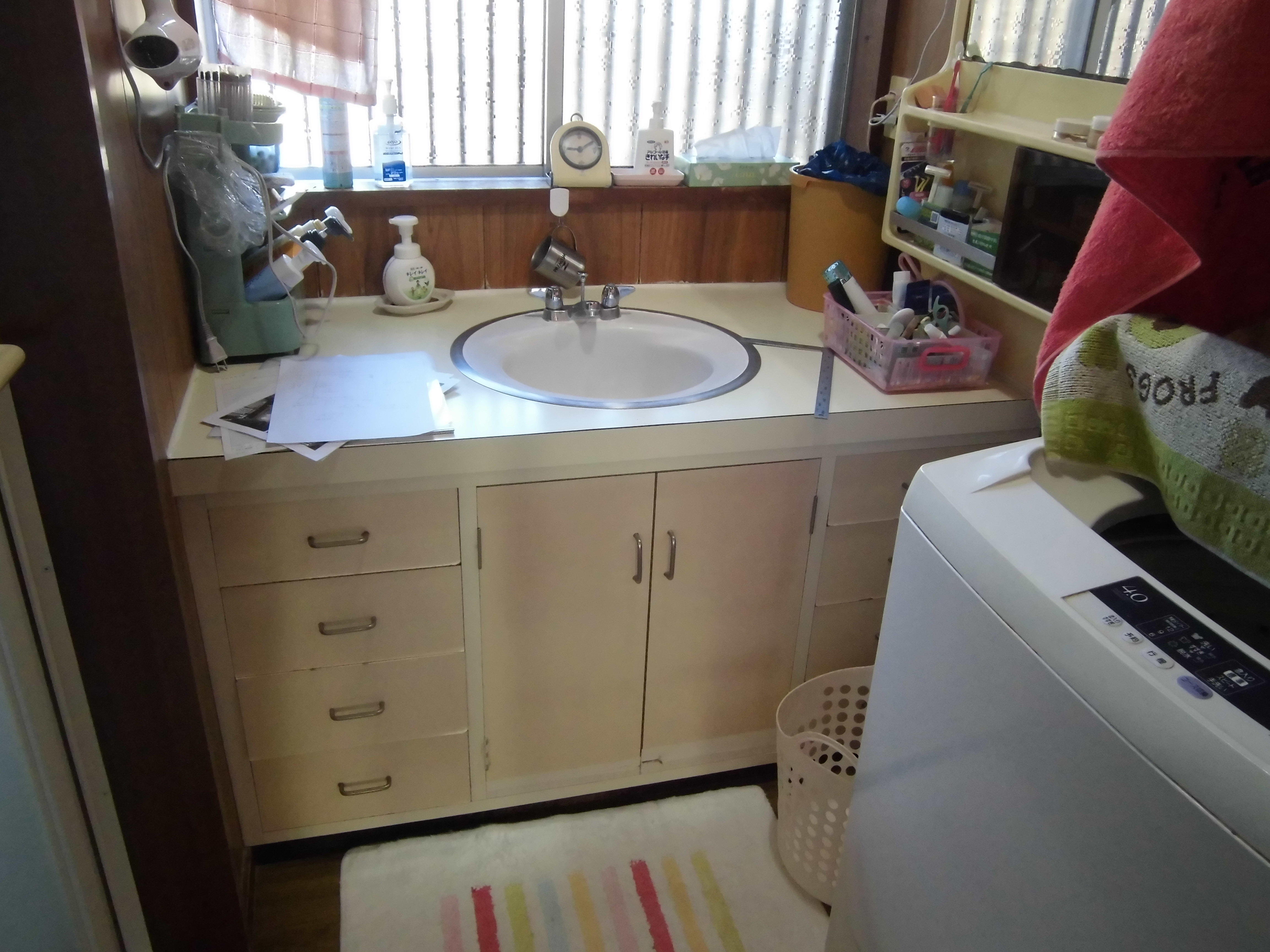 既存のカウンター式の洗面の水栓が老朽化し、洗面室空間を広く利用する為にコンパクトな洗面台にして壁を明るくしました。