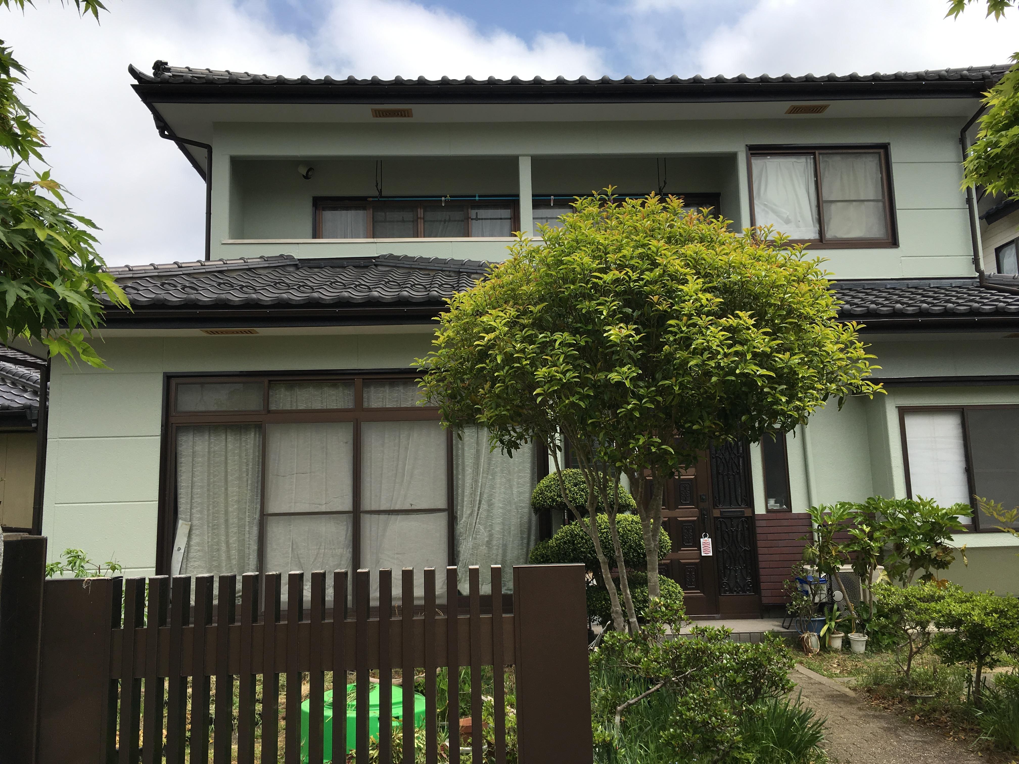 壁割れの修復やコーキング増し打ちなど行いながら以前より明るい色に塗装しました。