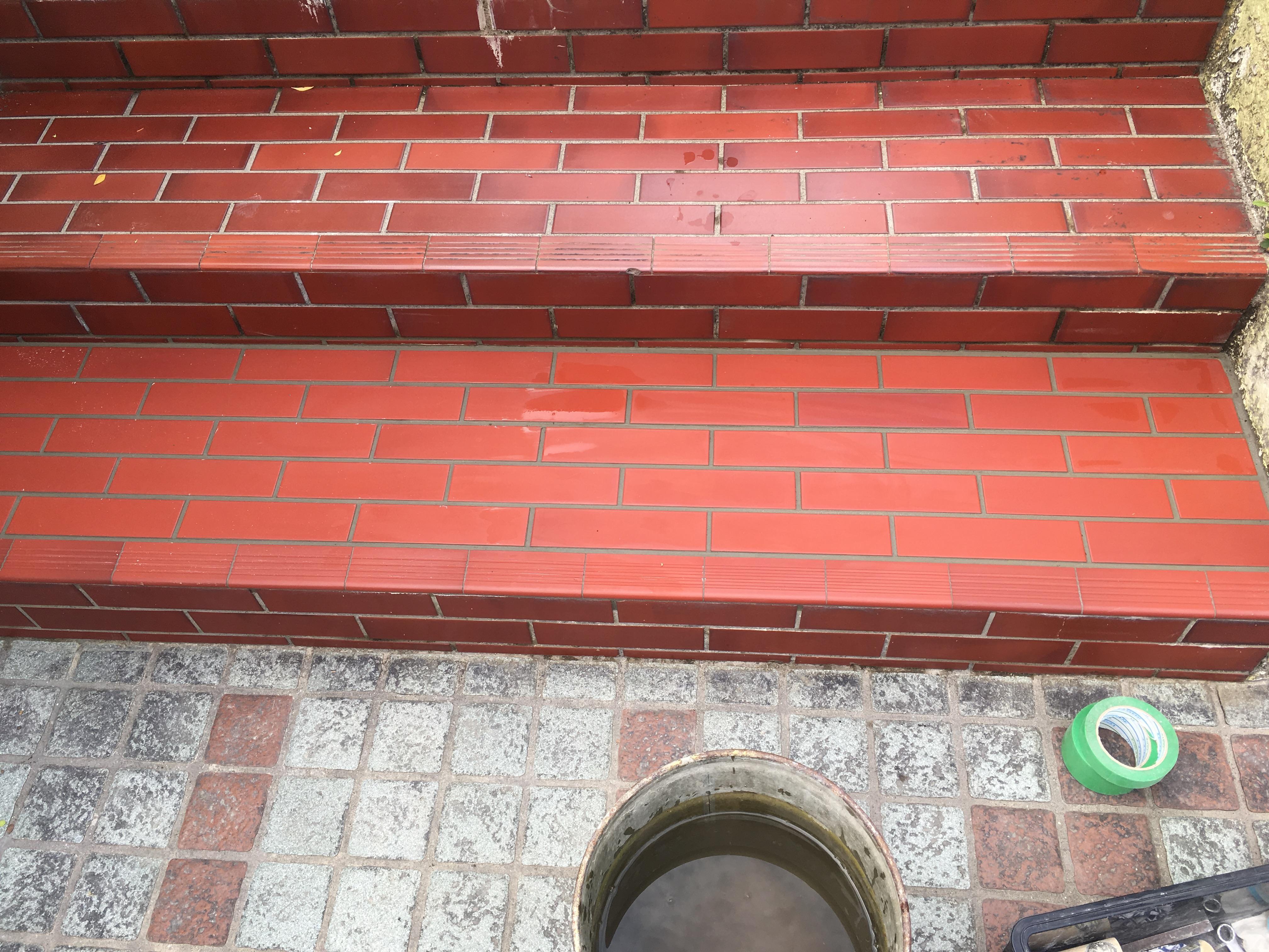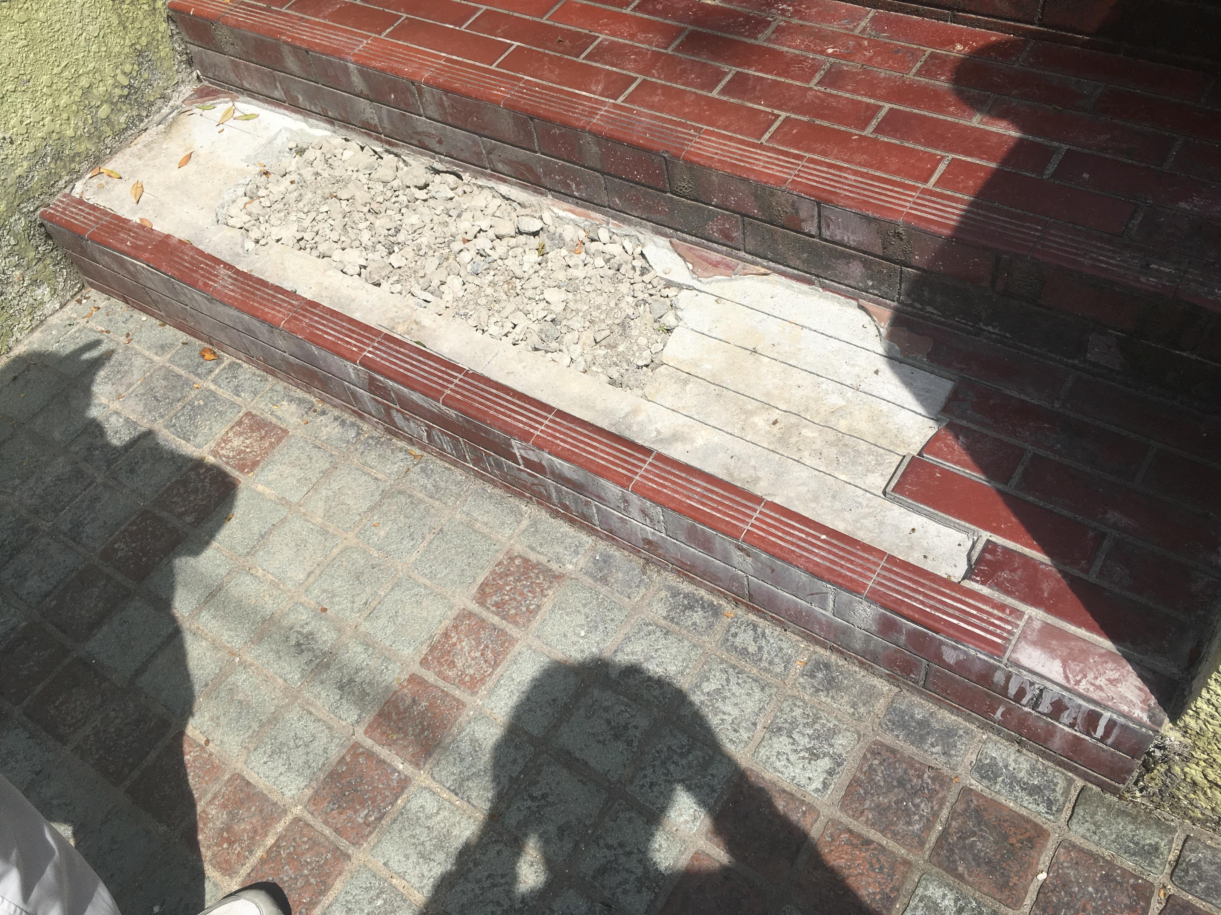 水道管が劣化した為、階段を壊す事になり、水道工事完了後にタイルを修復しました。