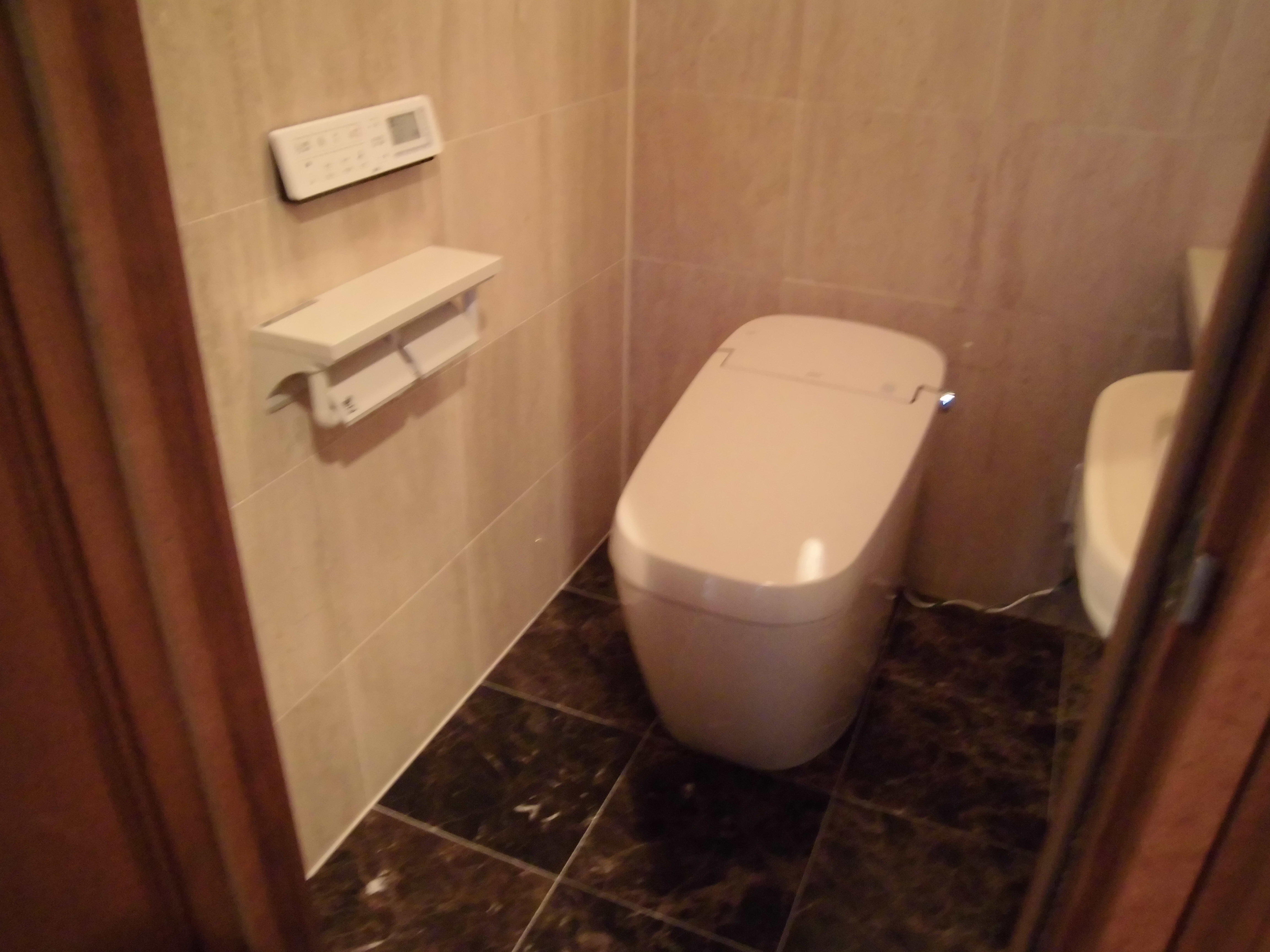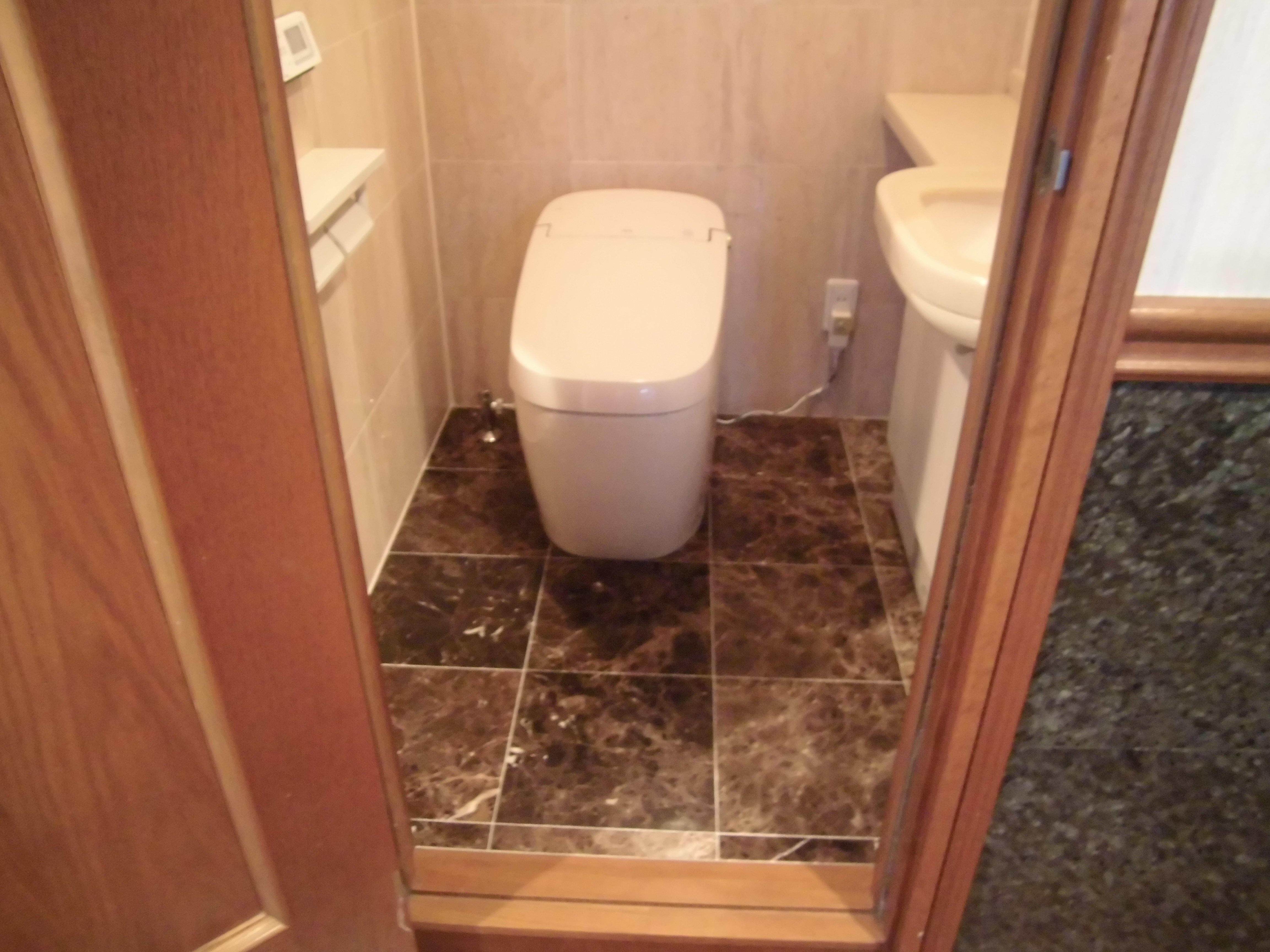 和式トイレが壊れた為、洋式に取り替えました。床は大理石の床を張り替えました。