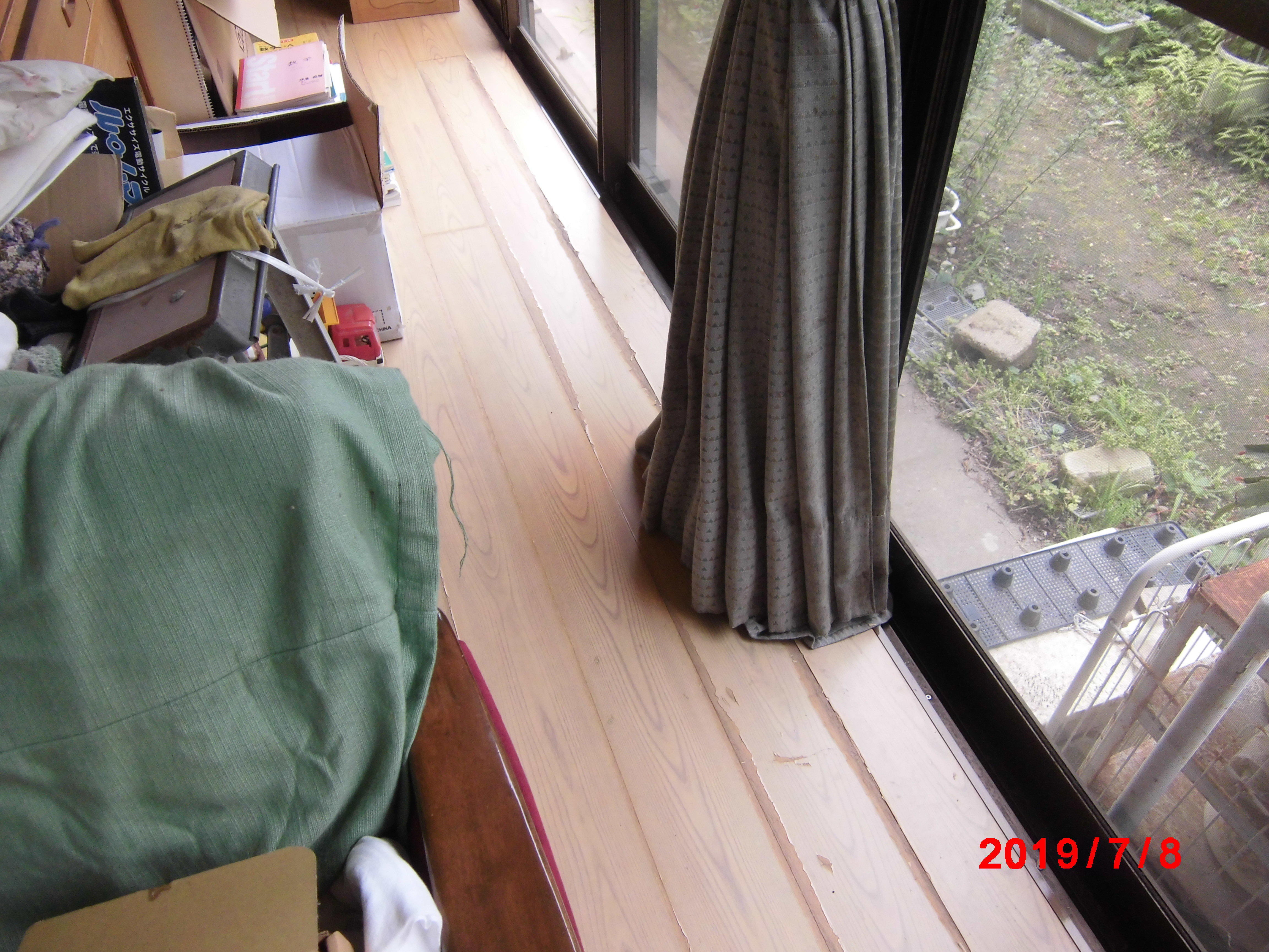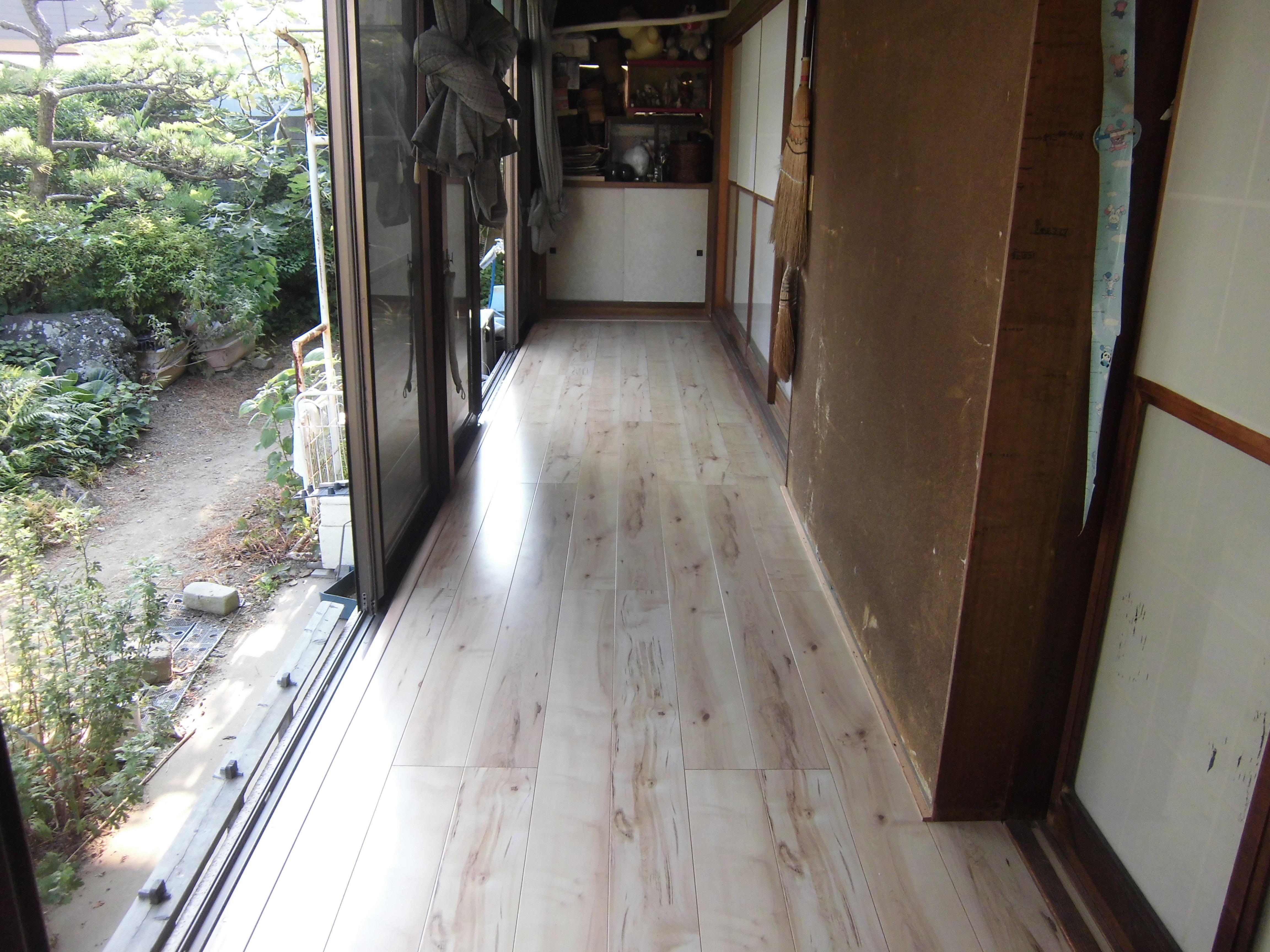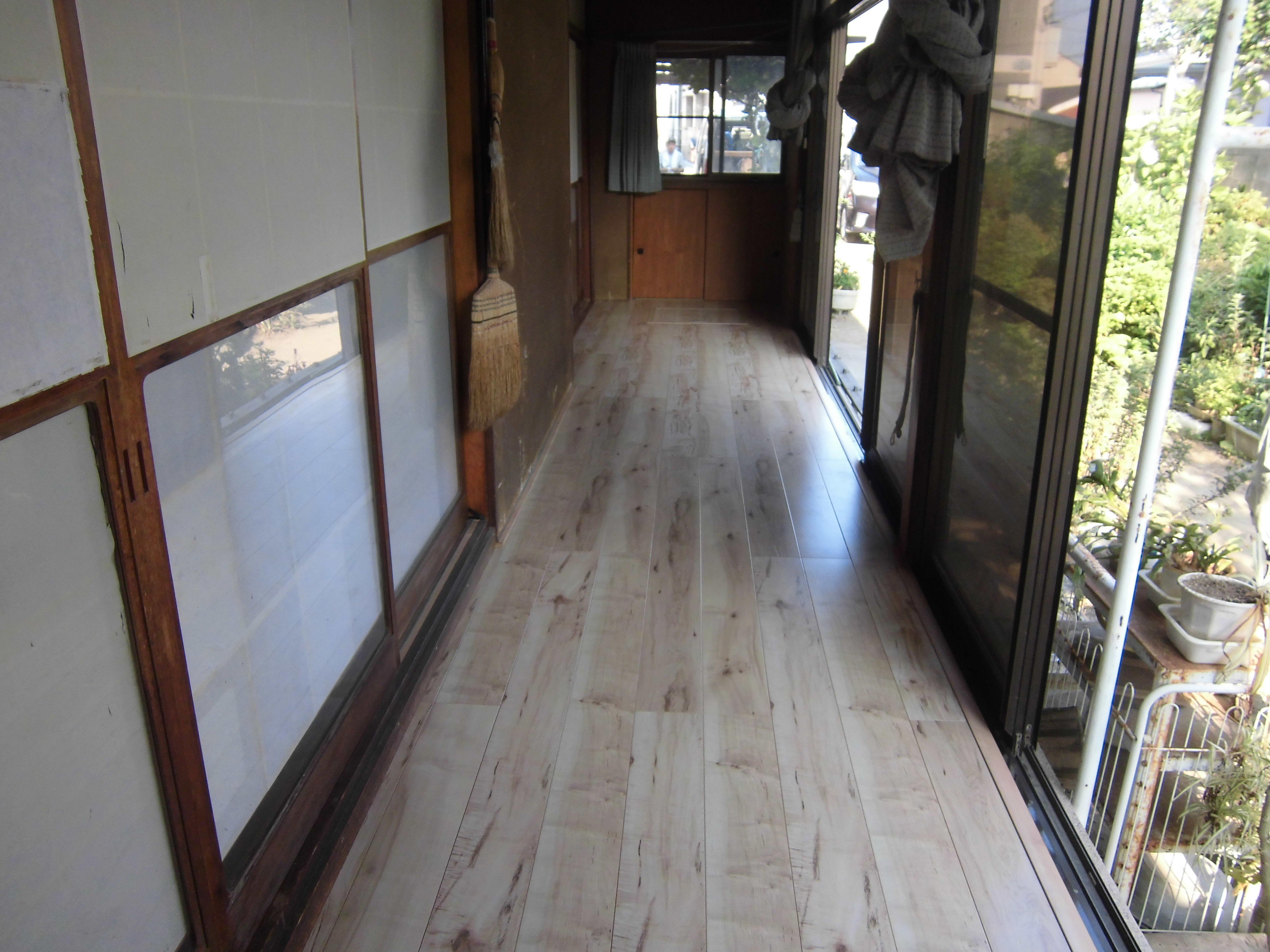 広縁の床の表面が剥がれてきました。既存の床に新たな床材を増し張りしました。