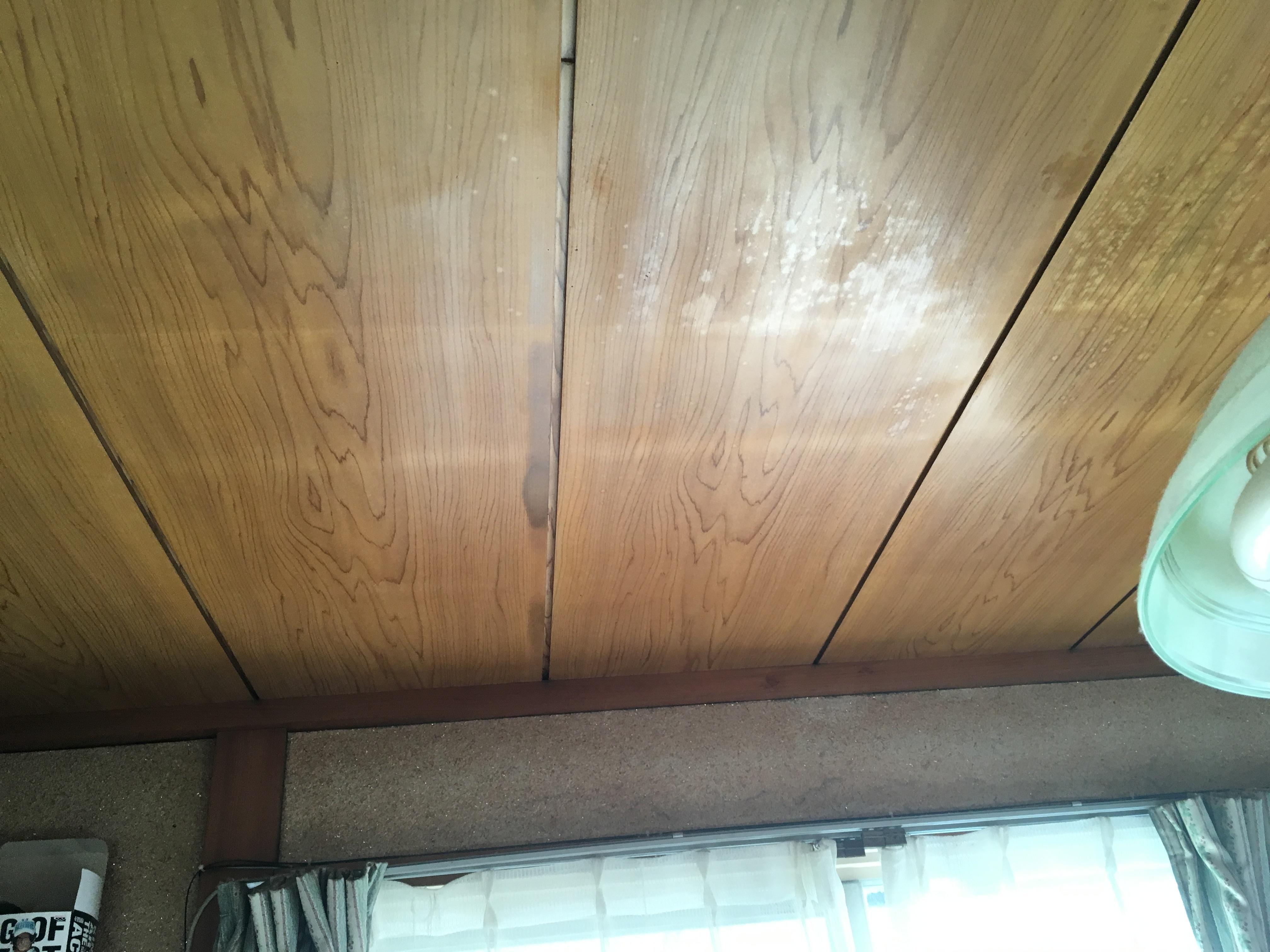 台風の影響で雨漏れがあり、天井板から浸みて来た為、浸水を止めて天井板を張り替えました。