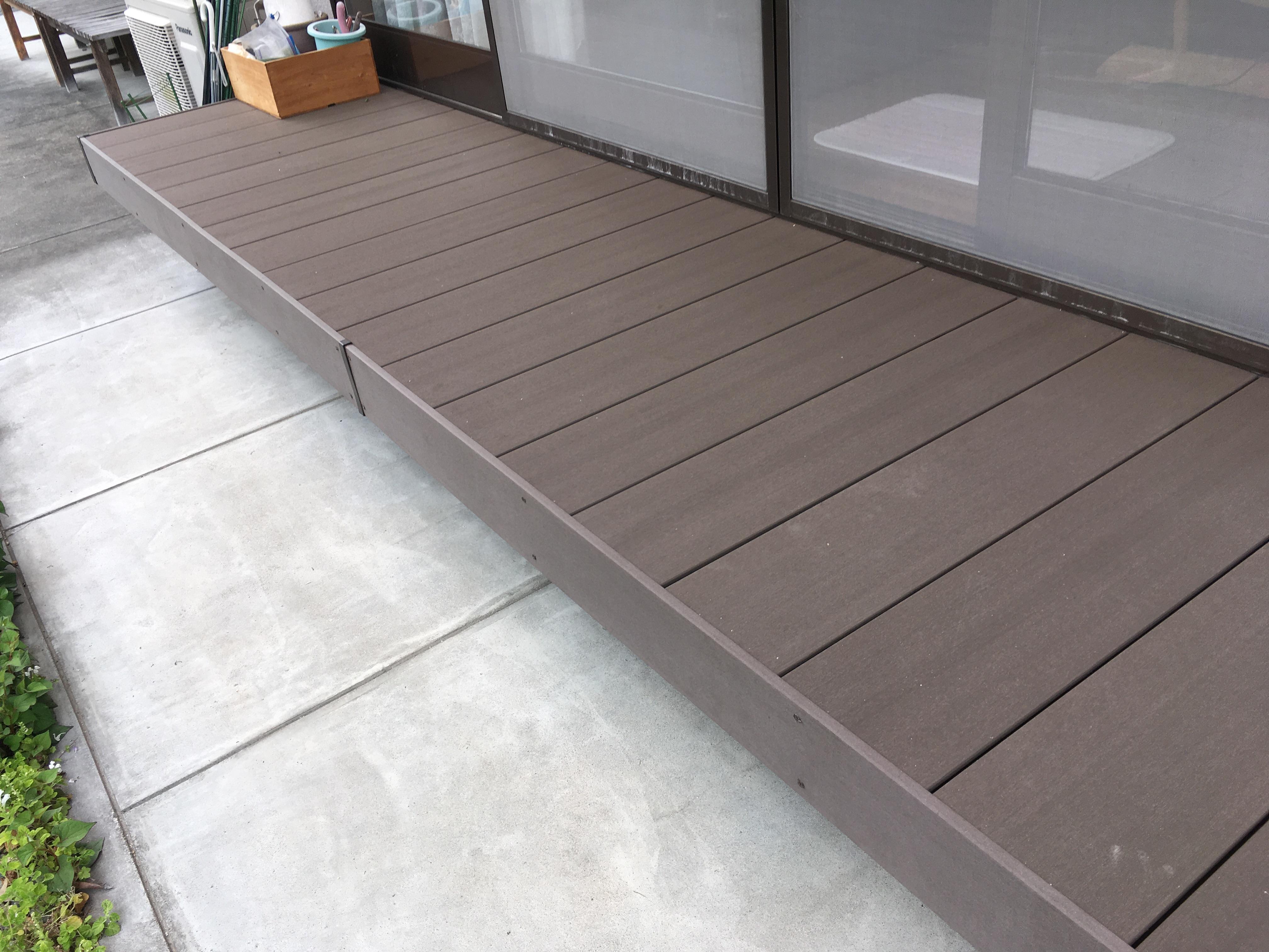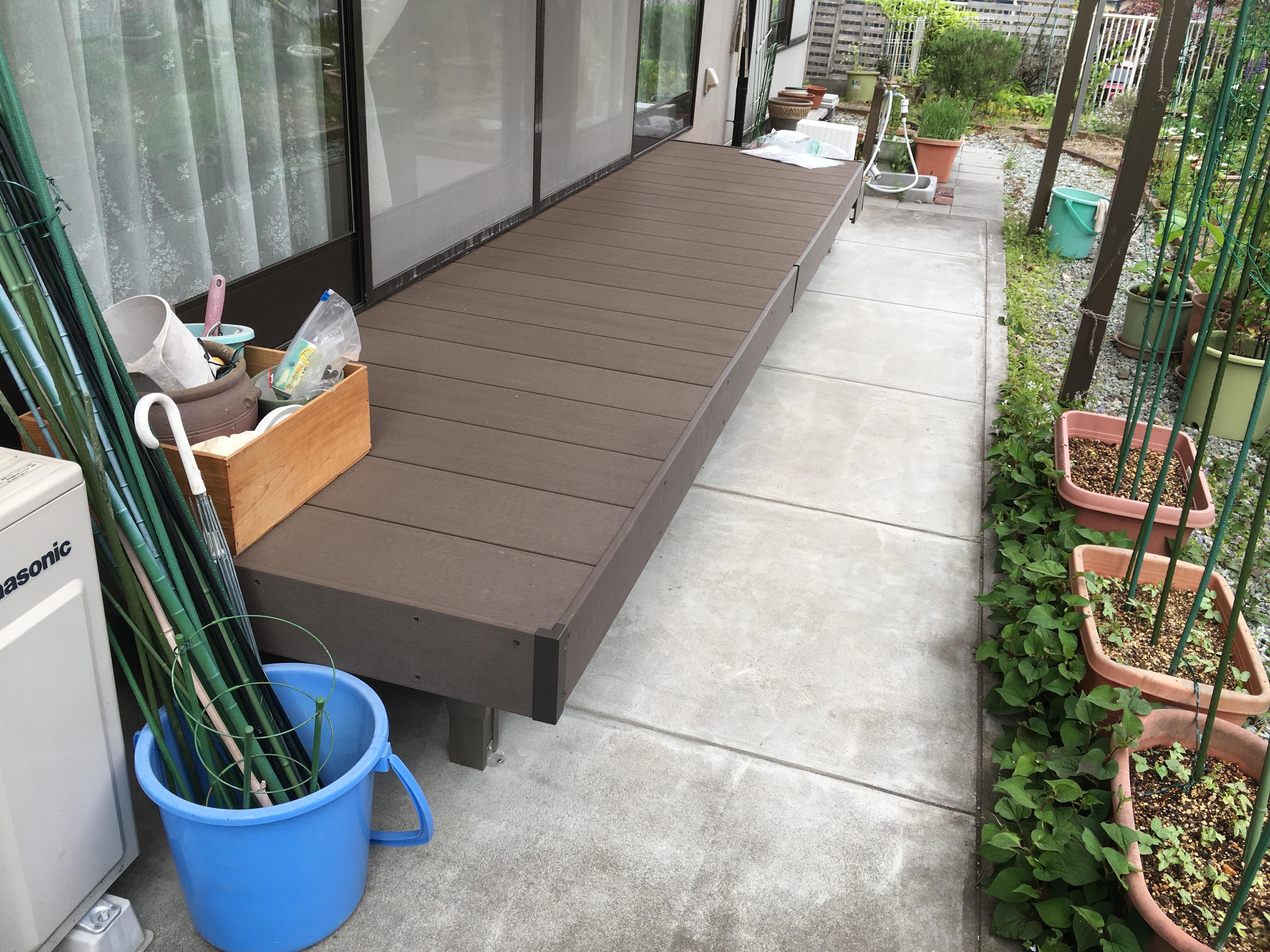 木製の縁台を使用していましたが、ガタつく為に洗濯物を干す作業が大変でした。 樹脂製のウッドデッキを設置し、出幅も大きくなり固定してあるので安心して洗濯物を干せるようになりました。
