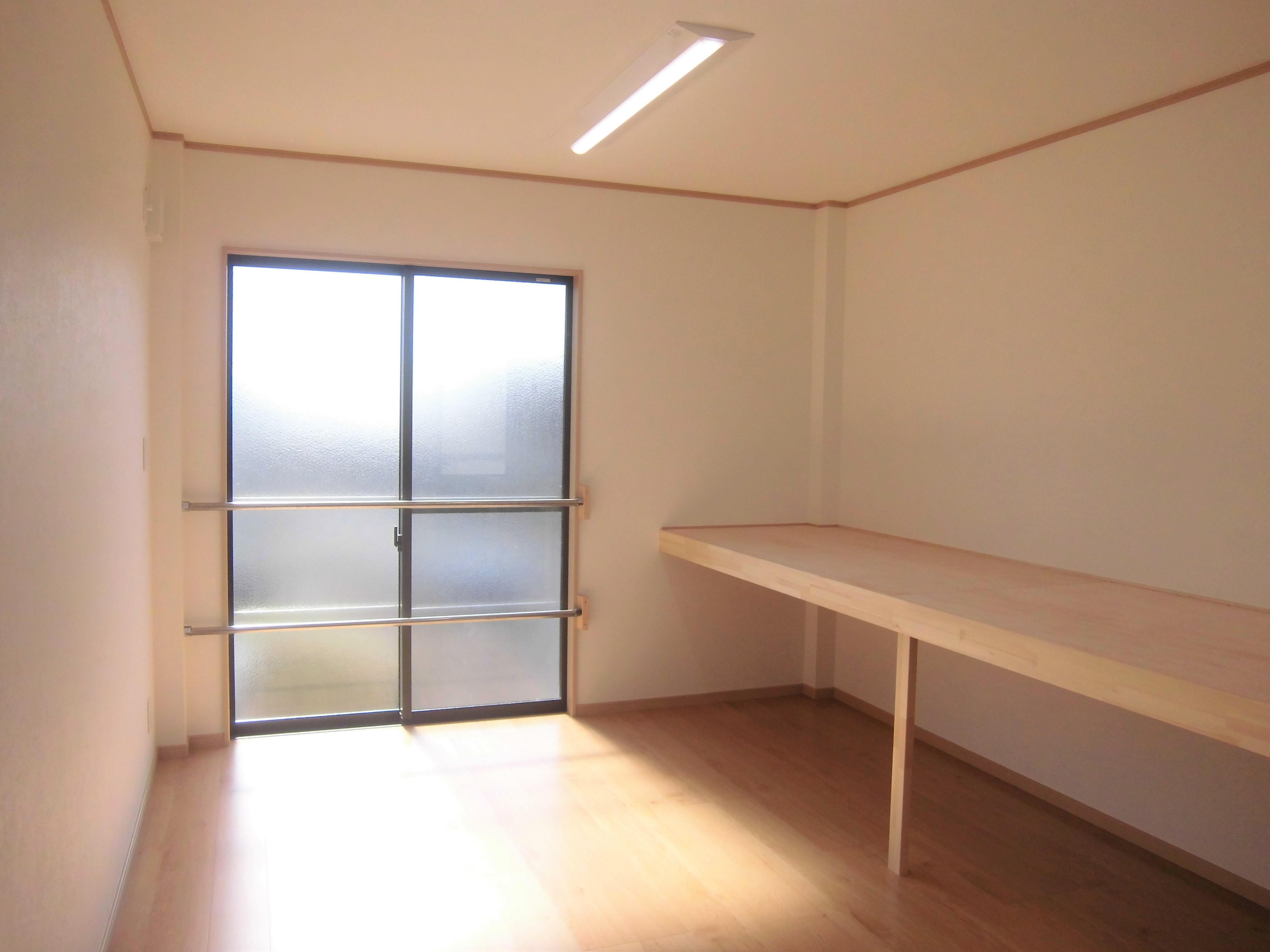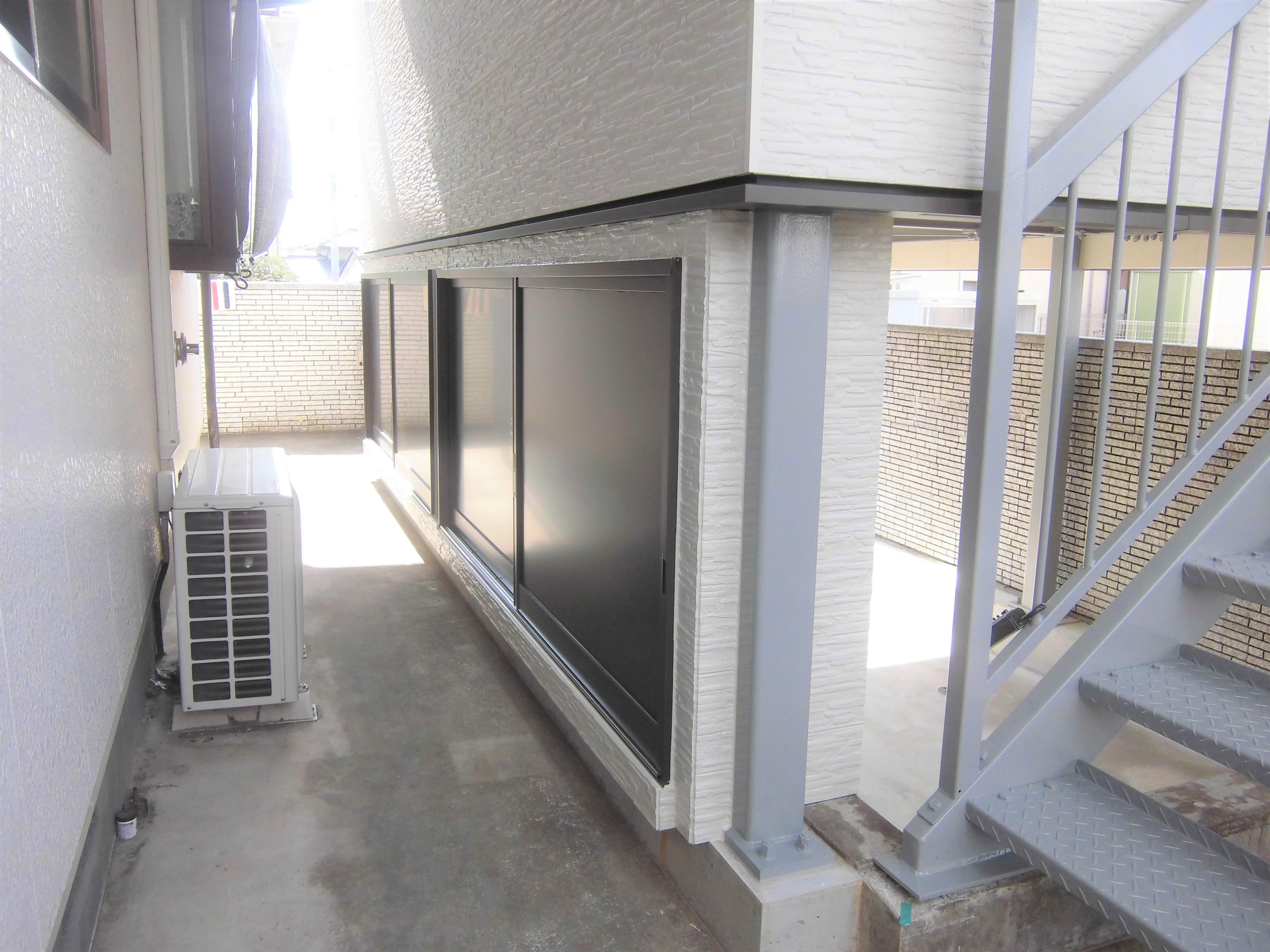 ガレージの上部を有効活用した今回のリフォームは、鉄骨造で頑丈な物置部屋となりました。大きな家具を搬入するとのことで、南面には掃き出しサッシを設けましたが、搬入後には危なくないように手すりも設けました。物置部屋とはいうものの、骨組みは鉄骨造なので頑丈ですし、断熱材もしっかり充填され、仕上げもフローリングとクロス貼りで通常の部屋と同様に快適に過ごせます。物置部屋だけにしておくのはもったいないくらいですね。