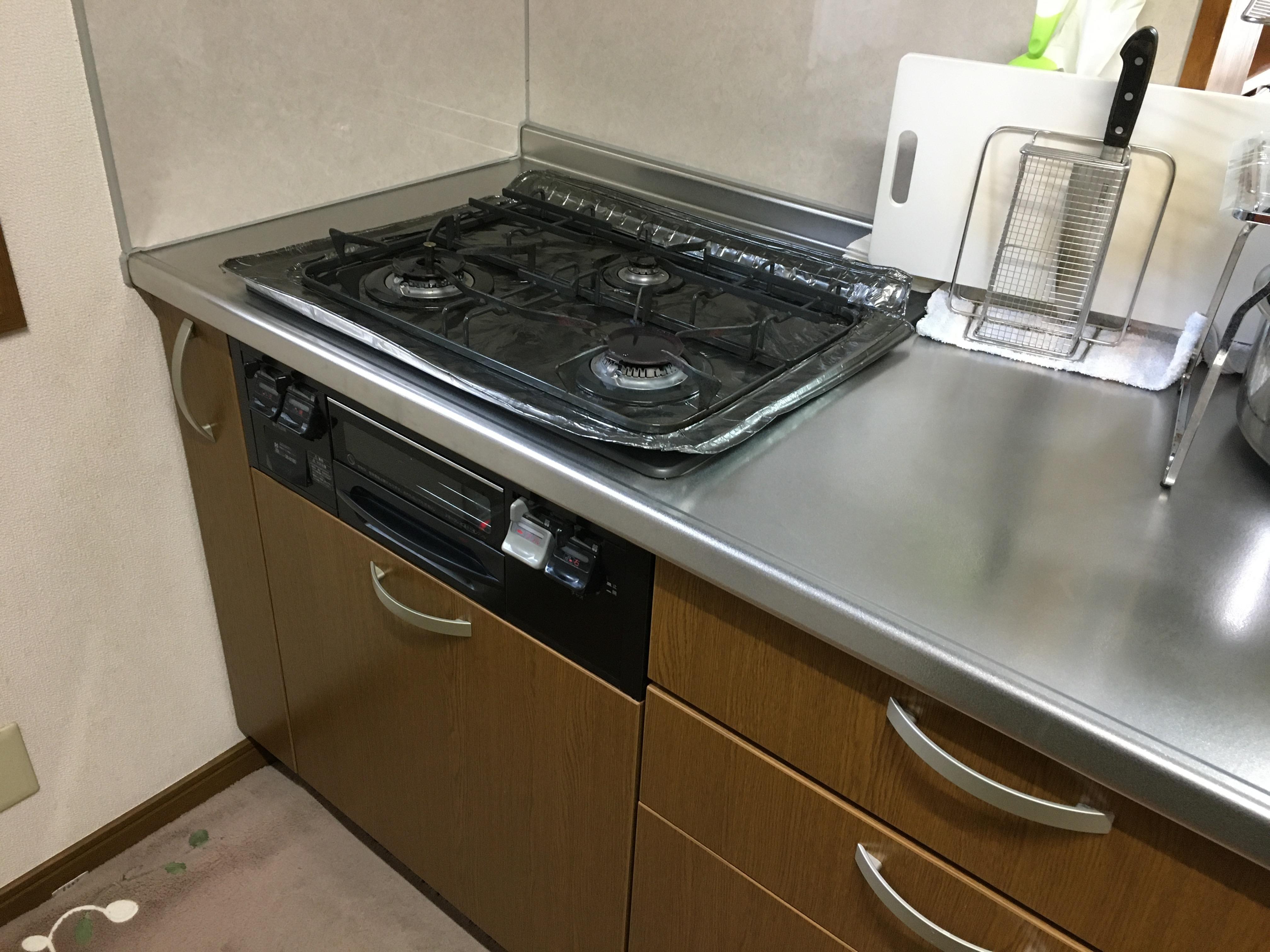 既存のガスコンロはお手入れが大変で、市販のカバーを付けていましたが、それでもやはりお手入れは手のかかるものでした。