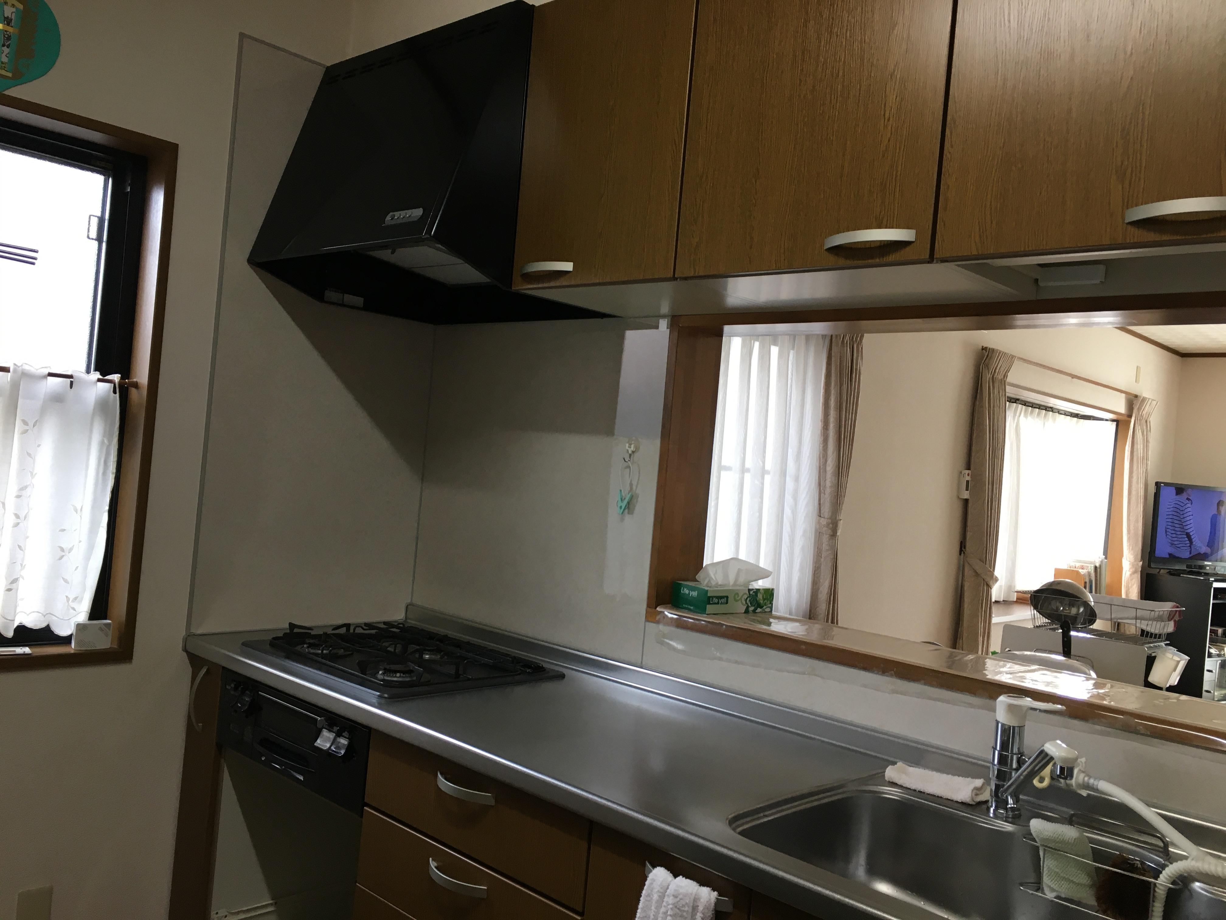 既存のレンジフードは、吸い込みが弱くなっていました。掃除も大変なので、掃除しやすいものへの交換をご希望されました。