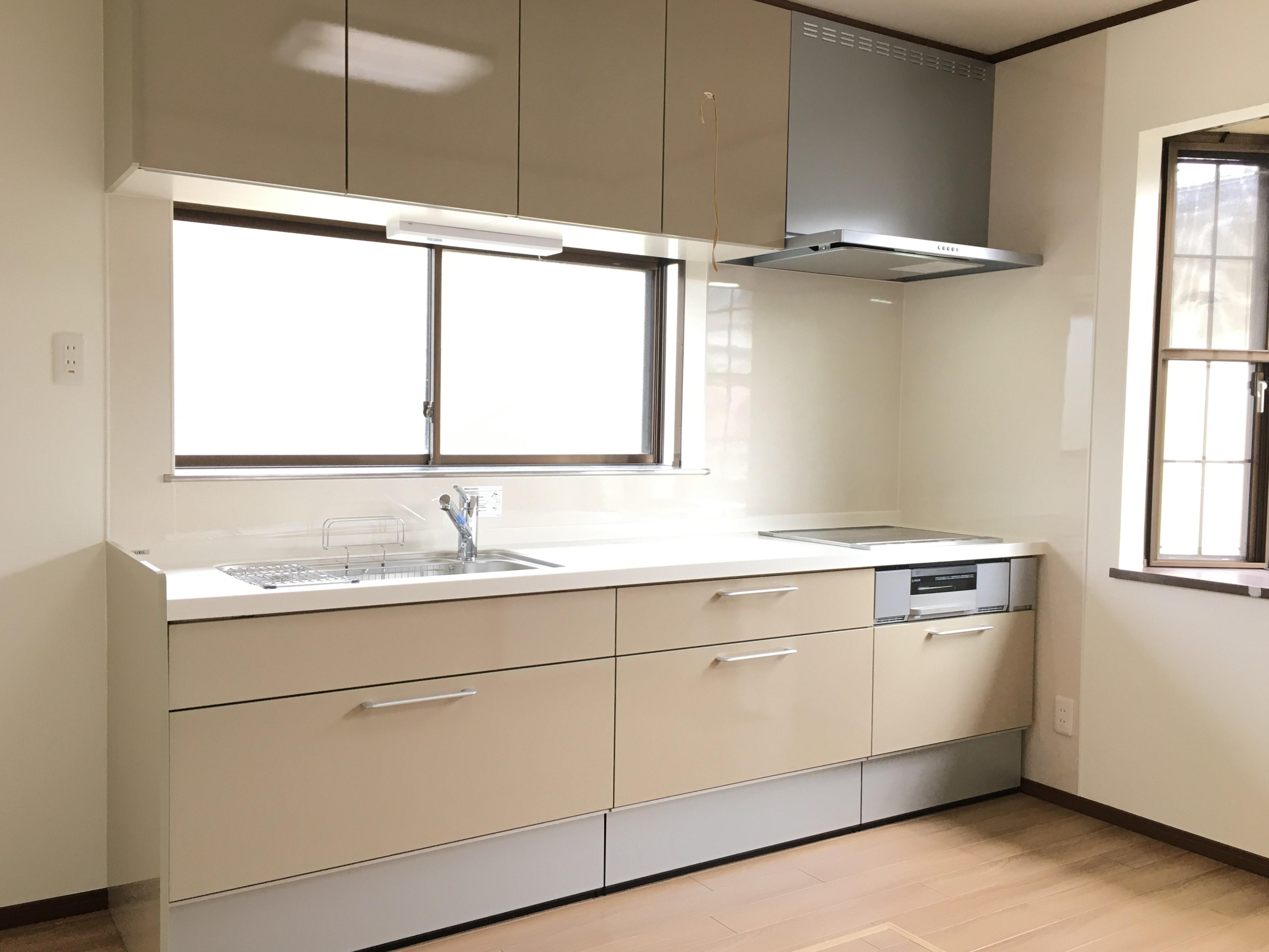 28年間お世話になったキッチンはスッキリし清潔感もUPしました。壁紙も床もキレイになり、これから家族揃ってのお食事が楽しみですね。システムキッチンはLIXILの『シエラ』。品のあるシンプルなデザインなのでどんな場面にもマッチします。お好みのキッチンが簡単にアレンジできます。
