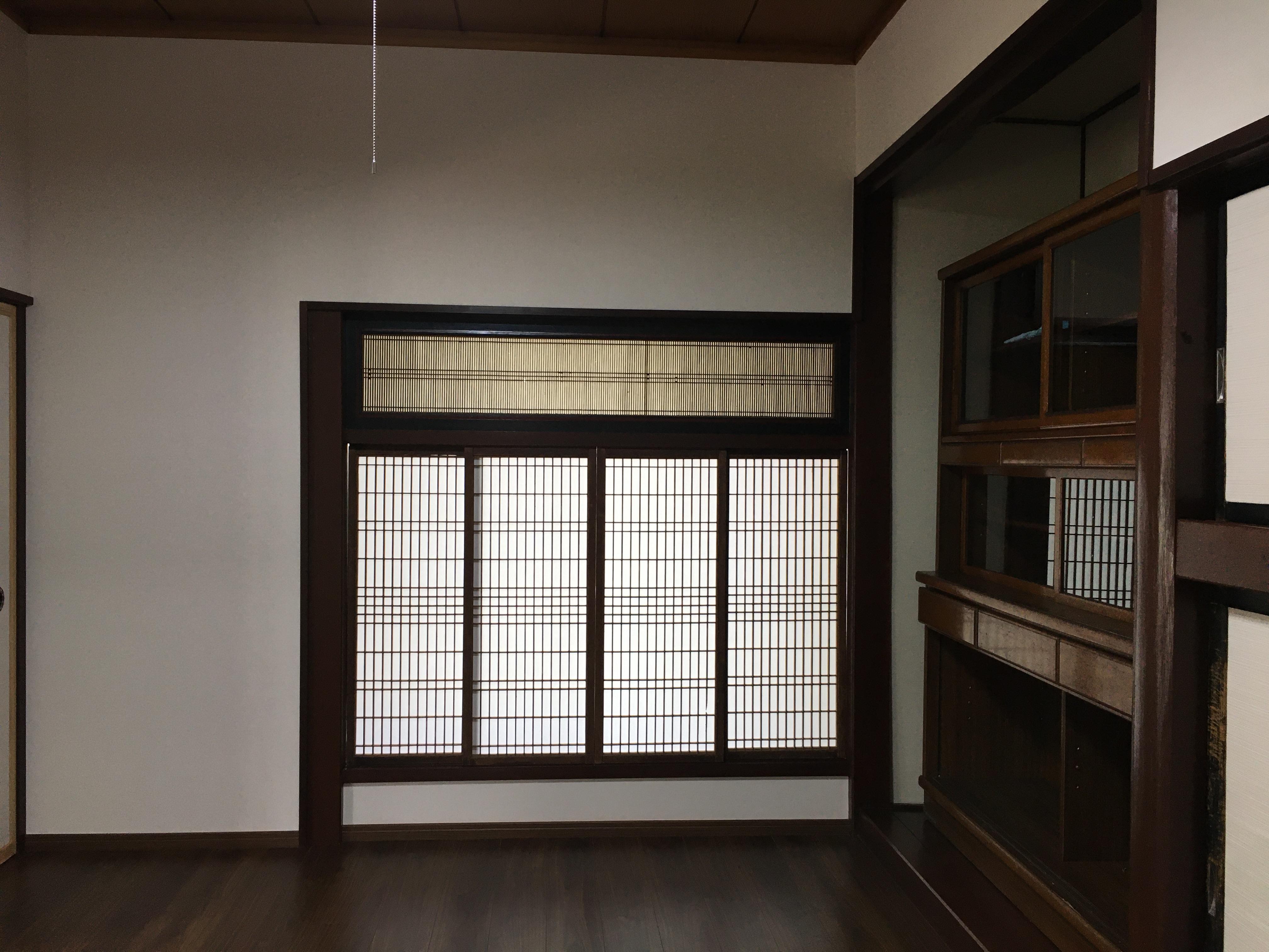趣のある付書院の明障子は、障子紙を張替えそのまま残しました。畳はフローリング張りに替え、塗り壁もクロス貼りにしましたが、それでもなお何とも言えないノスタルジックな佇まいですね。