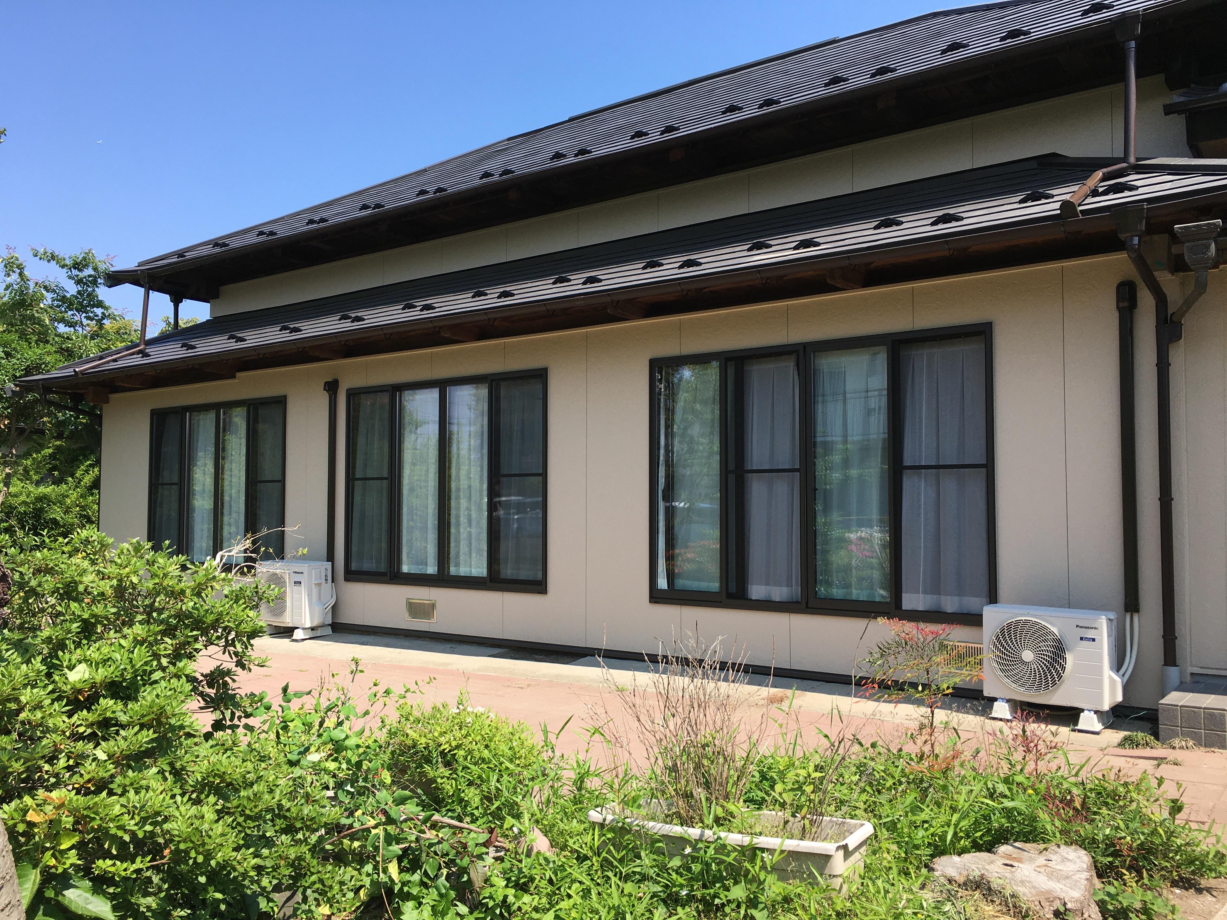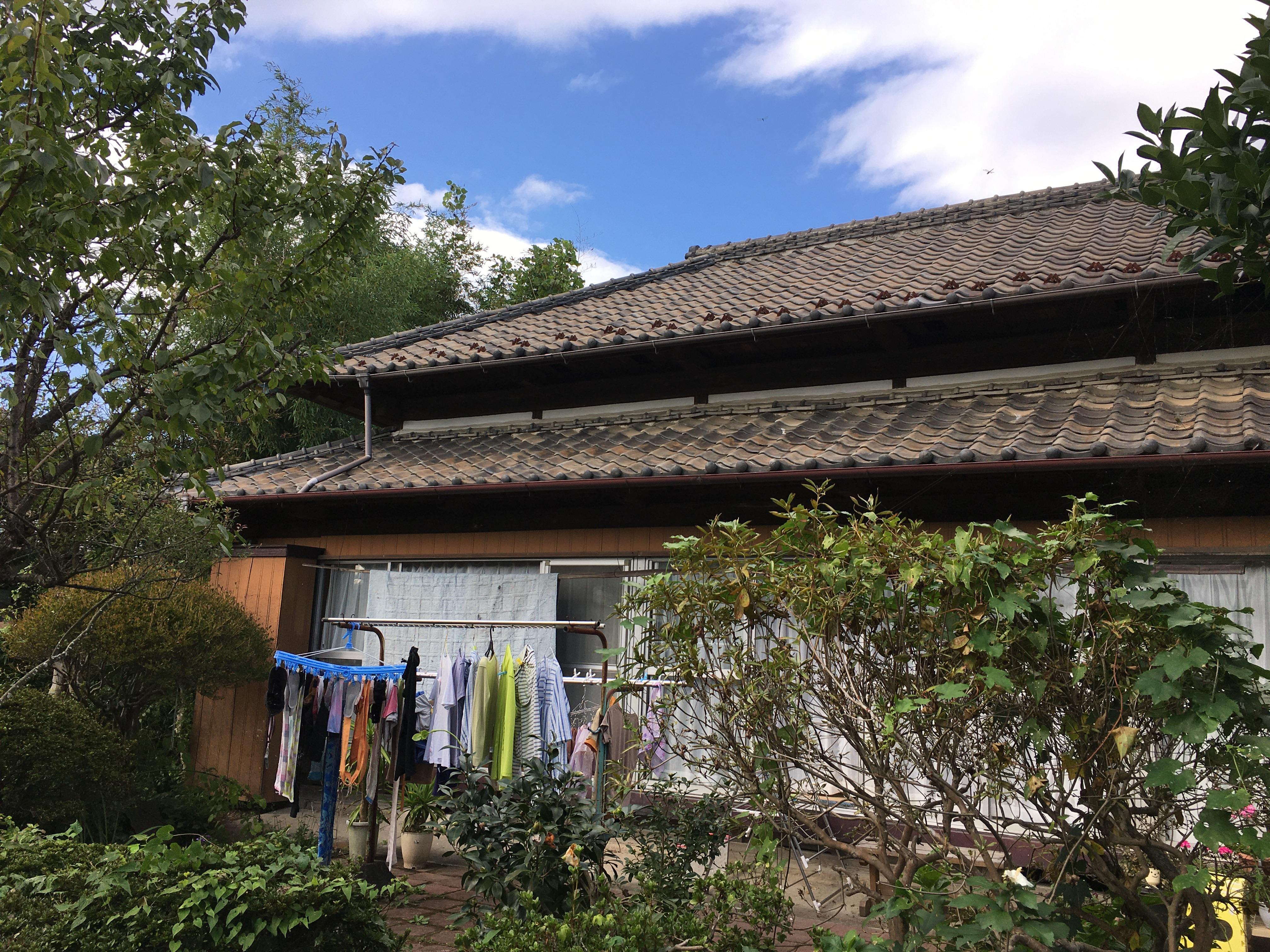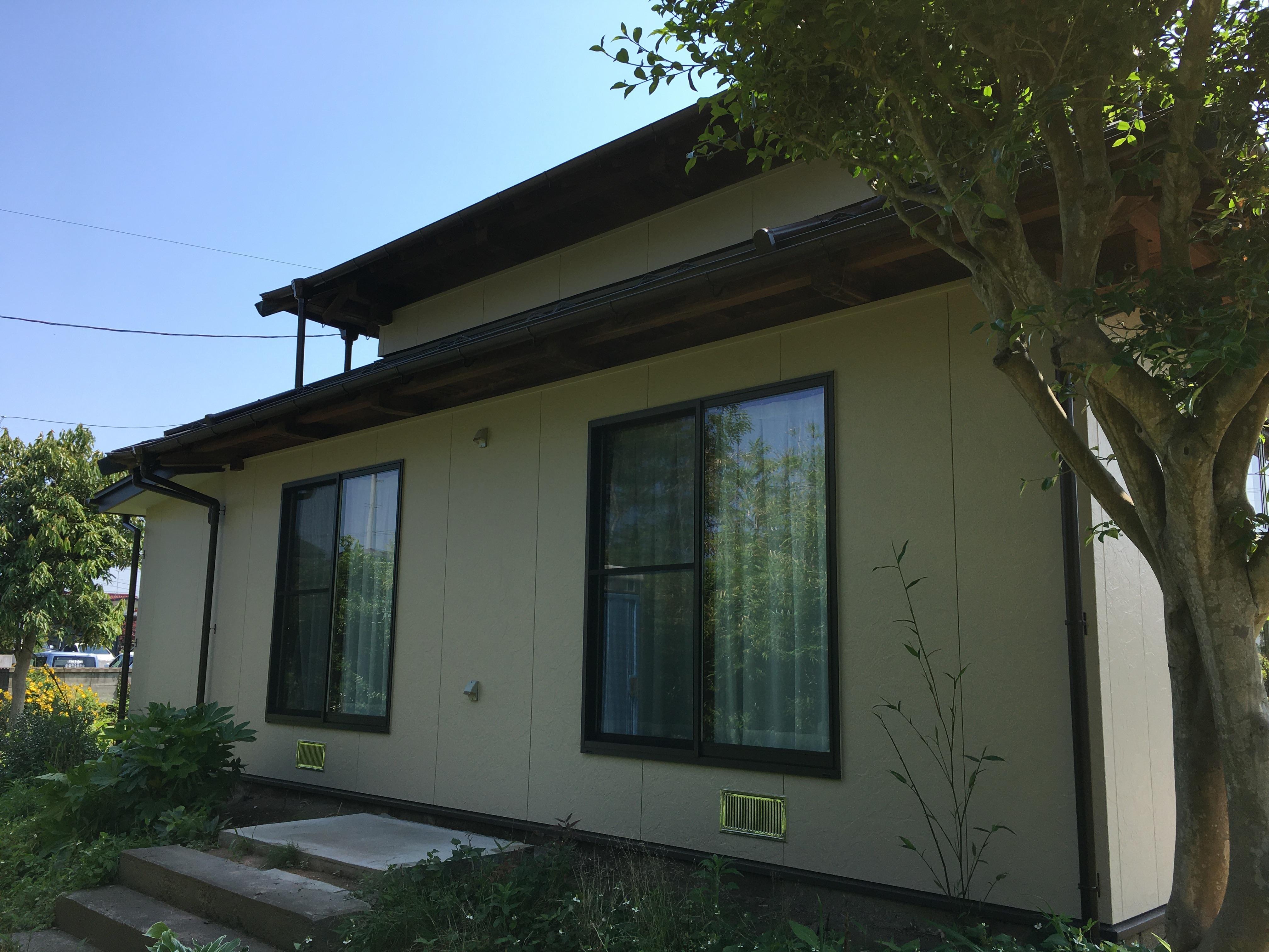 母屋の北側にあった濡れ縁と下屋を解体撤去しました。外壁もサイディングに張り替え、屋根の瓦は鉄板葺きに替えました。まるで新築のようです。トイレだった小屋部分(写真右端)は内部を全面改修し、物入(倉庫)にしました。