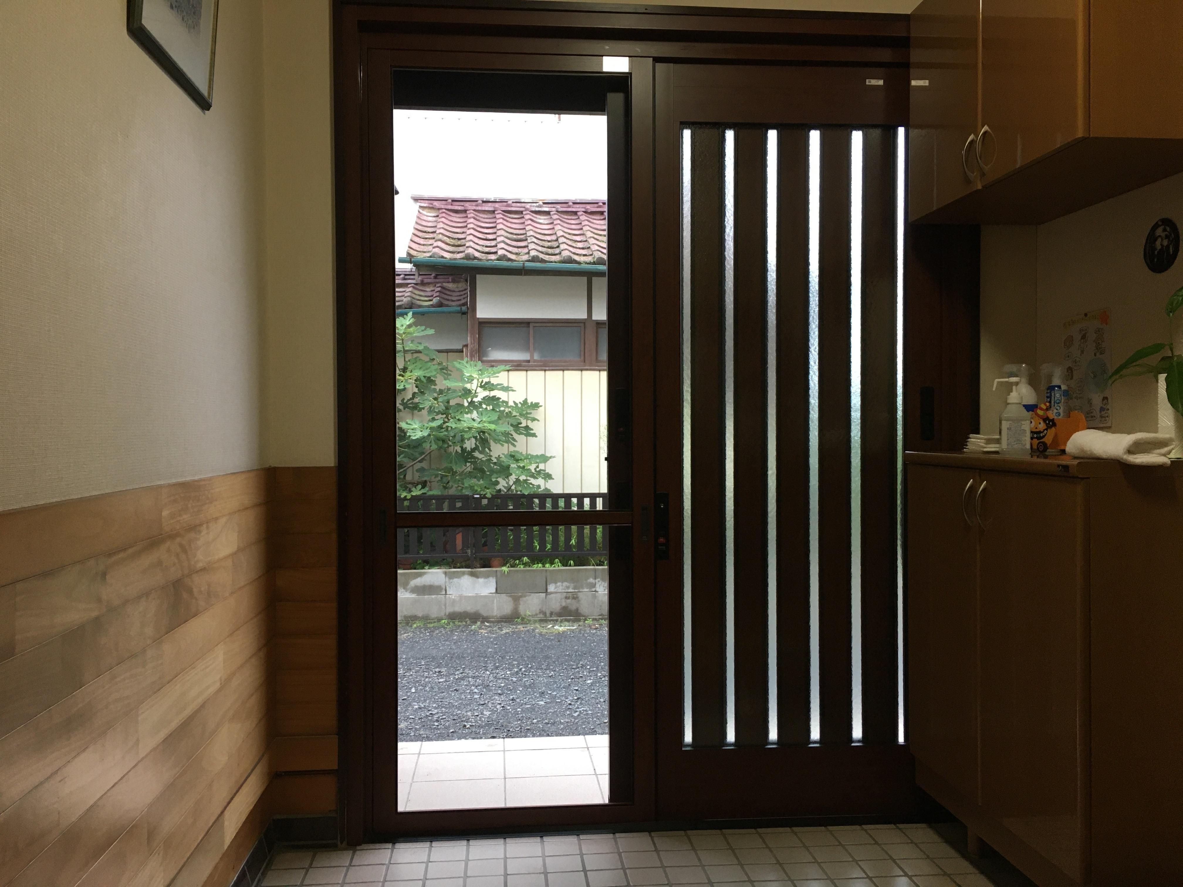 玄関引戸が劣化により、とても重く開閉しにくくなってきたとのことで、まるッと交換しました。以前の引戸には大きな欄間がありましたが、掃除も難しく、ガラス面積も大きかったので断熱性が劣っていました。今回は欄間をなくし上まで引戸にしました。引戸を大きくしたにもかかわらず、開閉性はとてもスムーズです。また網戸も付けたので、夏場は開放し快適にお過ごしいただけます。