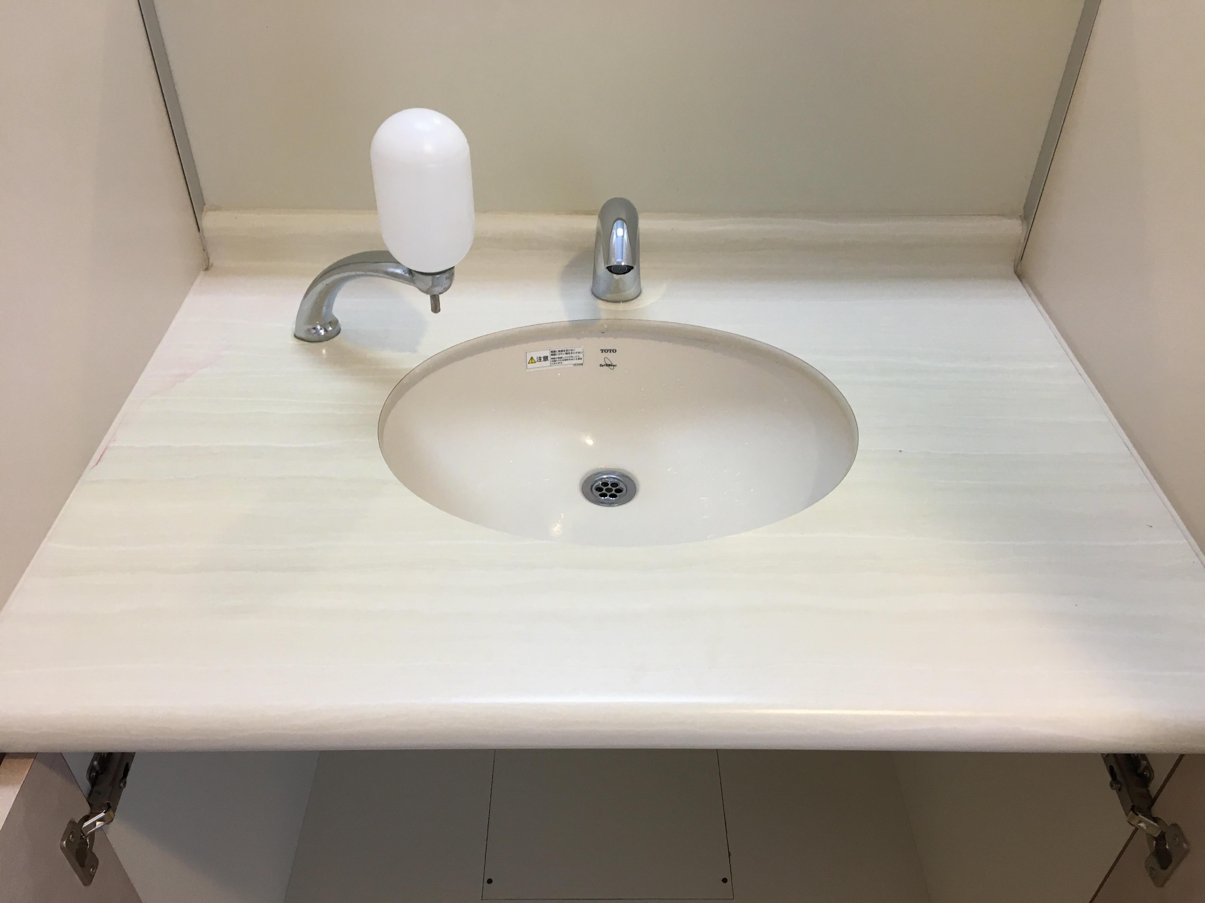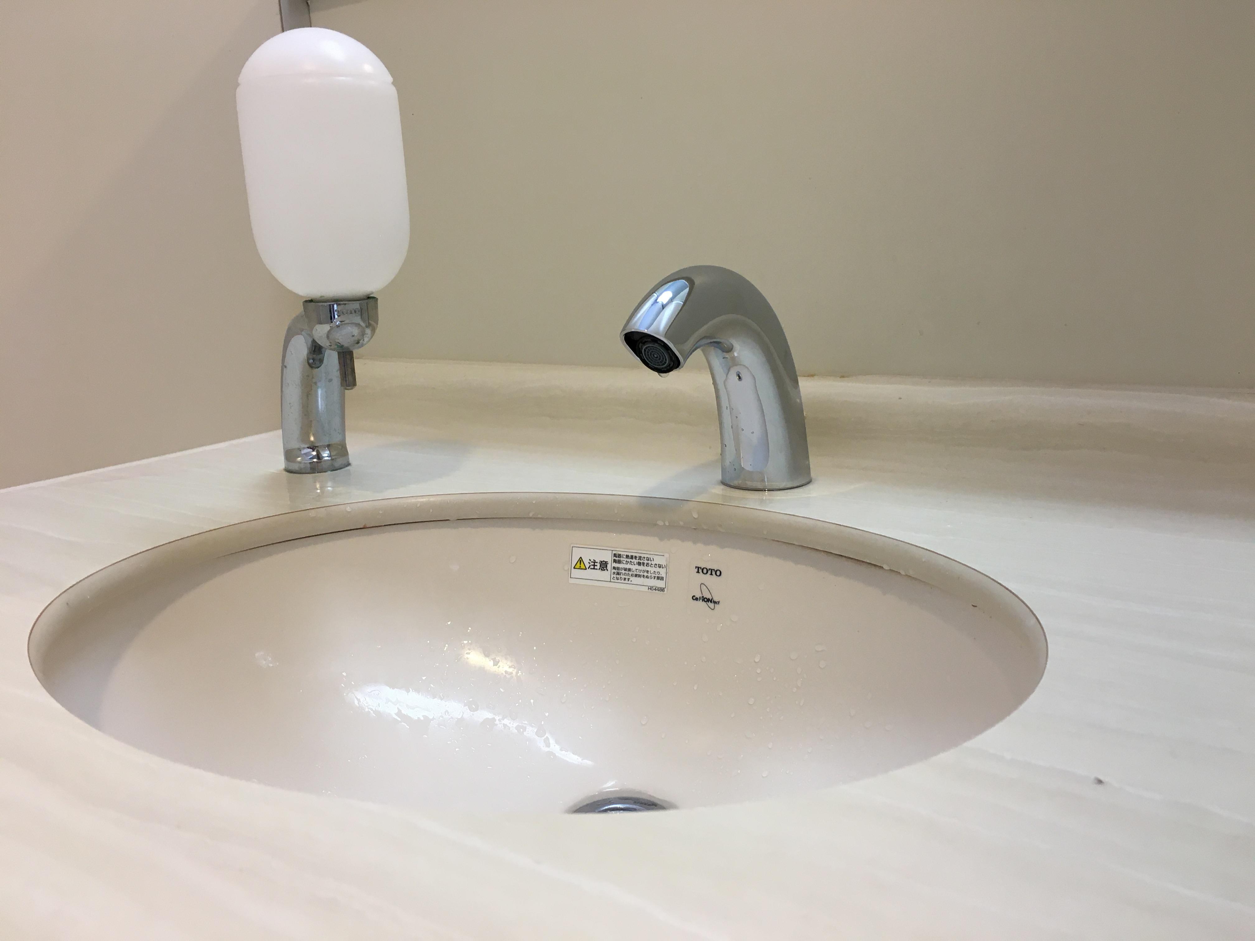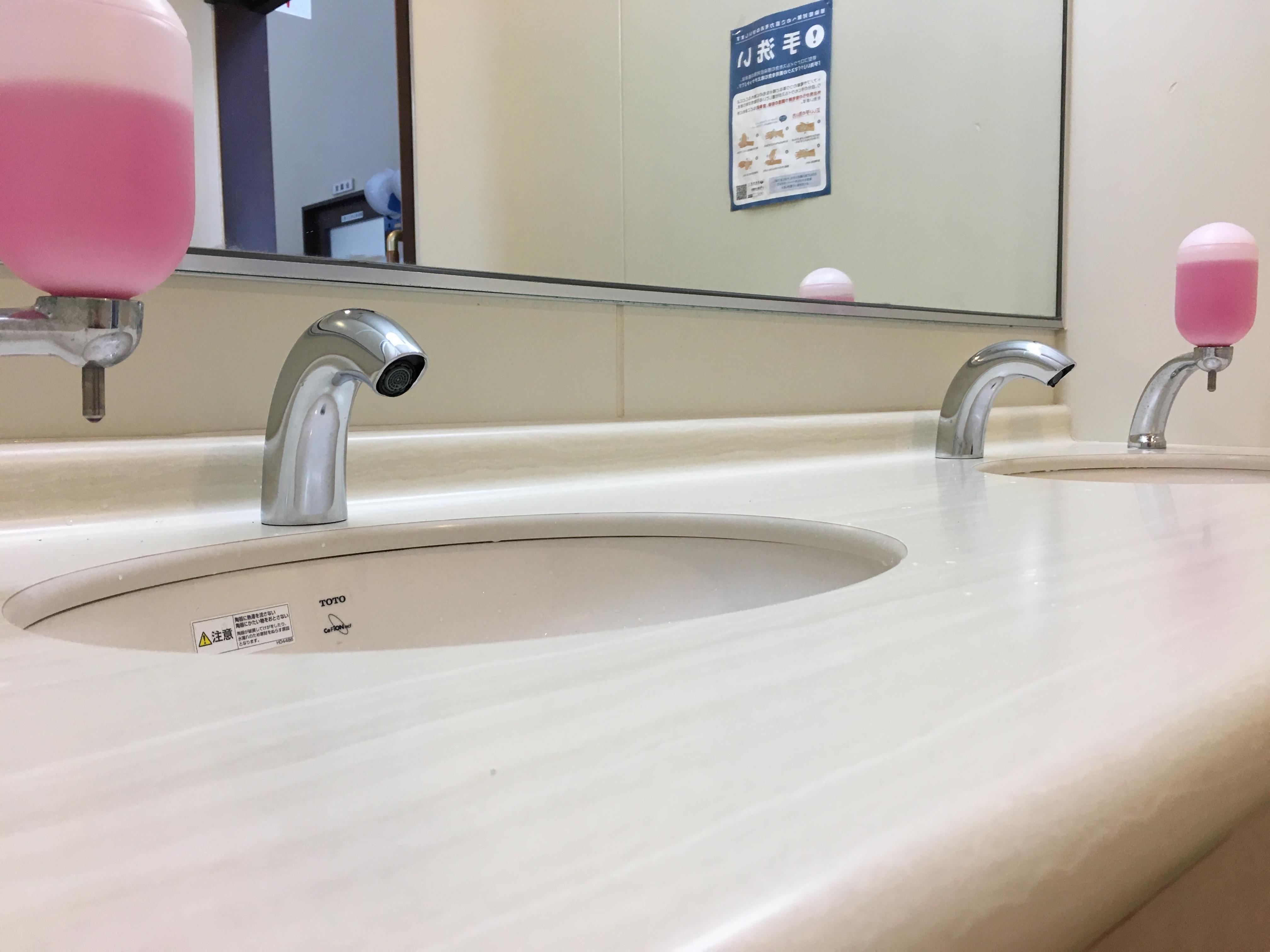 集会所のトイレ手洗い水栓を自動水栓に交換しました。多くの人が集まり利用する手洗い器、非接触型水栓にしたことで、快適に手洗いができるようになりました。