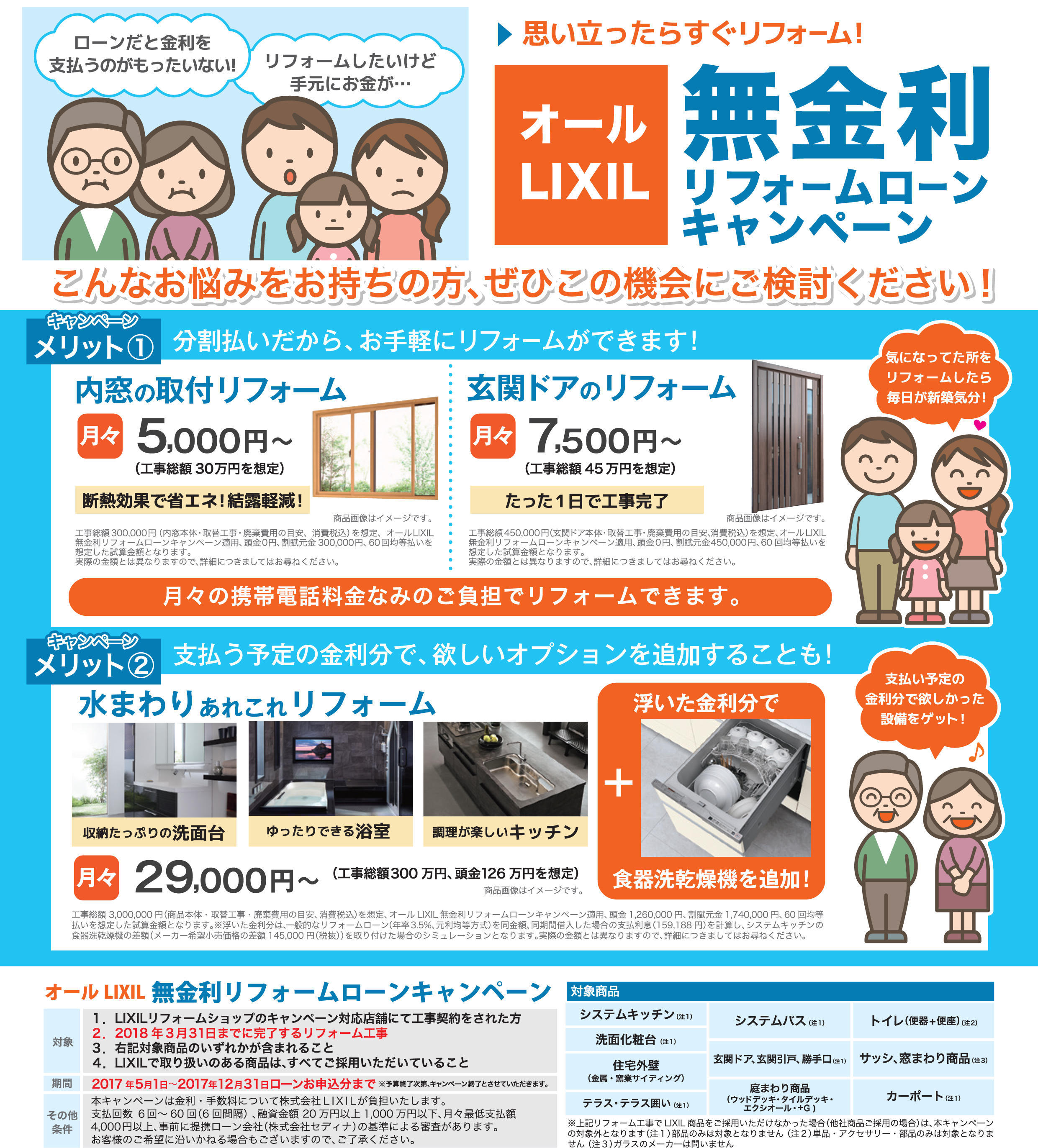 好評につき、LIXIL無金利ローンキャンペーン第二弾を5月1日より受付開始致します。